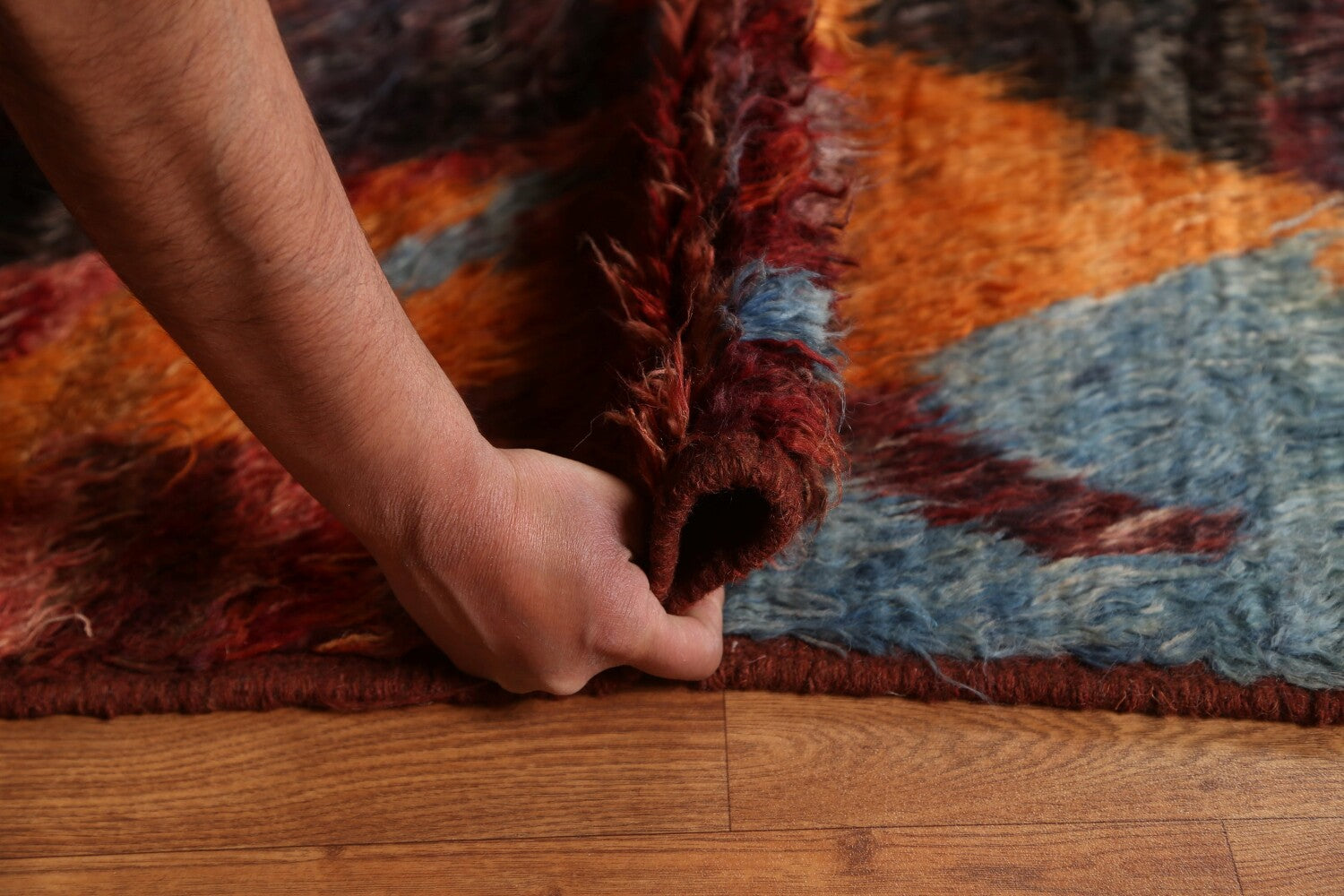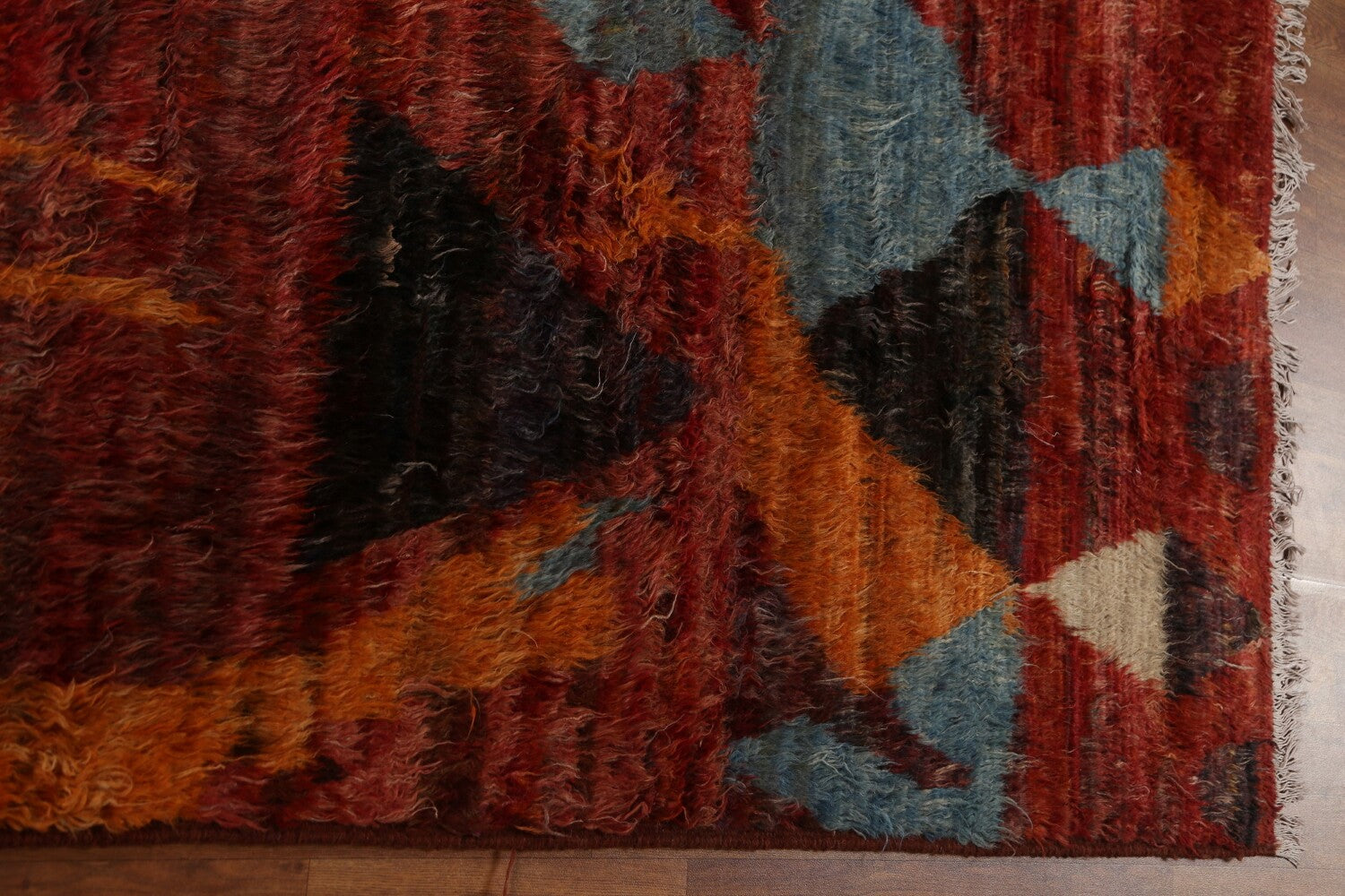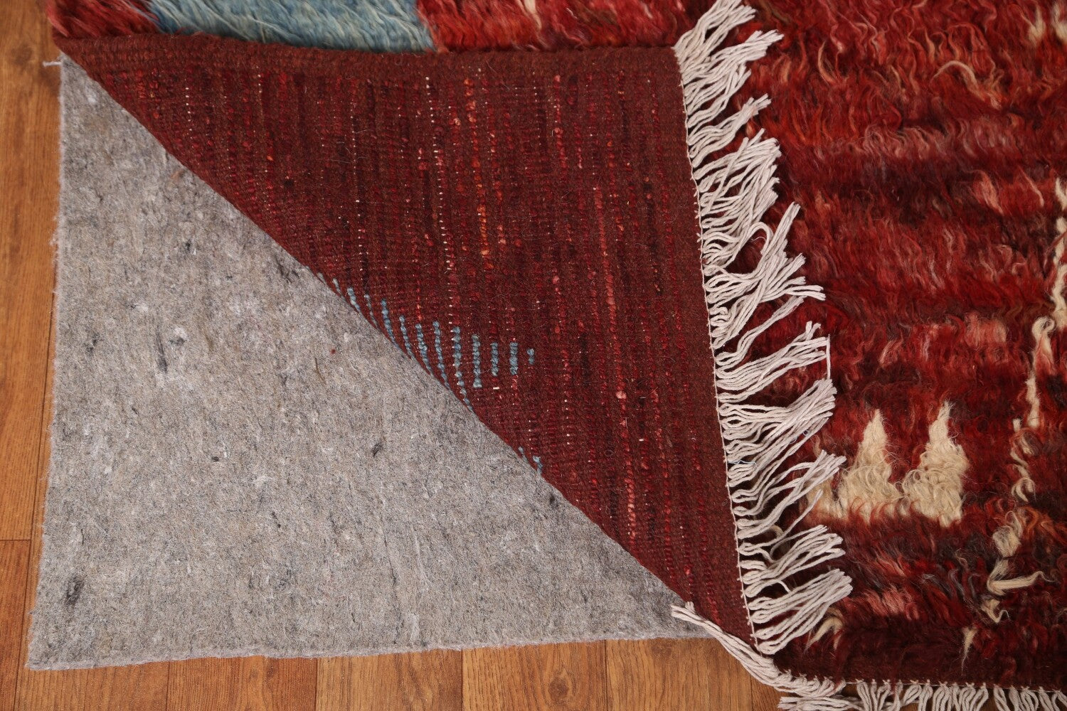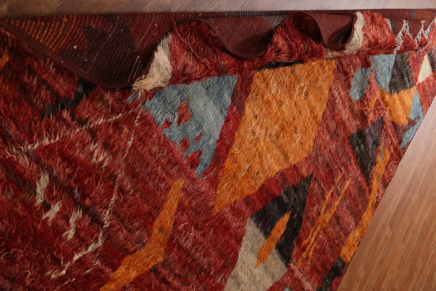 A Beautiful Genuine Pakistan Moroccan rug is Hand Knotted by skillful weavers in Pakistan with 100% Wool Material. This rug is in condition. dimensions are 9' 9'' X 6' 10'' in foot and 297 X 208 in centimeter. the primary color is Red.