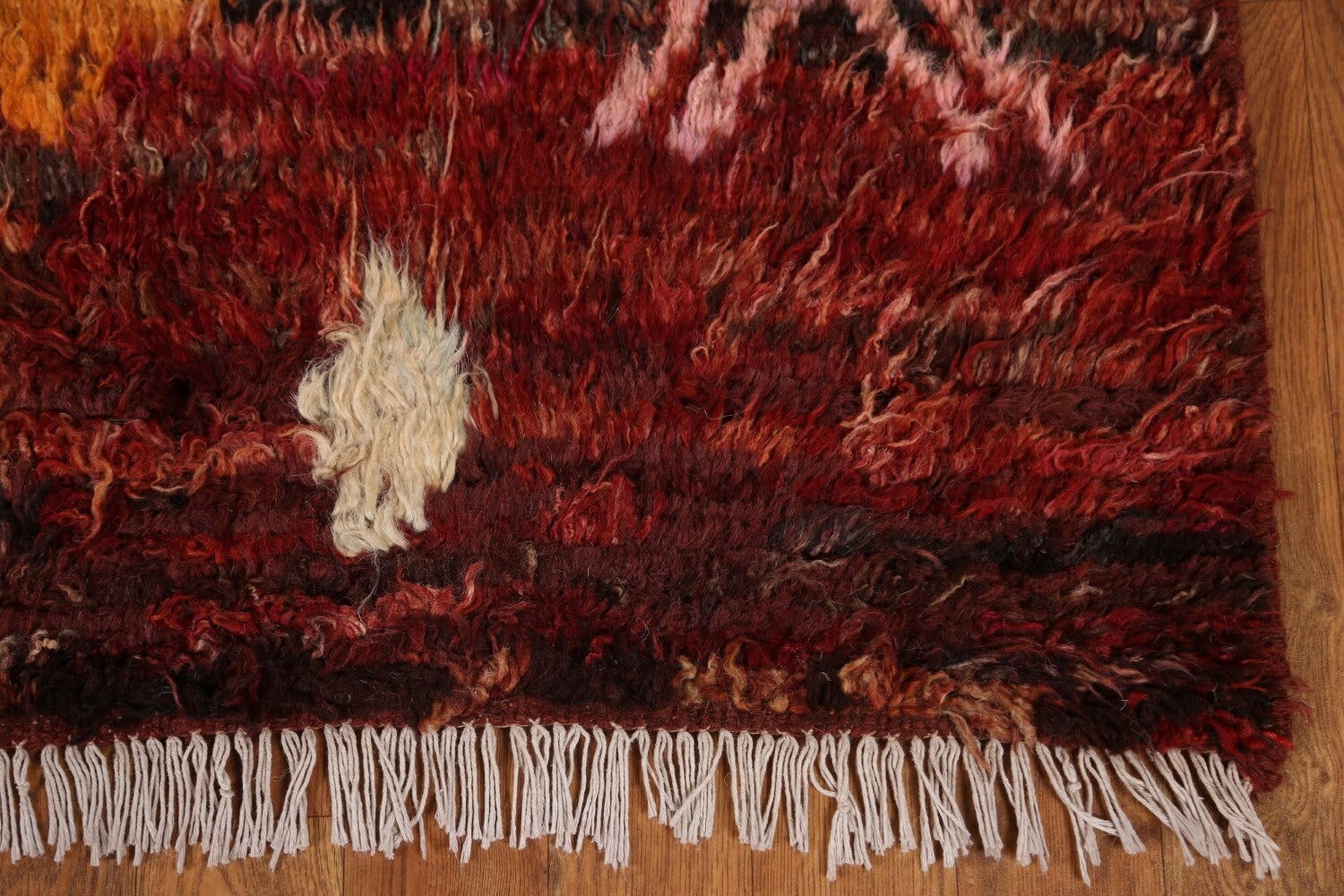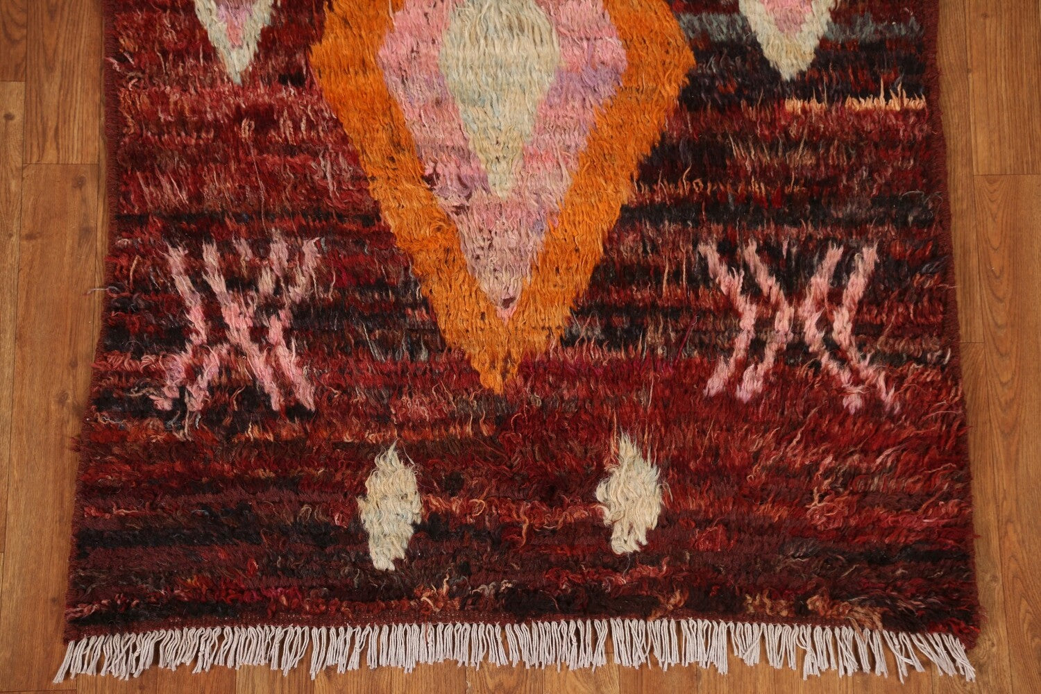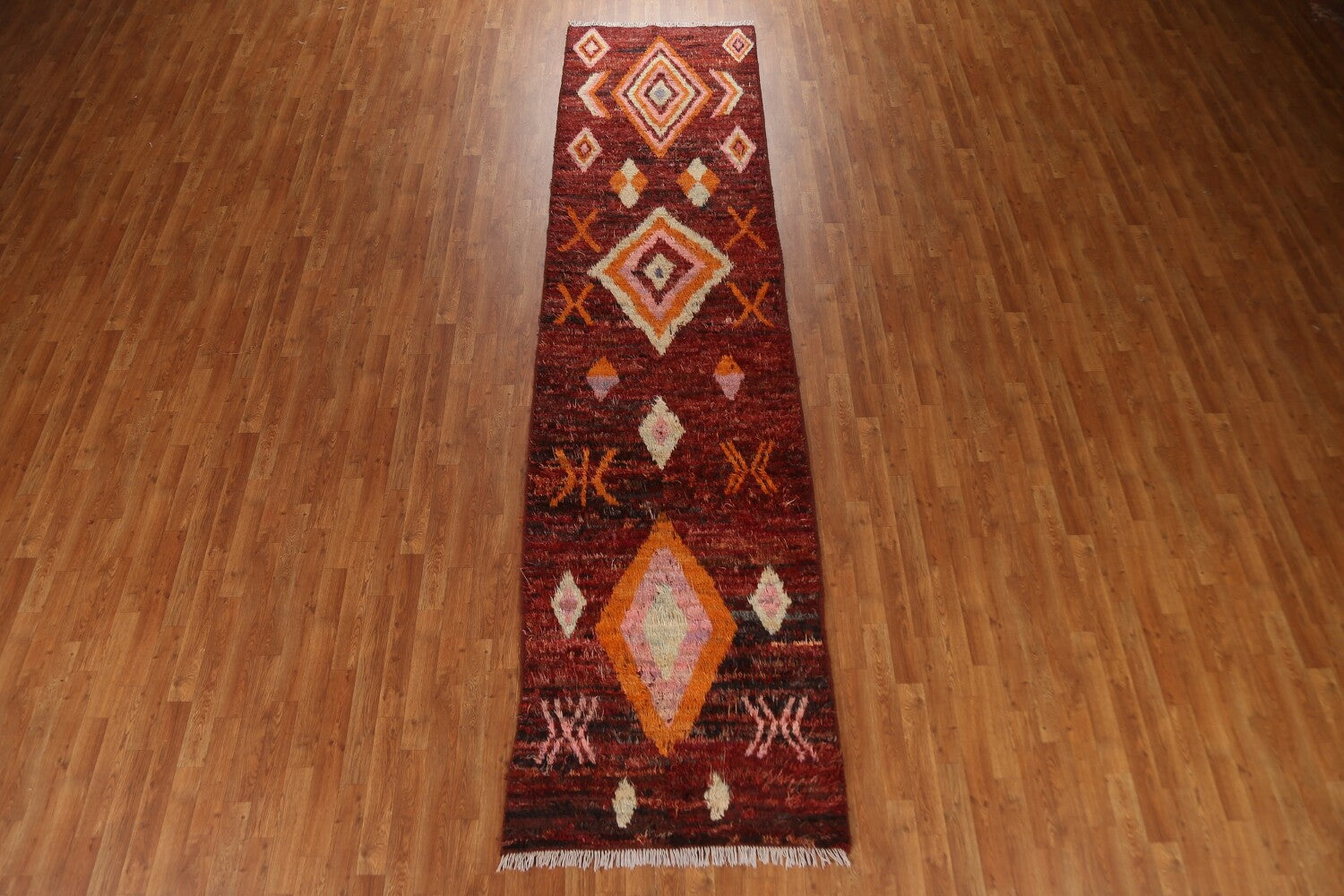 A Beautiful Genuine Pakistan Moroccan rug is Hand Knotted by skillful weavers in Pakistan with 100% Wool Material. This rug is in condition. dimensions are 12' 10'' X 3' 2'' in foot and 391 X 97 in centimeter. the primary color is Red.