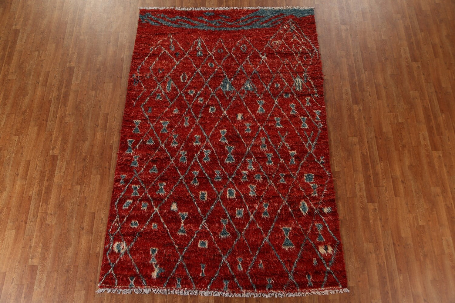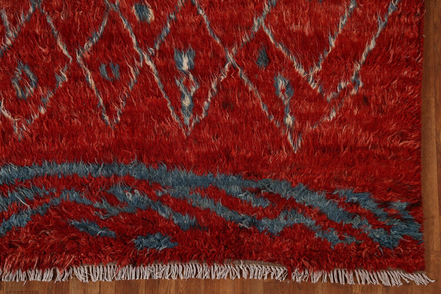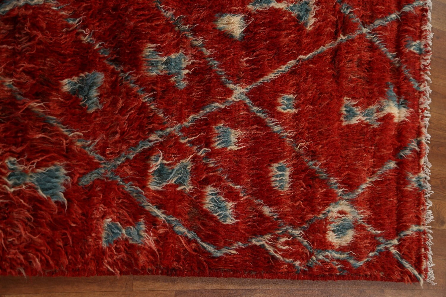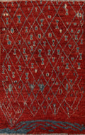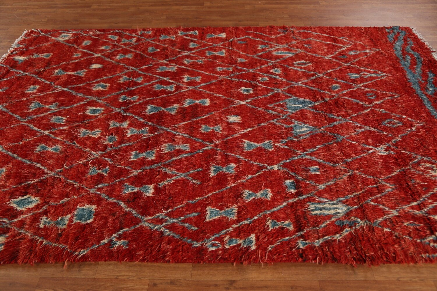 A Beautiful Genuine Pakistan Moroccan rug is Hand Knotted by skillful weavers in Pakistan with 100% Wool Material. This rug is in condition. dimensions are 9' 9'' X 6' 5'' in foot and 297 X 196 in centimeter. the primary color is Red.
