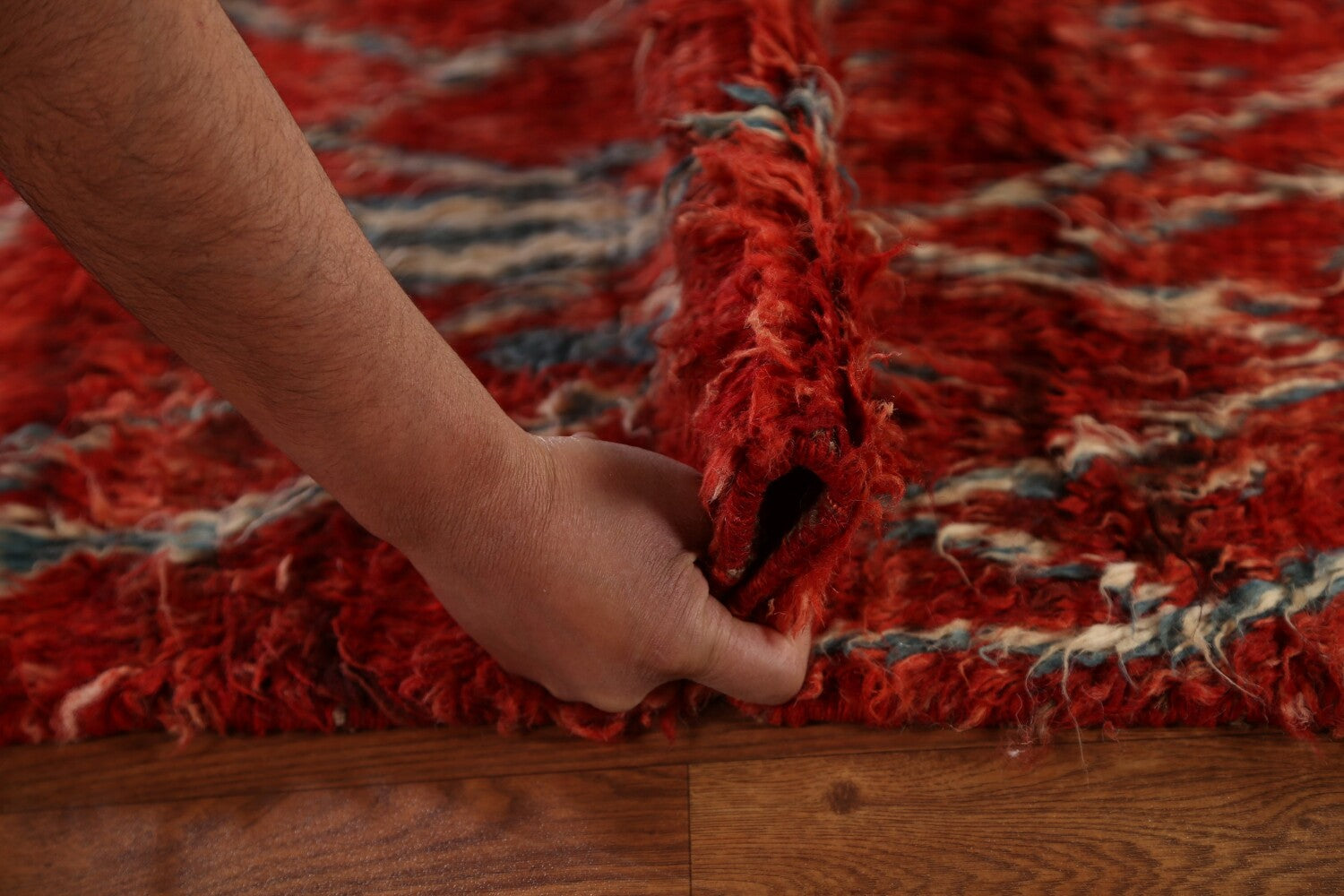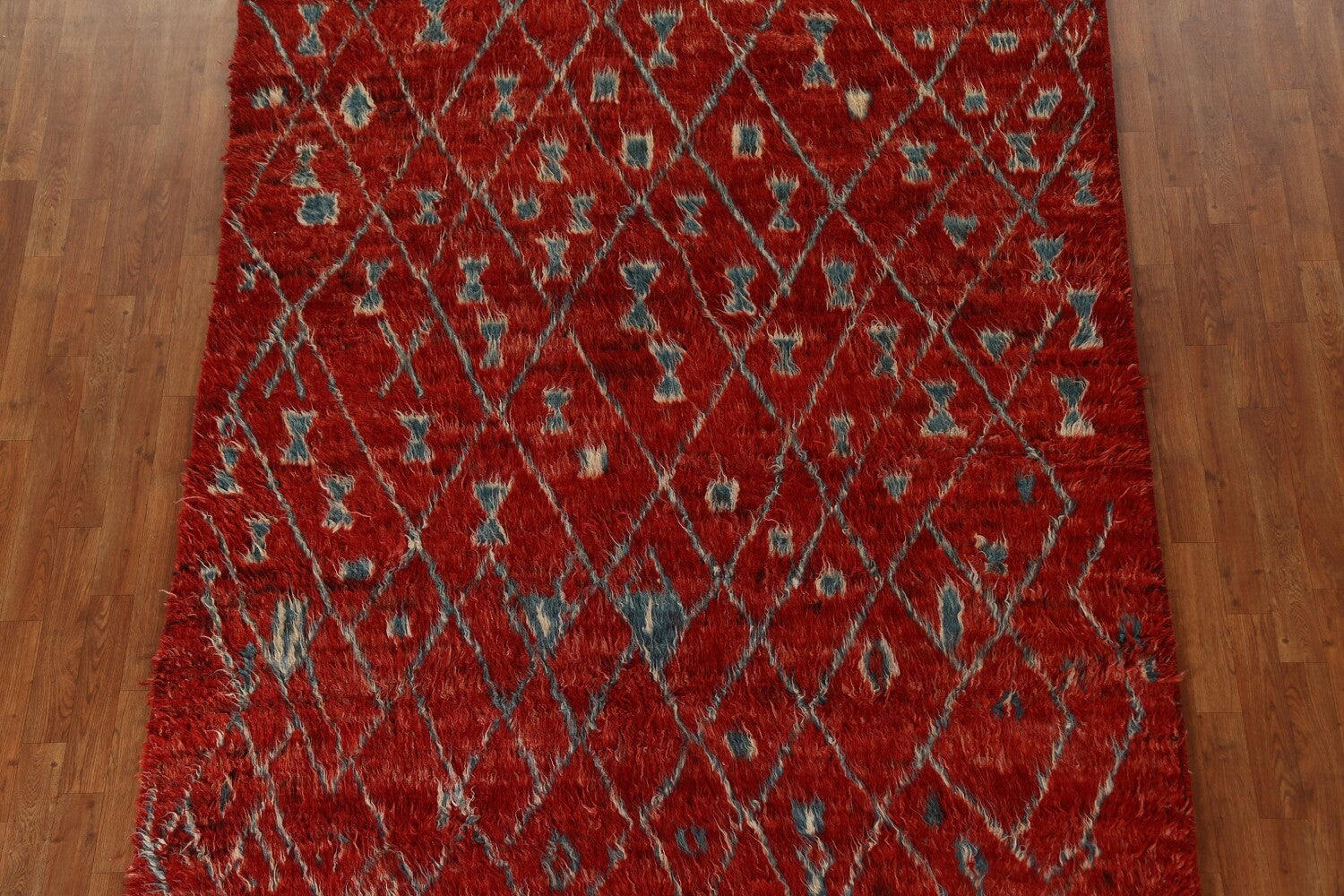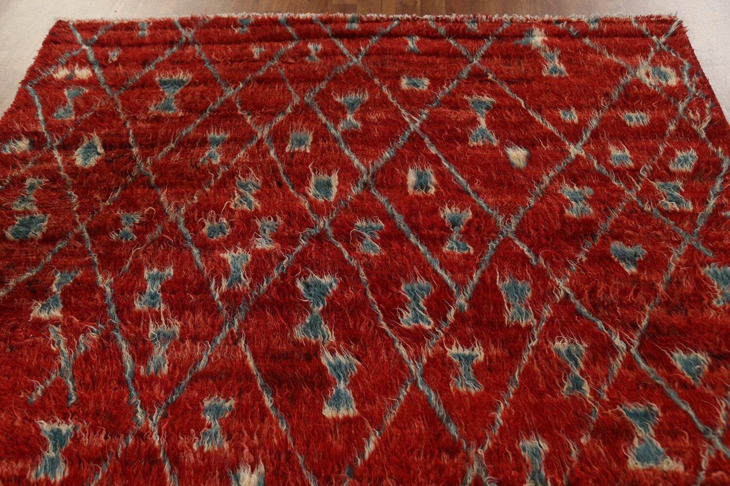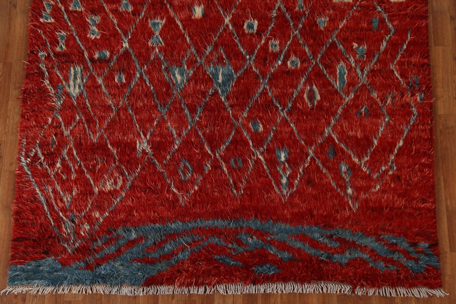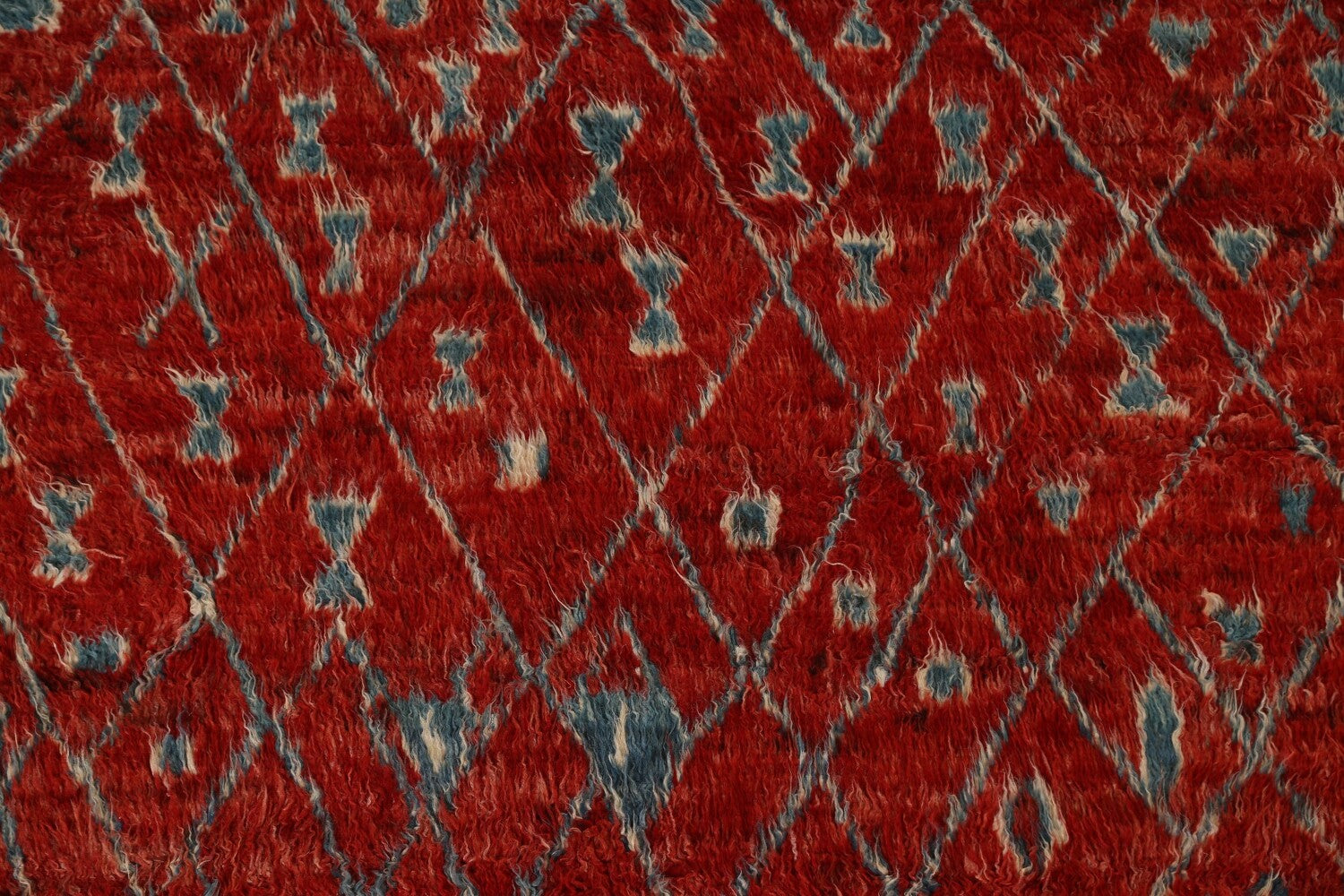 A Beautiful Genuine Pakistan Moroccan rug is Hand Knotted by skillful weavers in Pakistan with 100% Wool Material. This rug is in condition. dimensions are 9' 9'' X 6' 5'' in foot and 297 X 196 in centimeter. the primary color is Red.