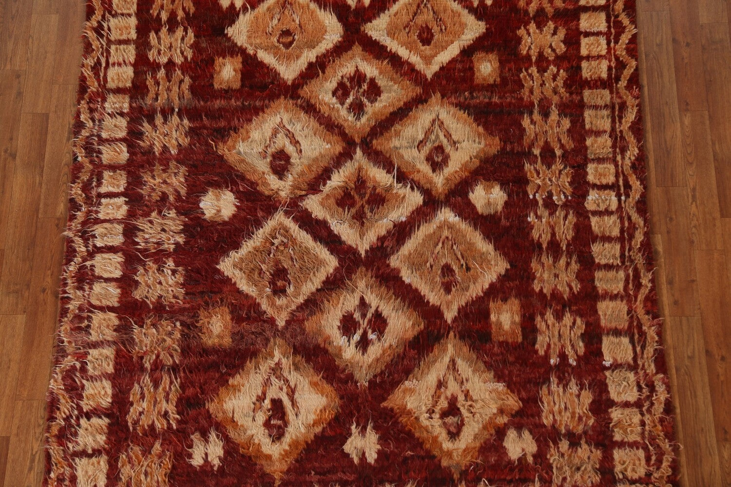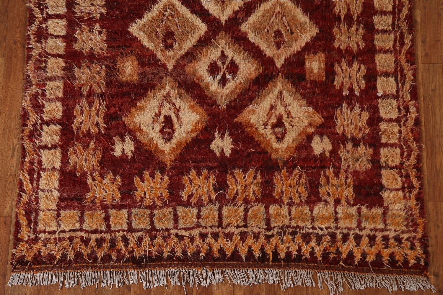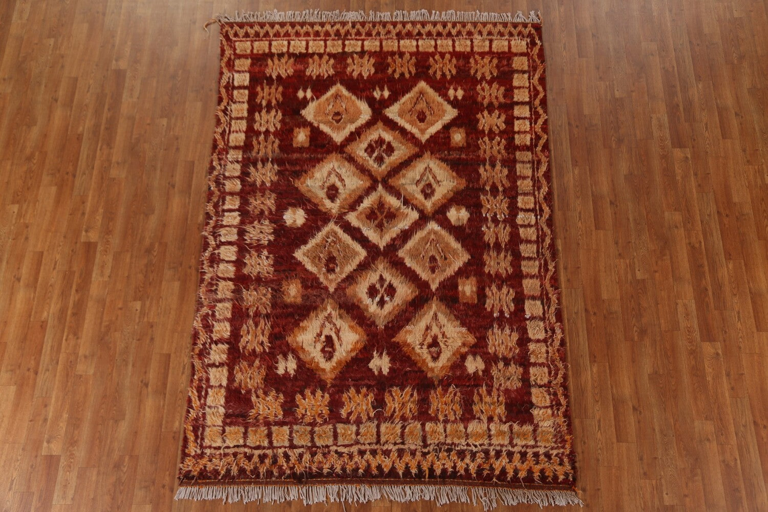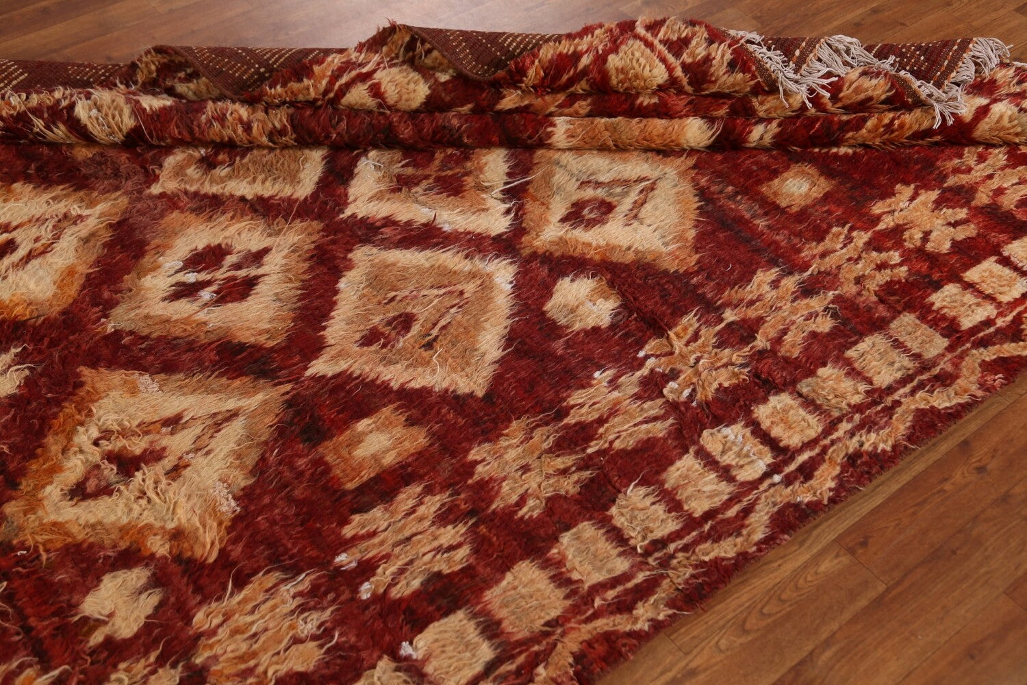 A Beautiful Genuine Pakistan Moroccan rug is Hand Knotted by skillful weavers in Pakistan with 100% Wool Material. This rug is in condition. dimensions are 8' 0'' X 5' 7'' in foot and 244 X 170 in centimeter. the primary color is Red.