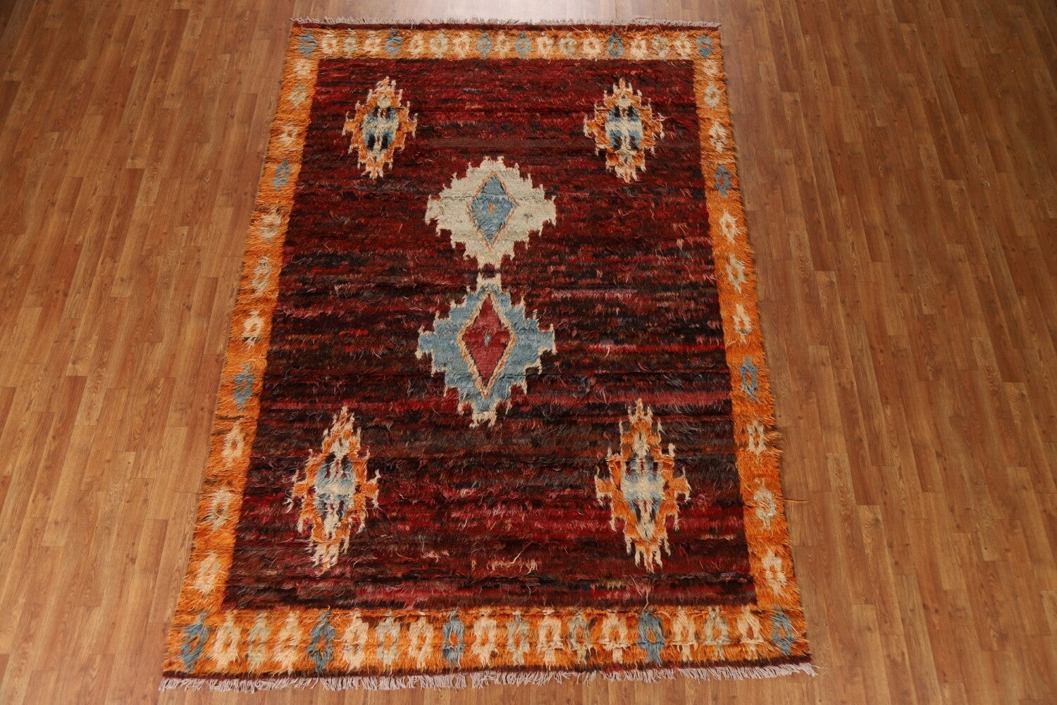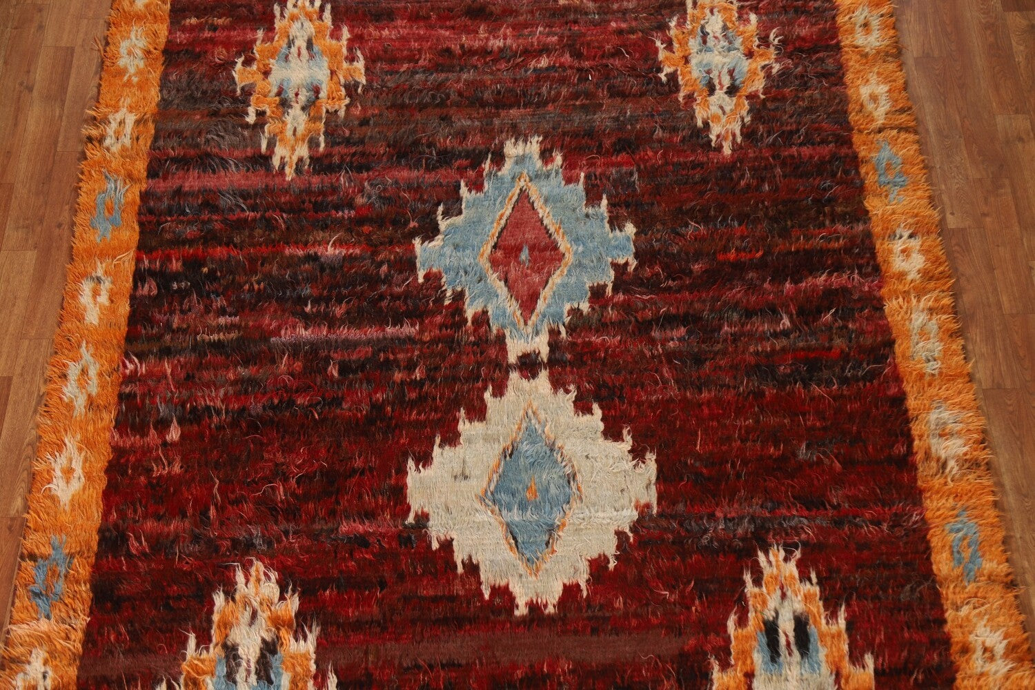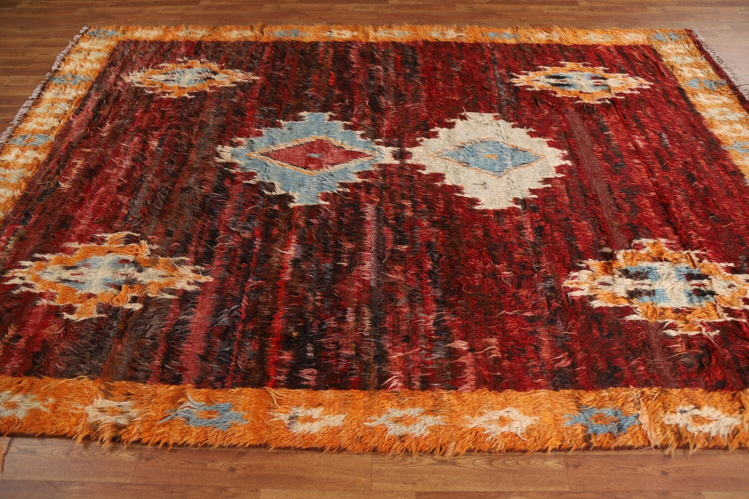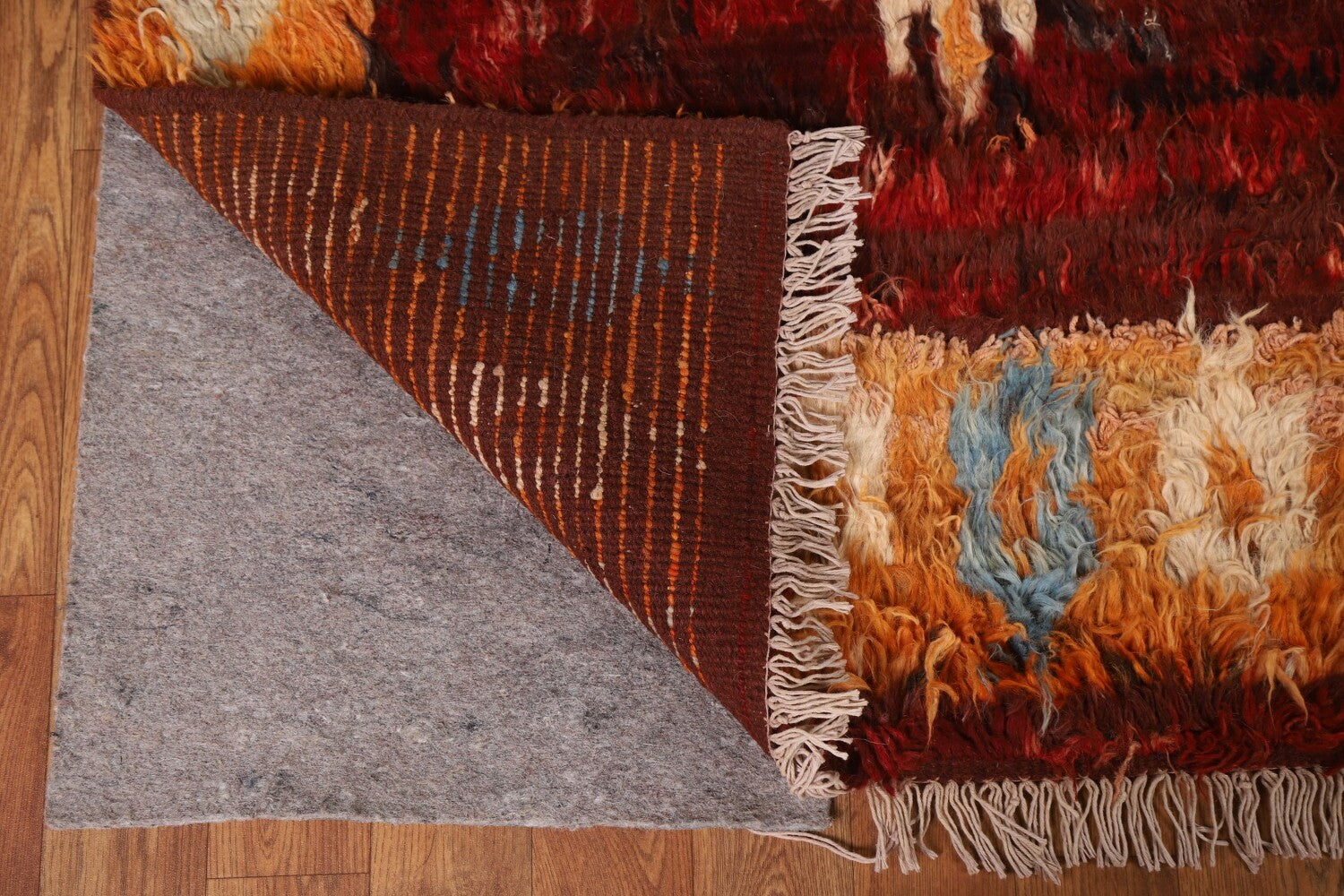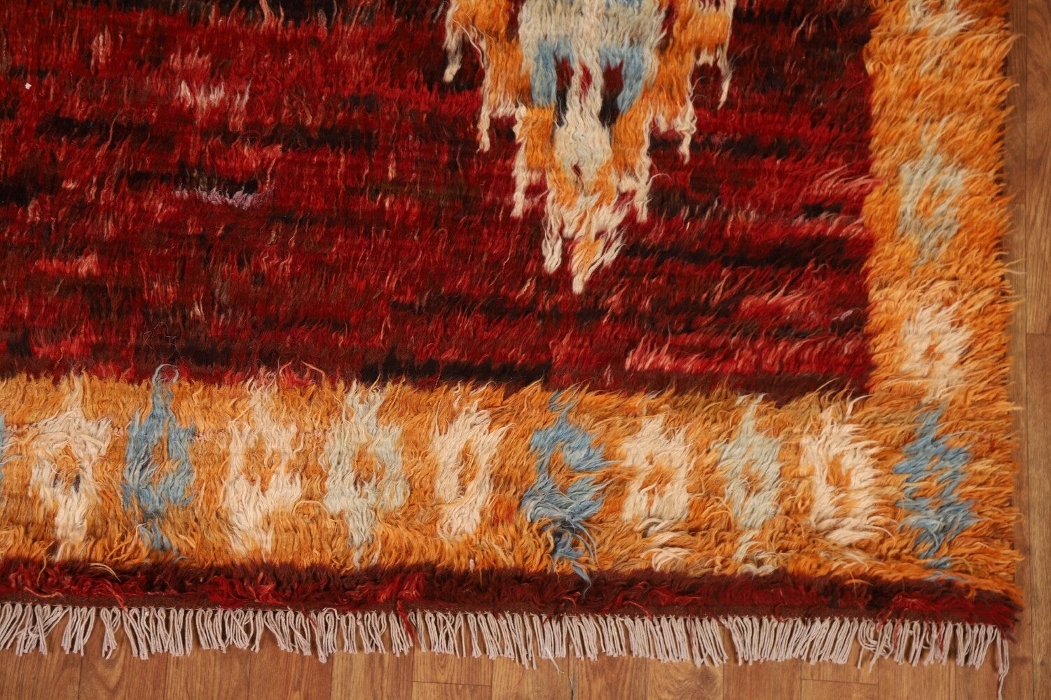 A Beautiful Genuine Pakistan Moroccan rug is Hand Knotted by skillful weavers in Pakistan with 100% Wool Material. This rug is in condition. dimensions are 9' 9'' X 6' 8'' in foot and 297 X 203 in centimeter. the primary color is Red.