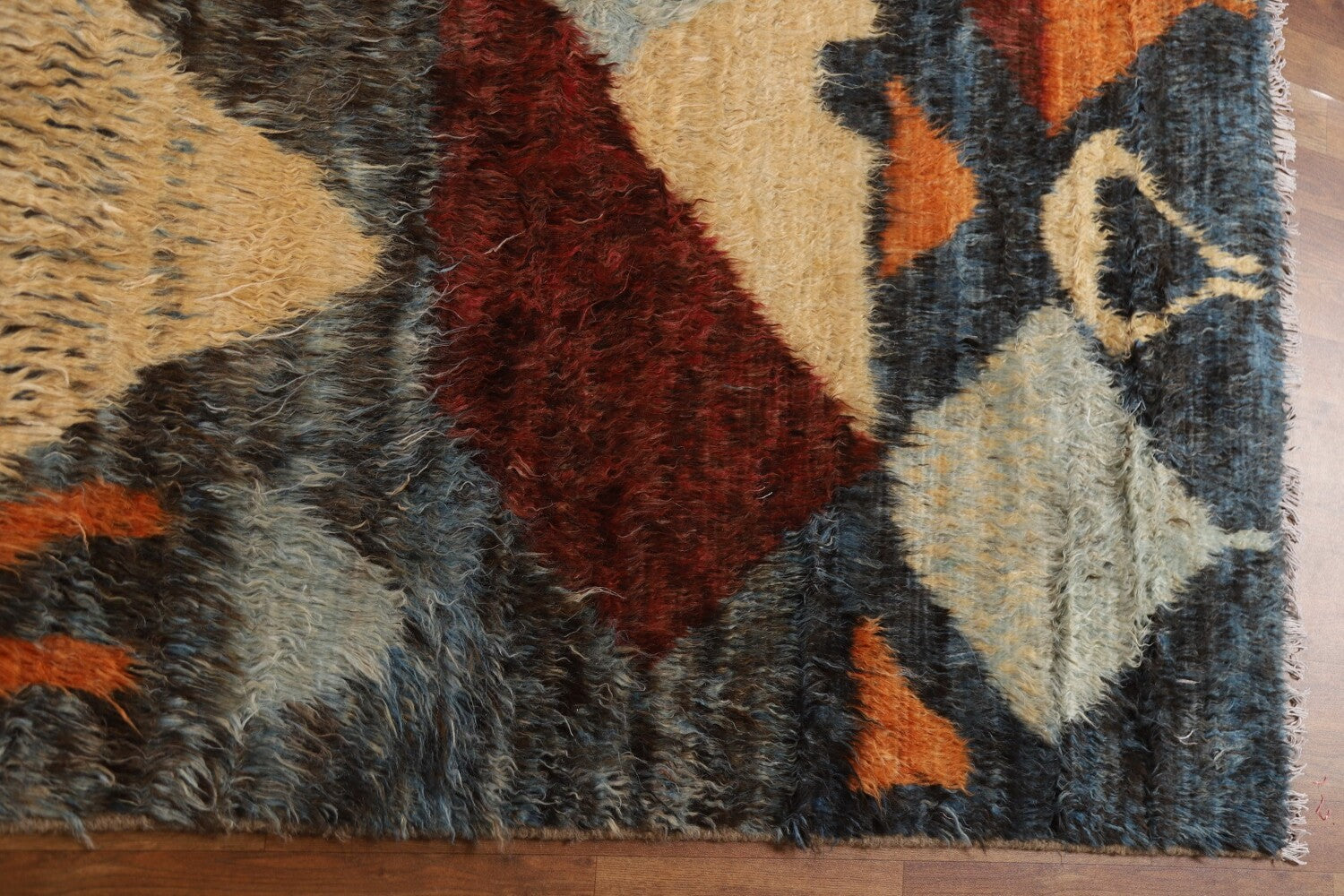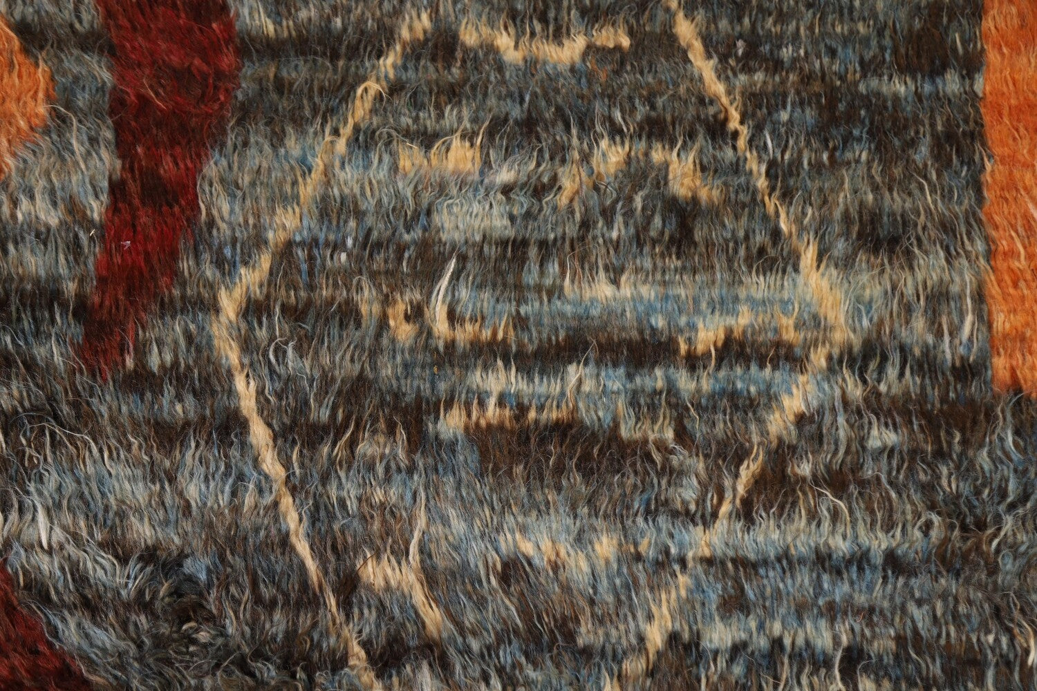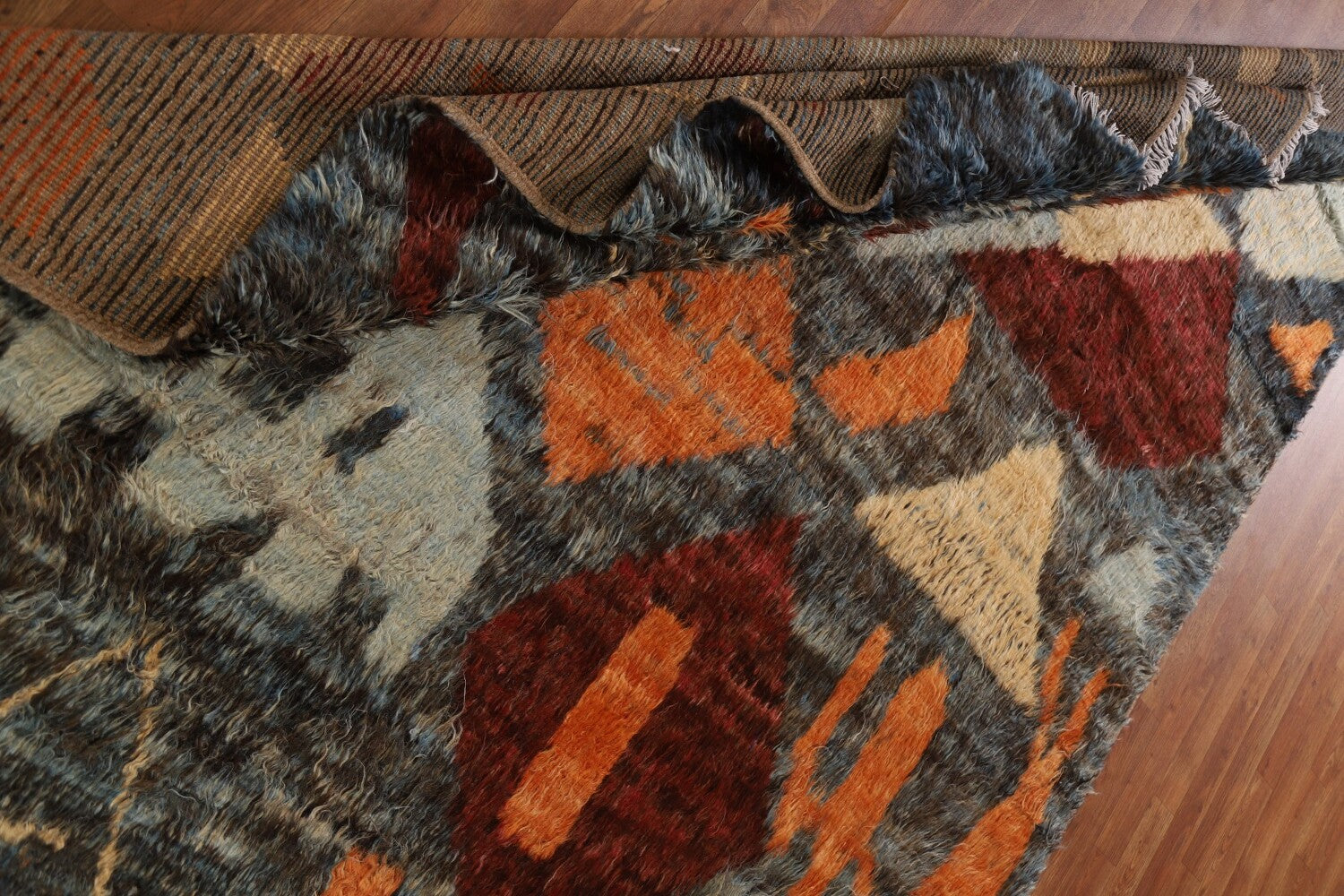 A Beautiful Genuine Pakistan Moroccan rug is Hand Knotted by skillful weavers in Pakistan with 100% Wool Material. This rug is in condition. dimensions are 9' 10'' X 6' 8'' in foot and 300 X 203 in centimeter. the primary color is Navy Blue & Blues.