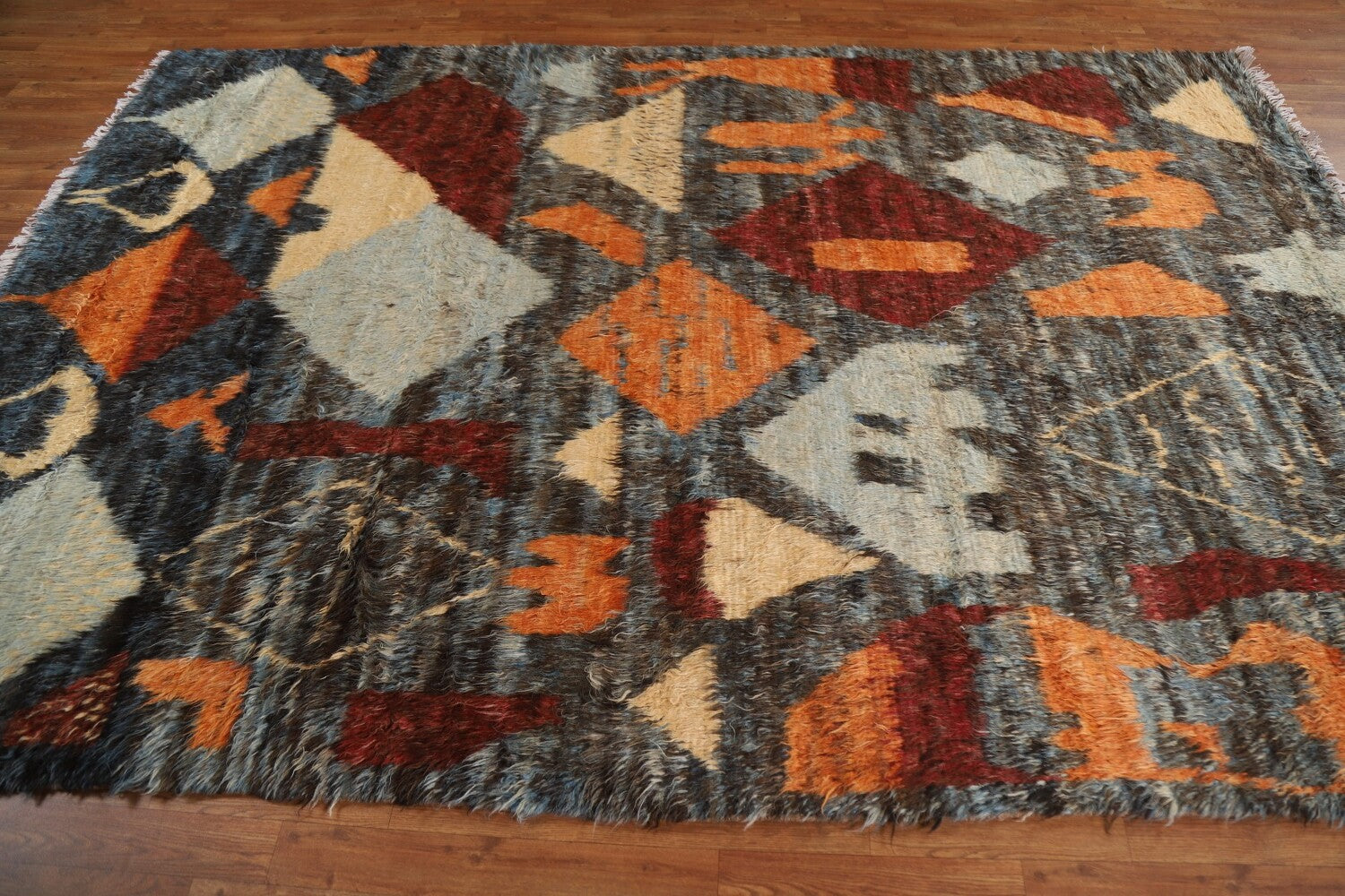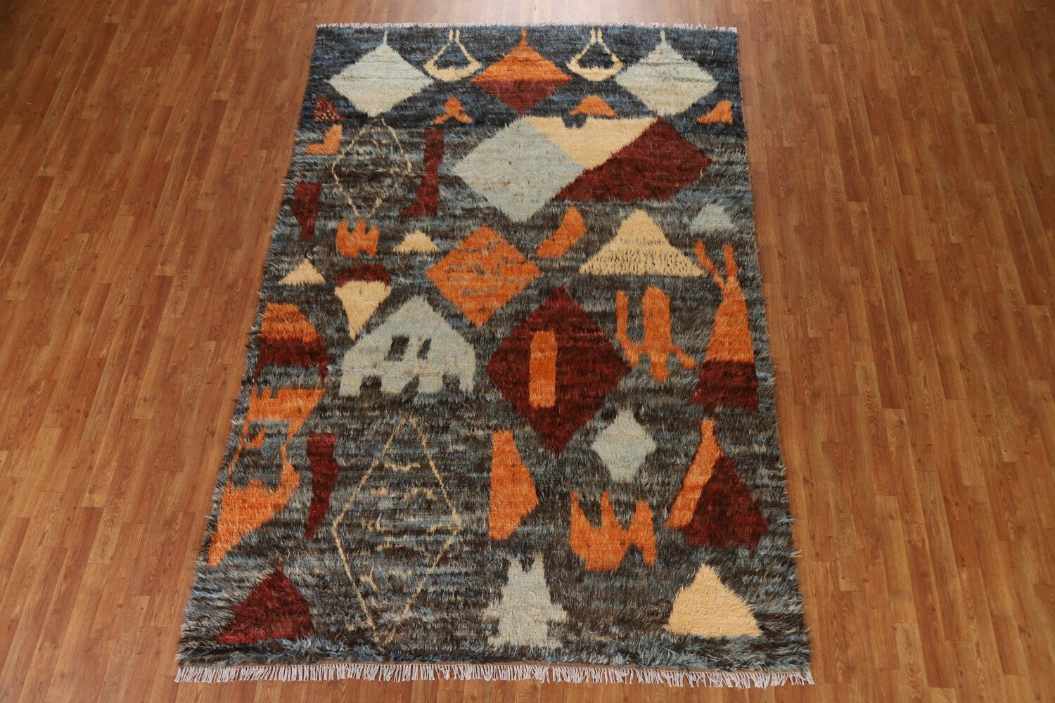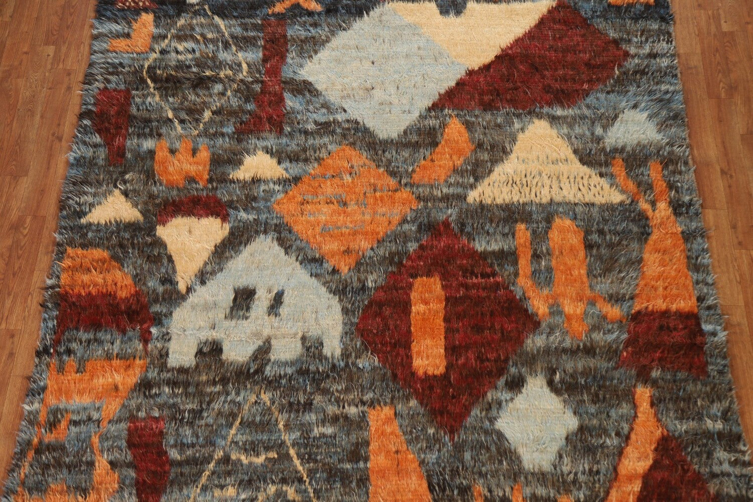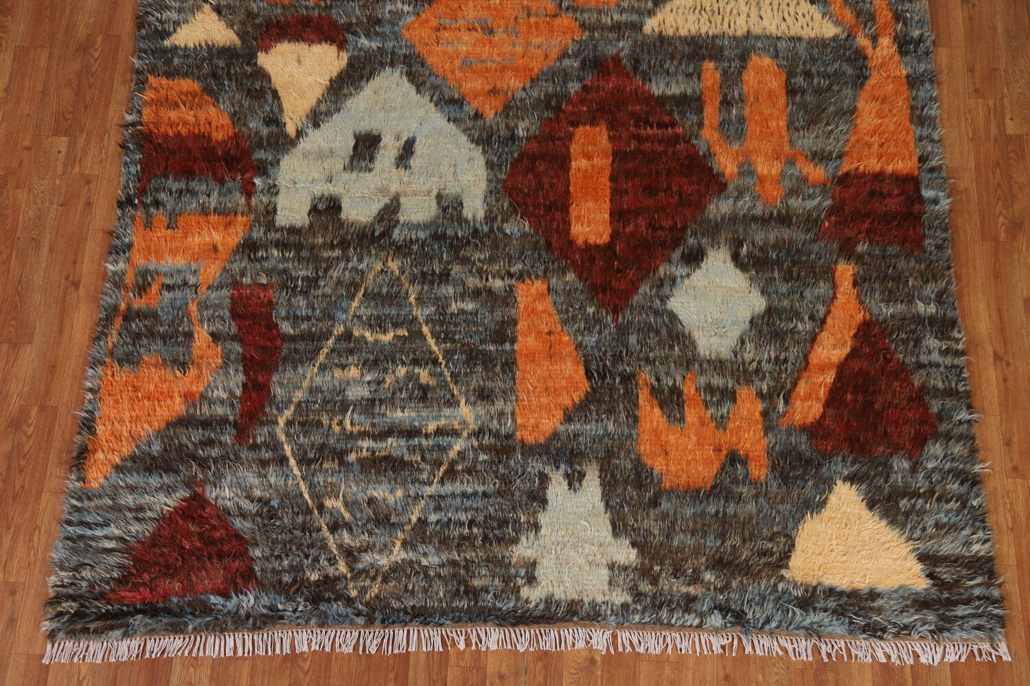 A Beautiful Genuine Pakistan Moroccan rug is Hand Knotted by skillful weavers in Pakistan with 100% Wool Material. This rug is in condition. dimensions are 9' 10'' X 6' 8'' in foot and 300 X 203 in centimeter. the primary color is Navy Blue & Blues.