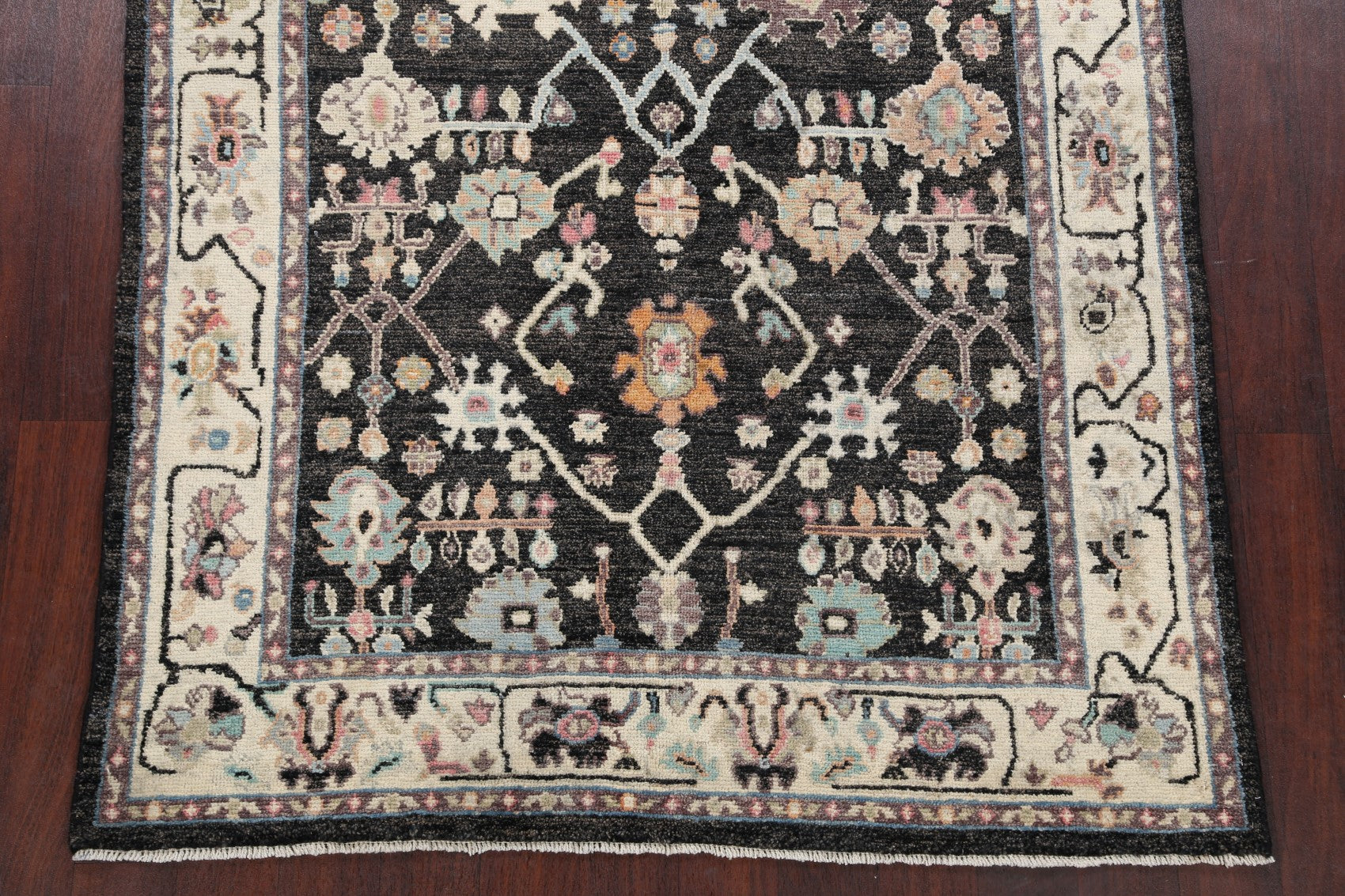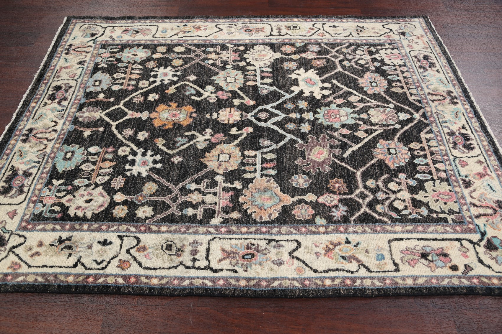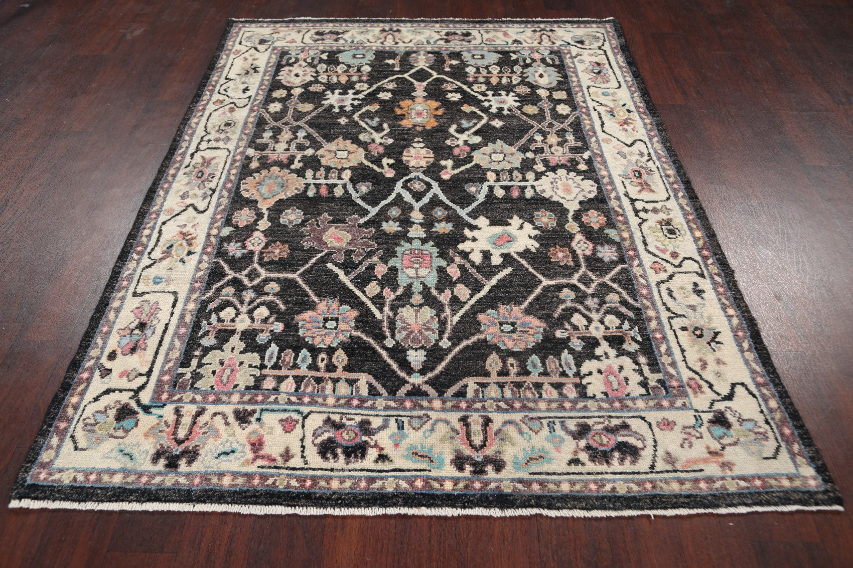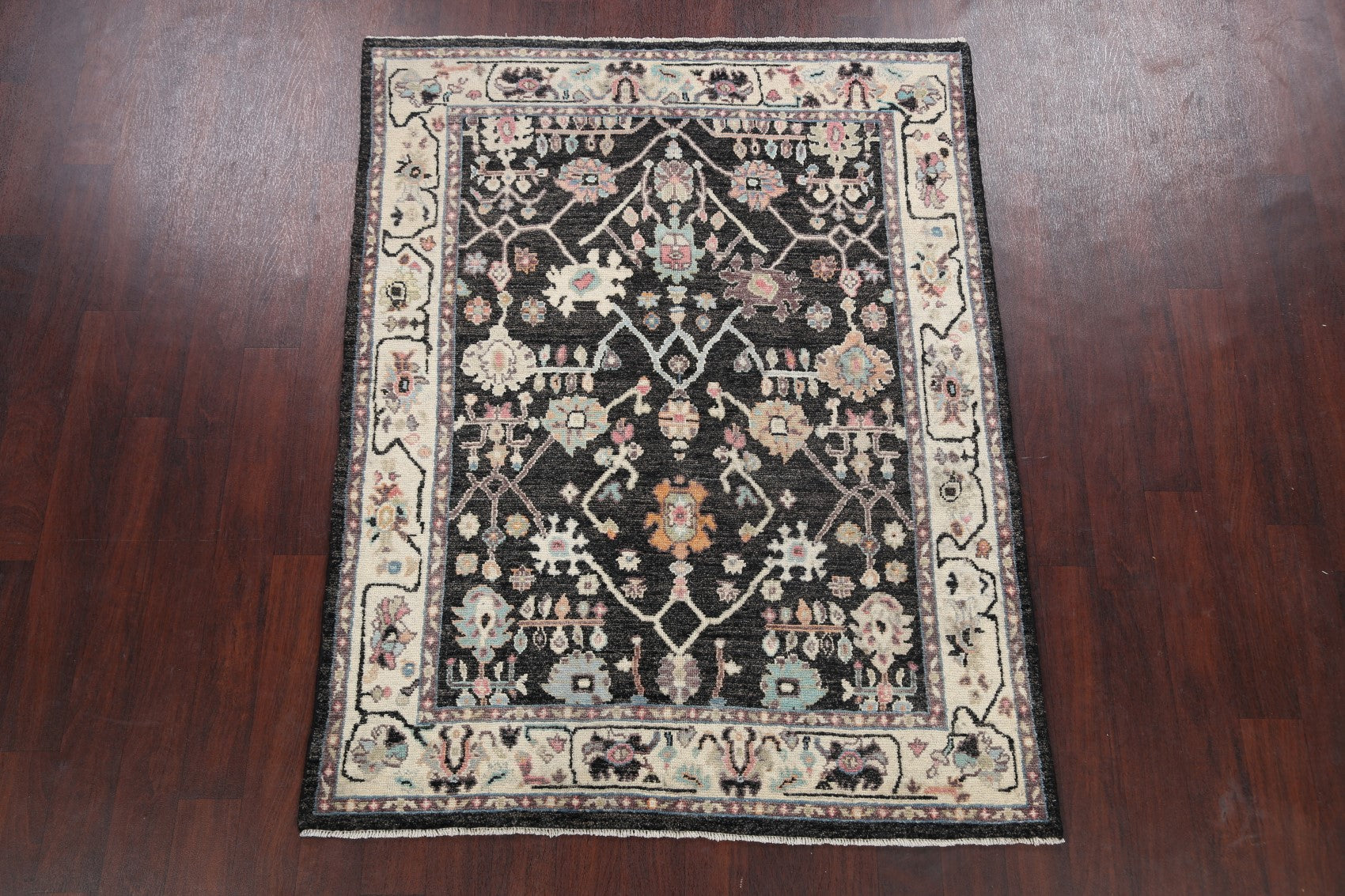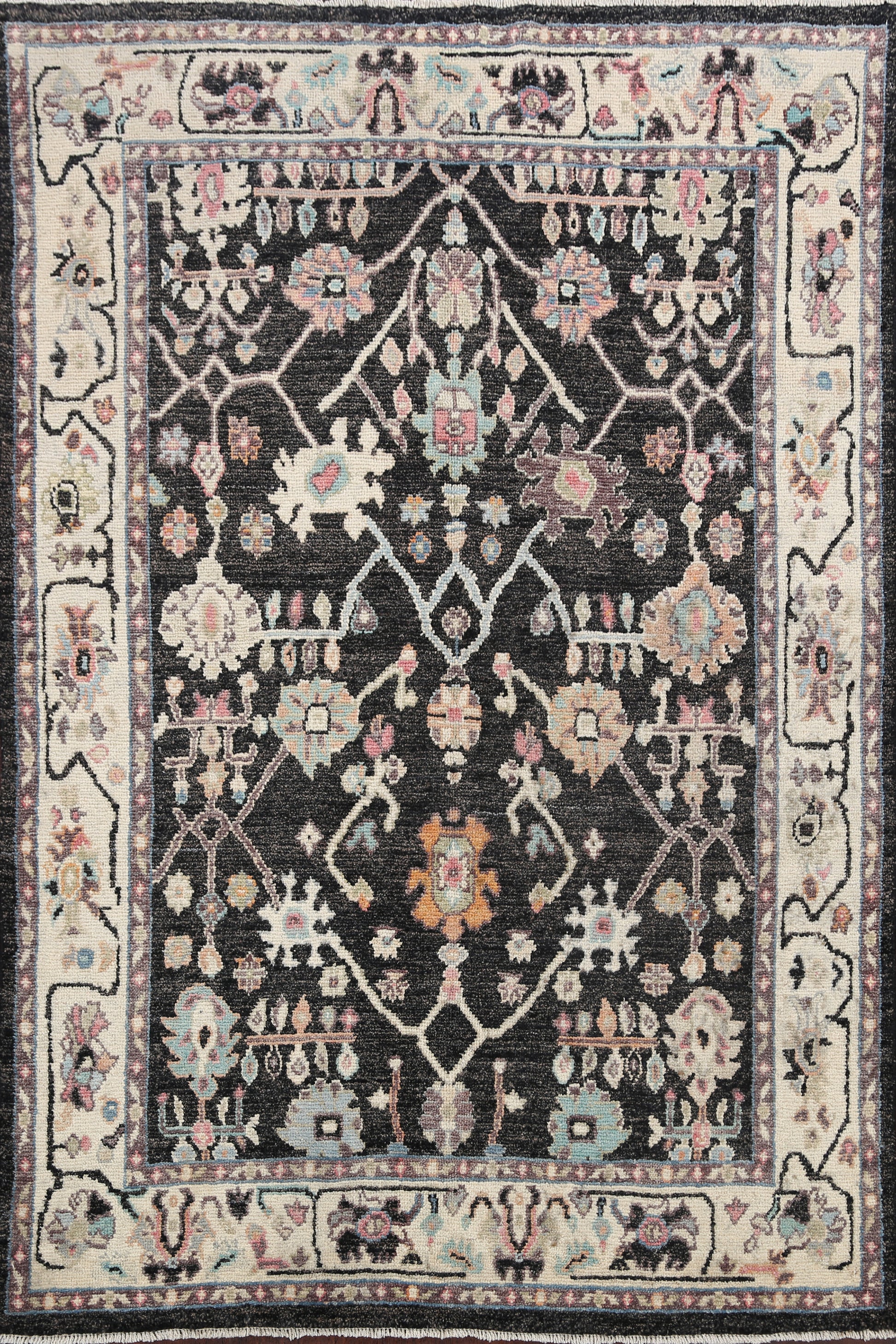 A Beautiful Genuine Turkey Oushak rug is Hand Knotted by skillful weavers in Turkey with 100% Wool Material. This rug is in New, First Quality condition. dimensions are 6' 2'' X 4' 8'' in foot and 188 X 142 in centimeter. the primary color is Black.