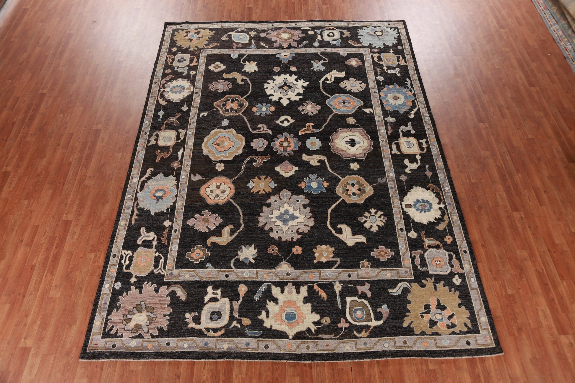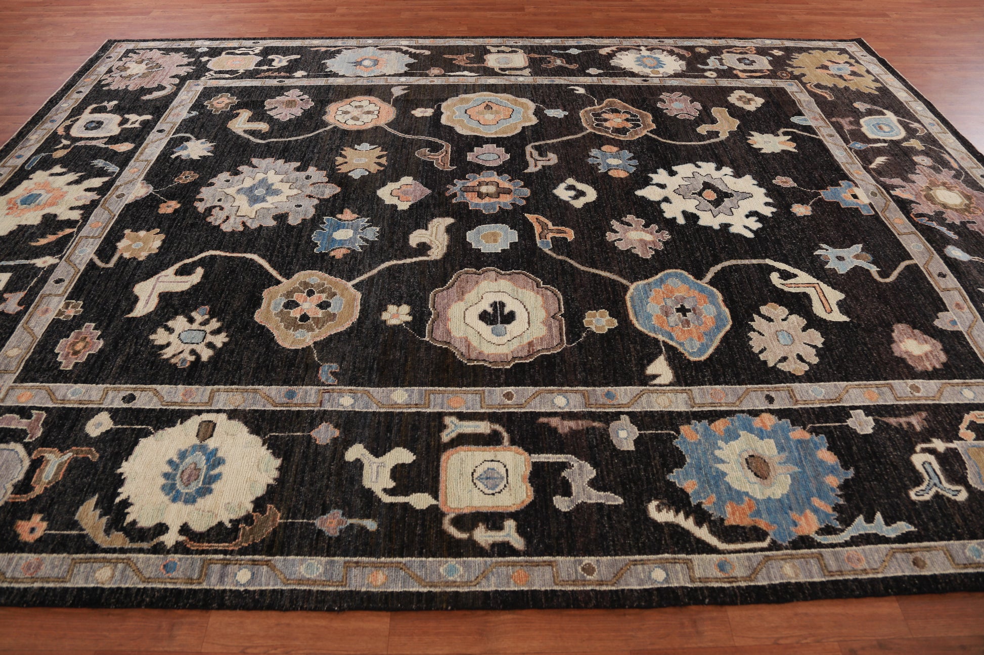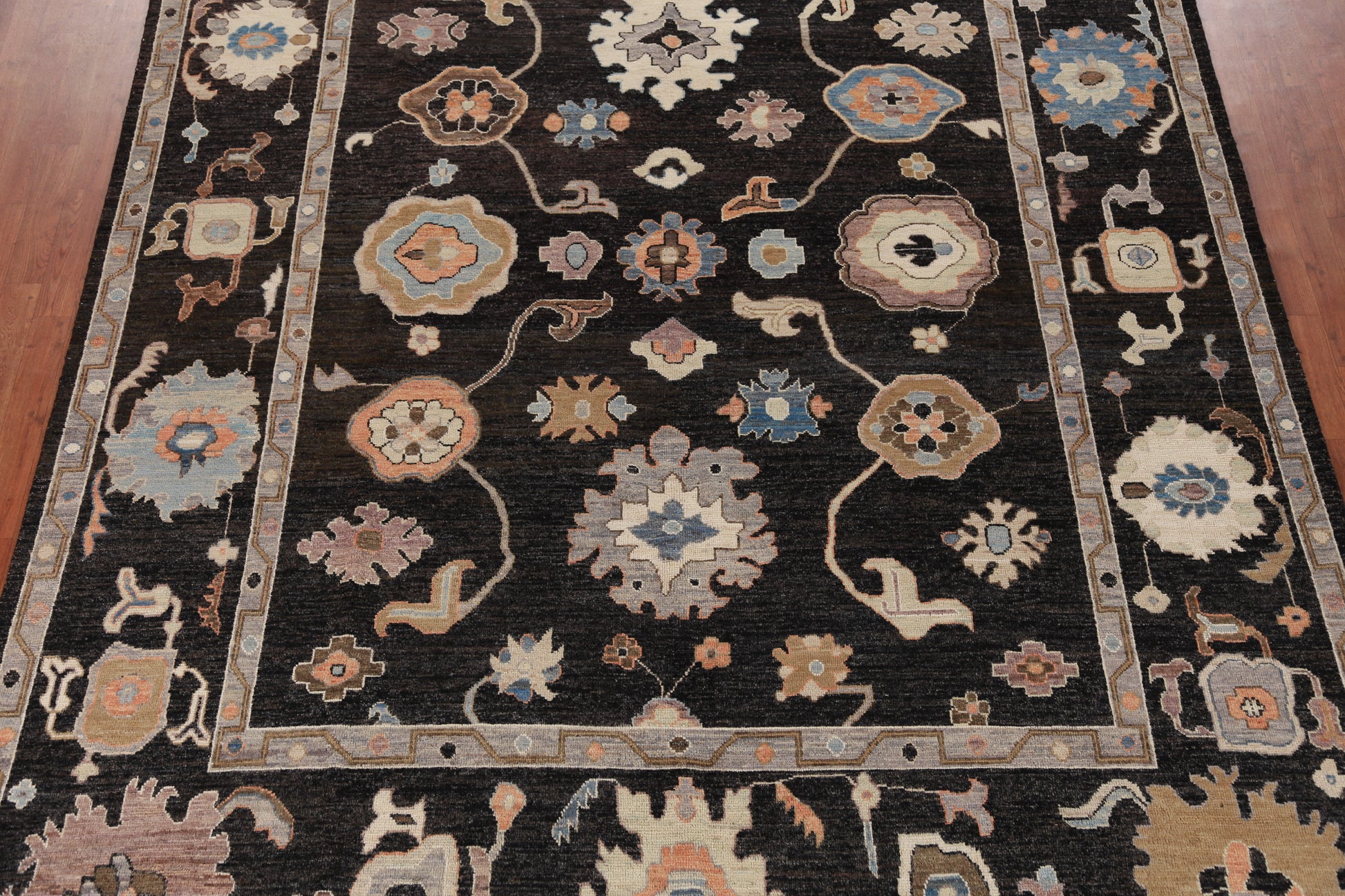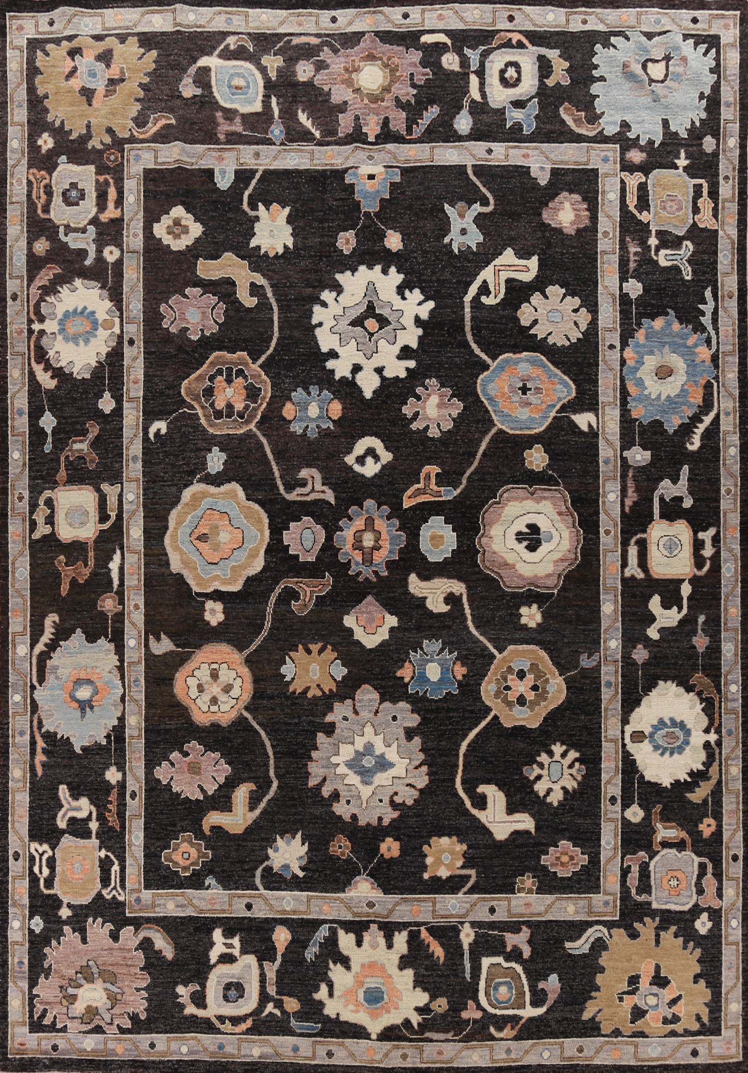 Black Floral Oushak Vegetable Dye Area Rug 9x12