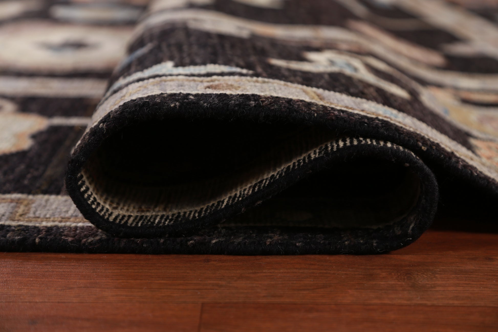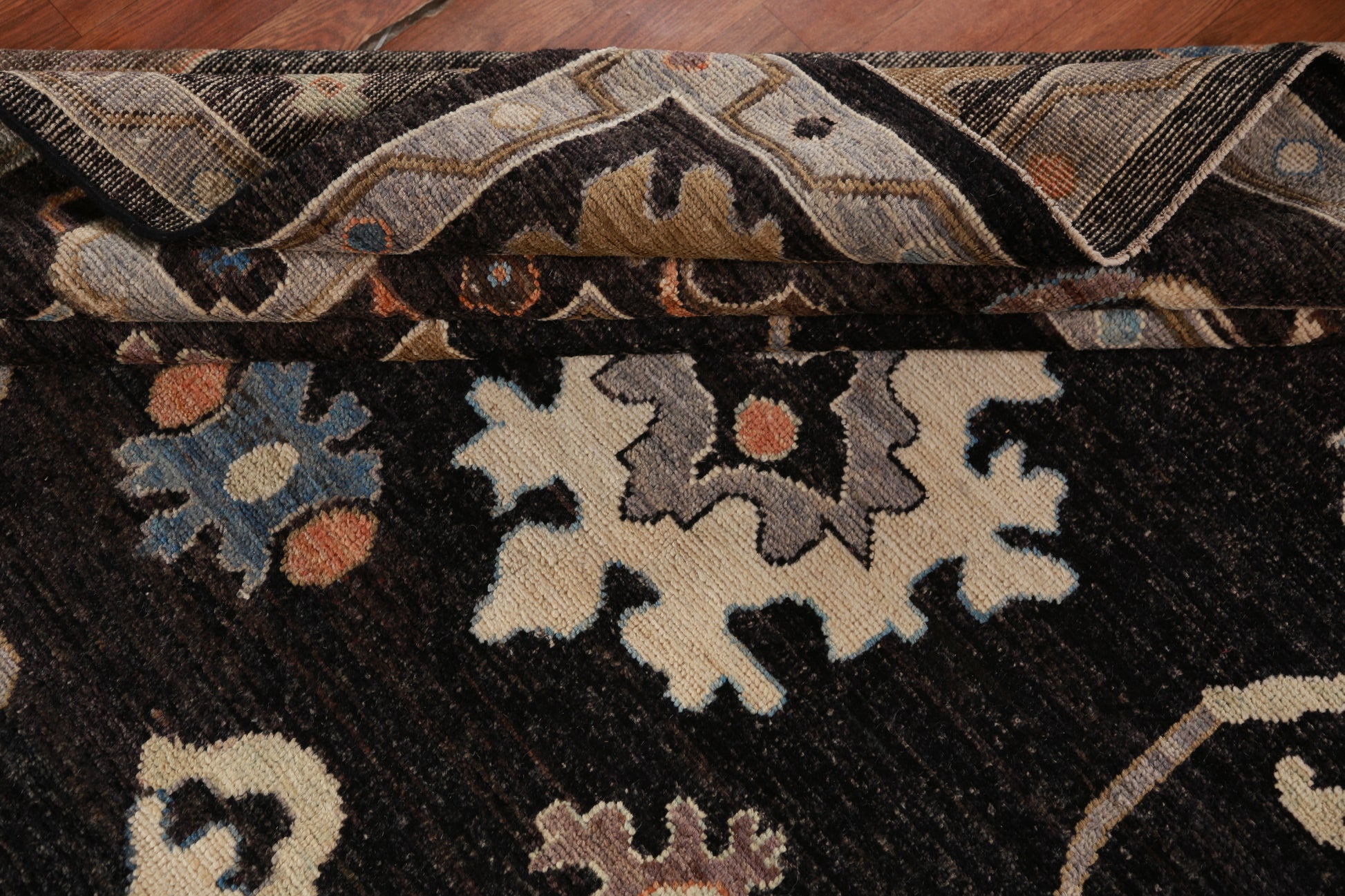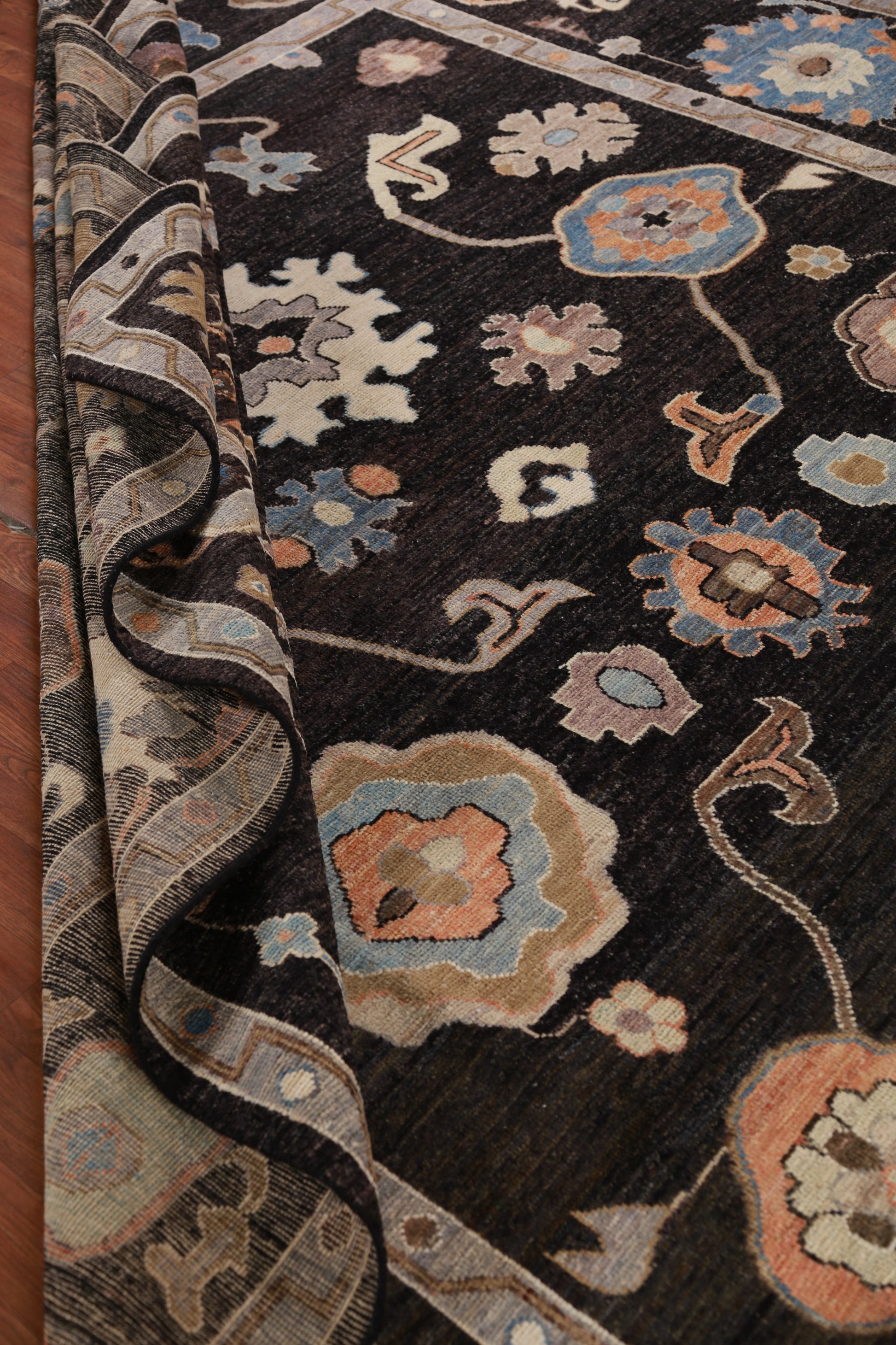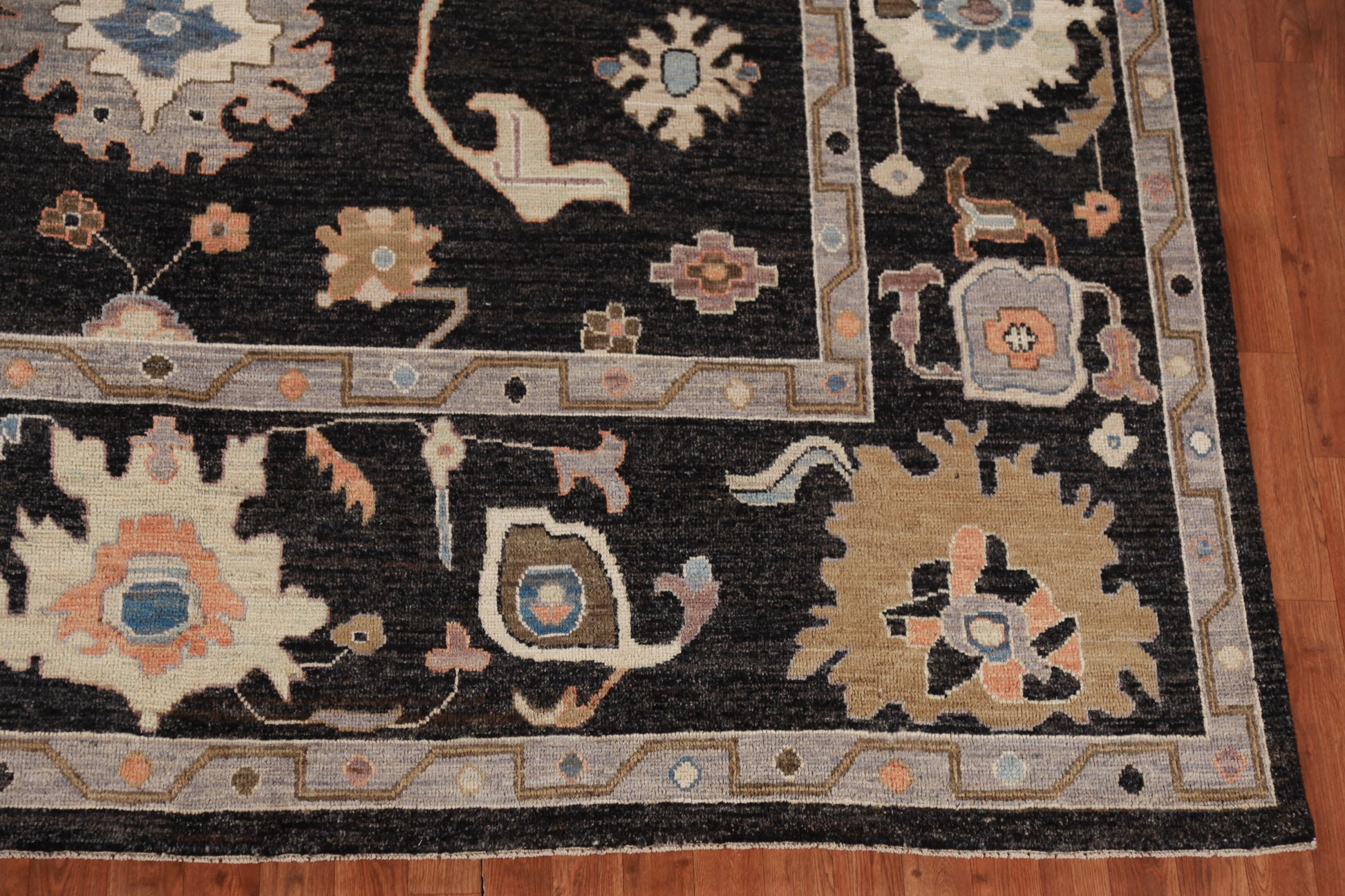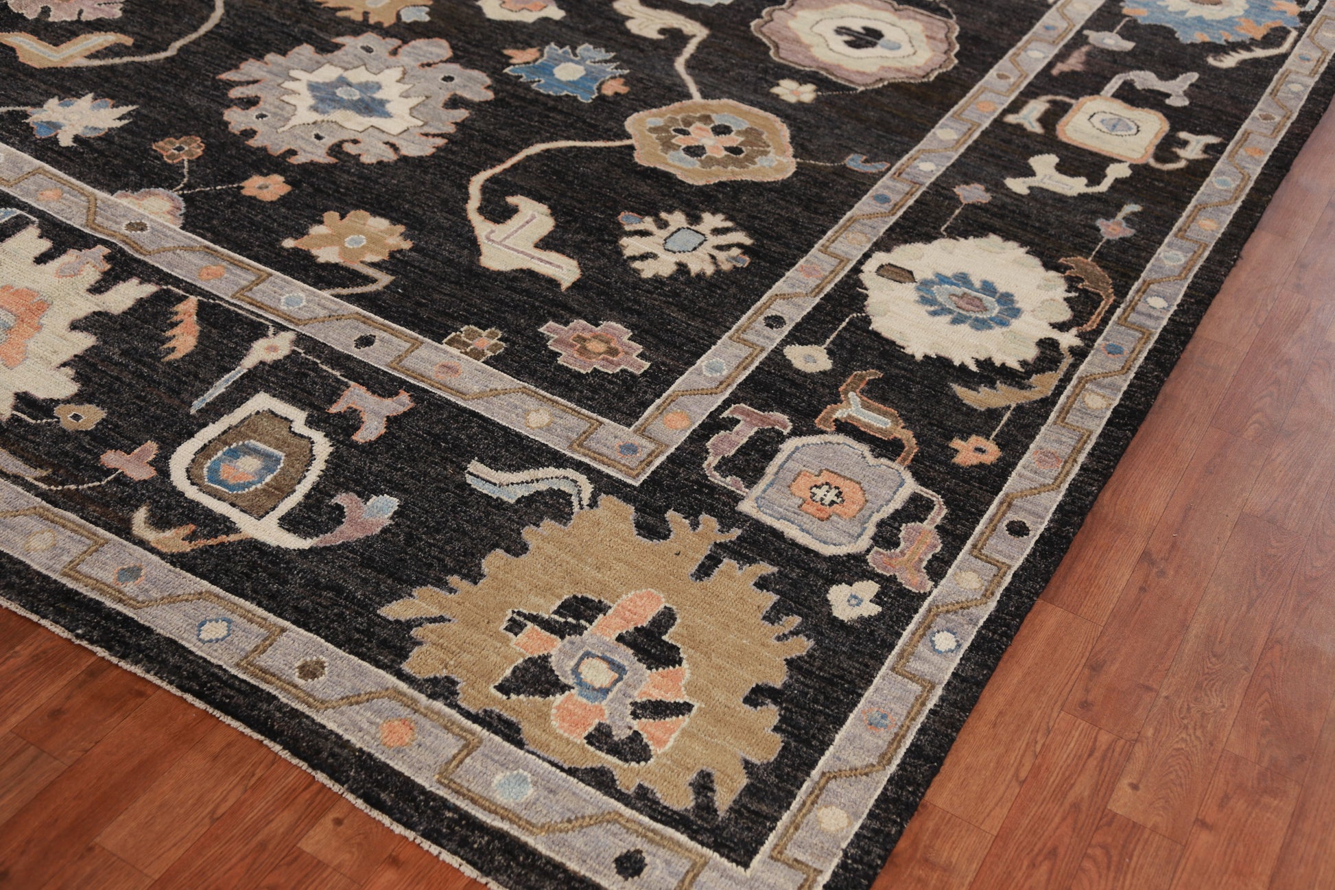 Black Floral Oushak Vegetable Dye Area Rug 9x12
