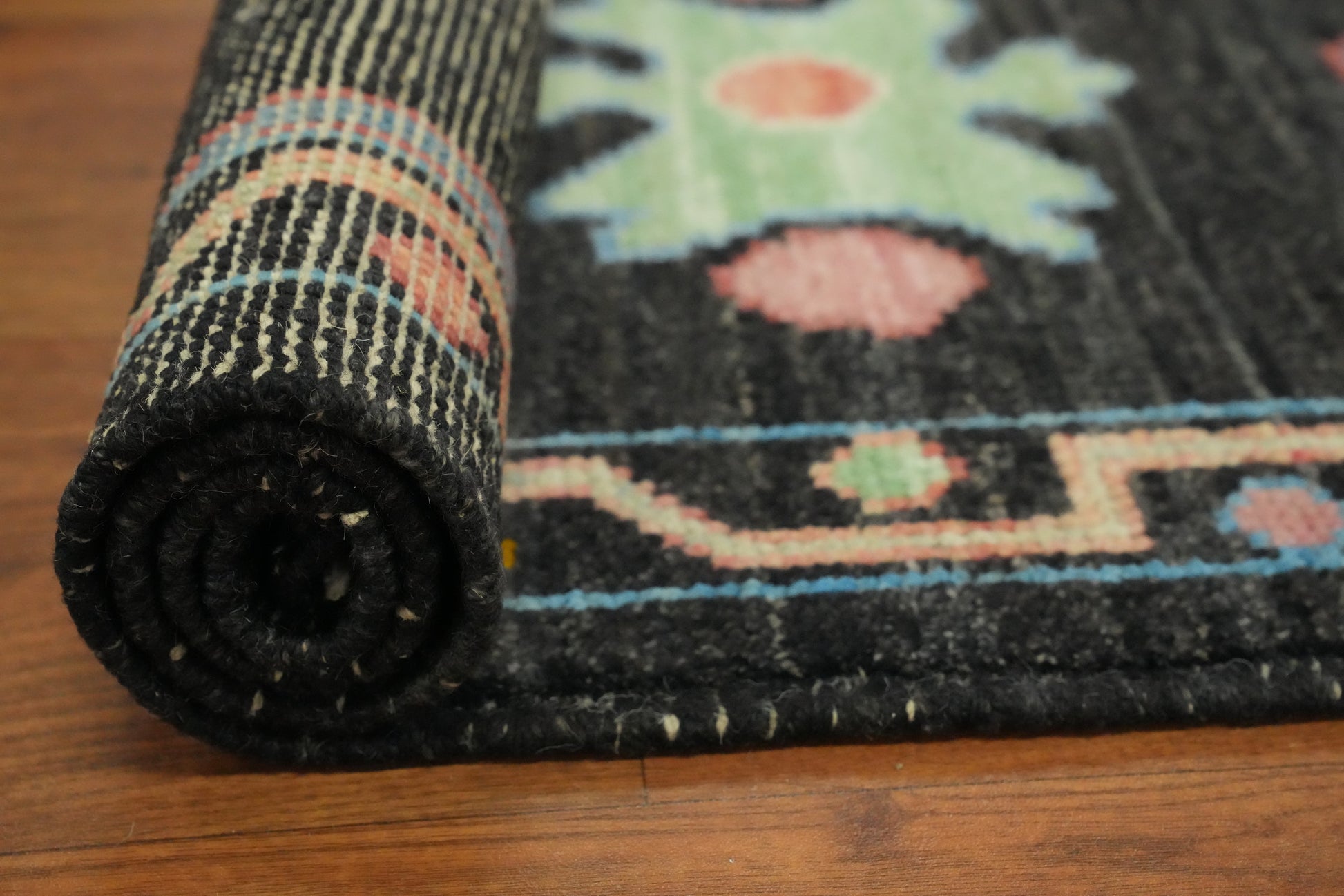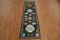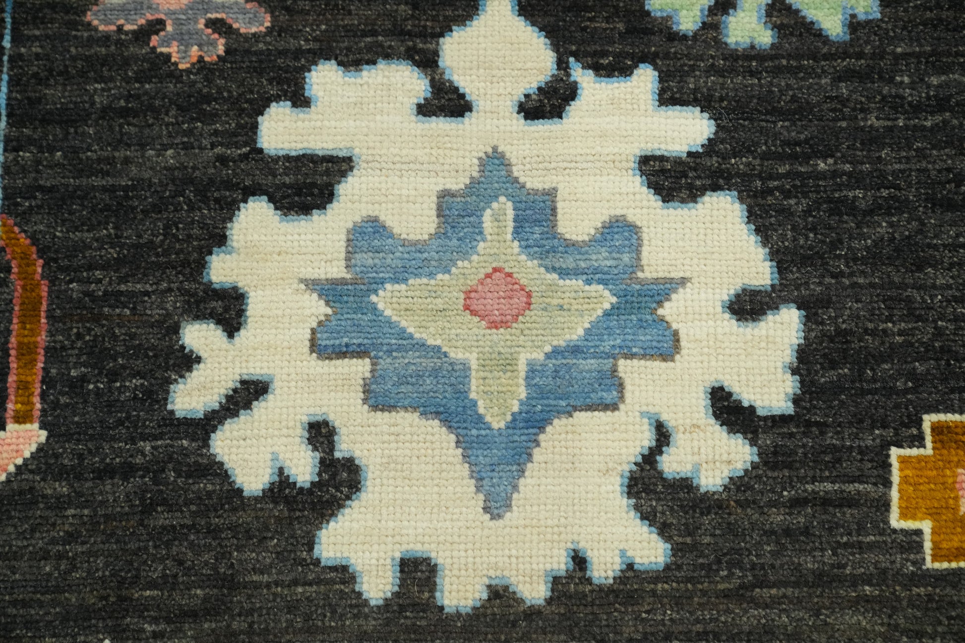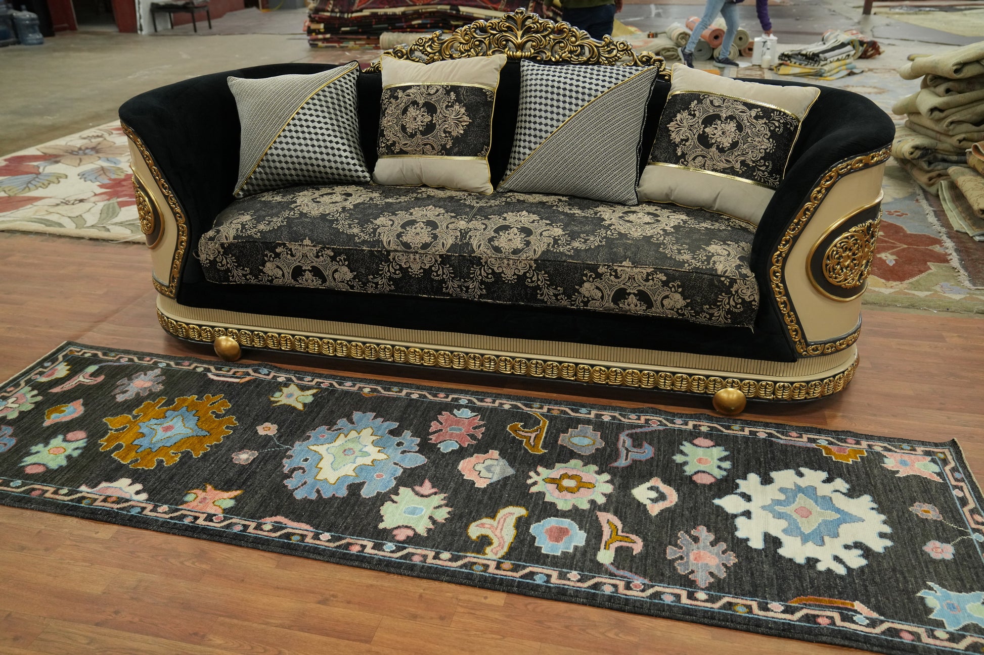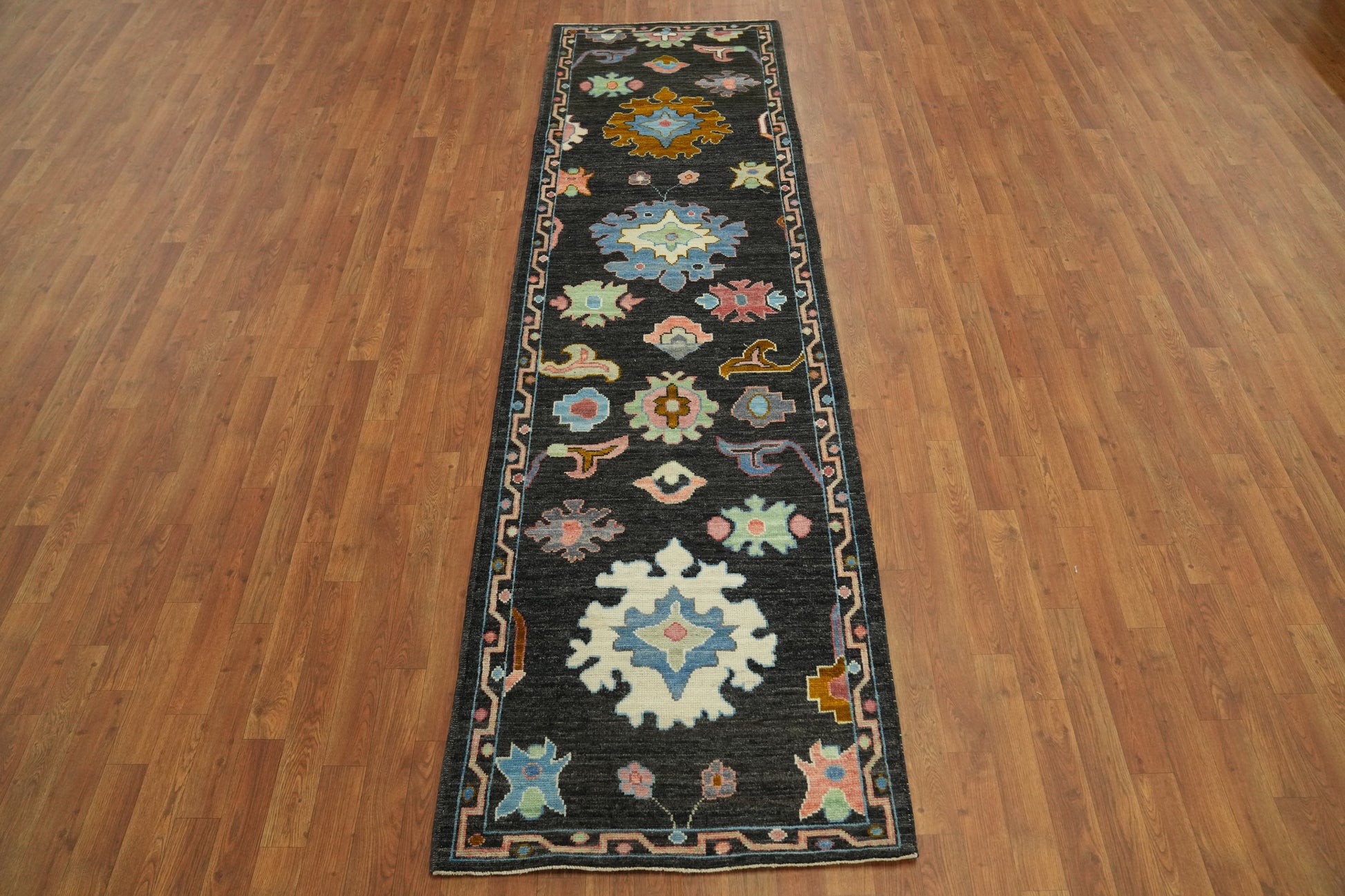 Black Floral Oushak Vegetable Dye Runner Rug 3x10