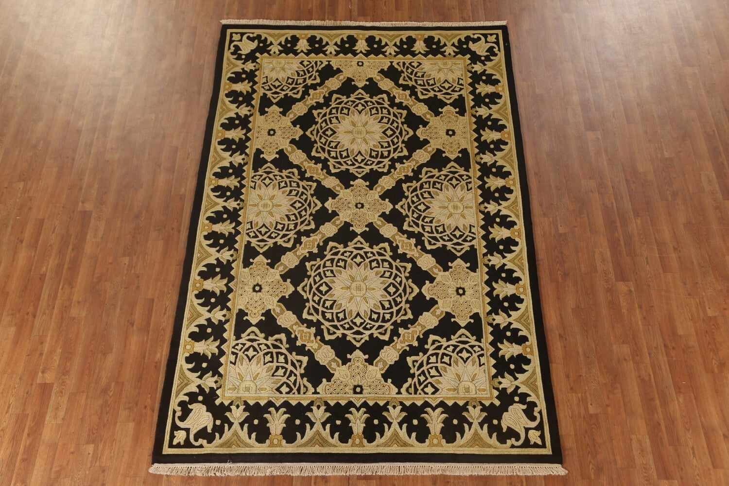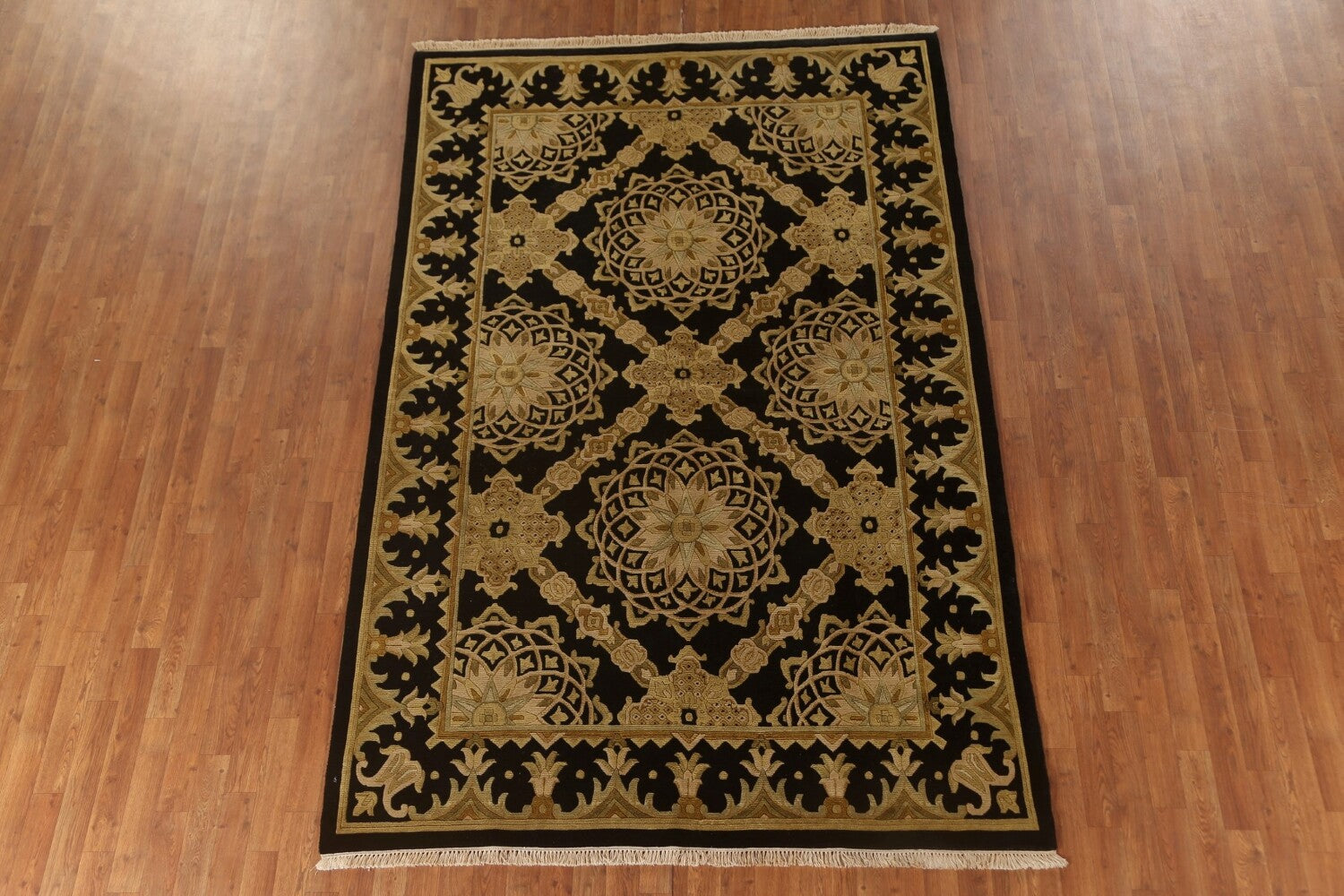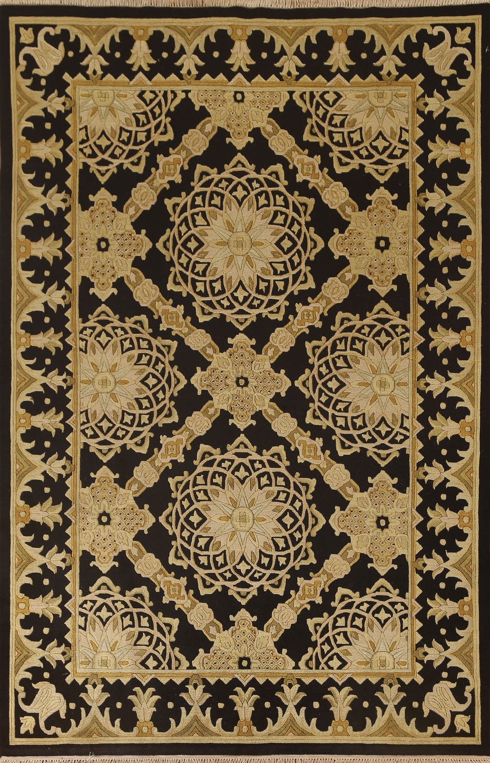 Black & Gold Agra Indian Area Rug 6x9