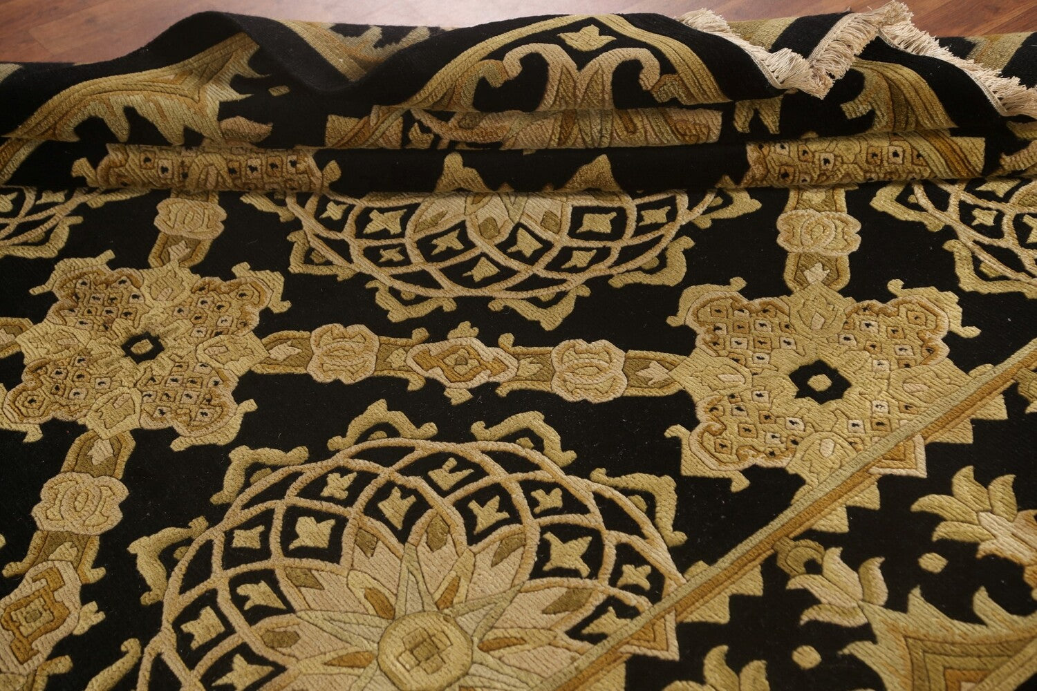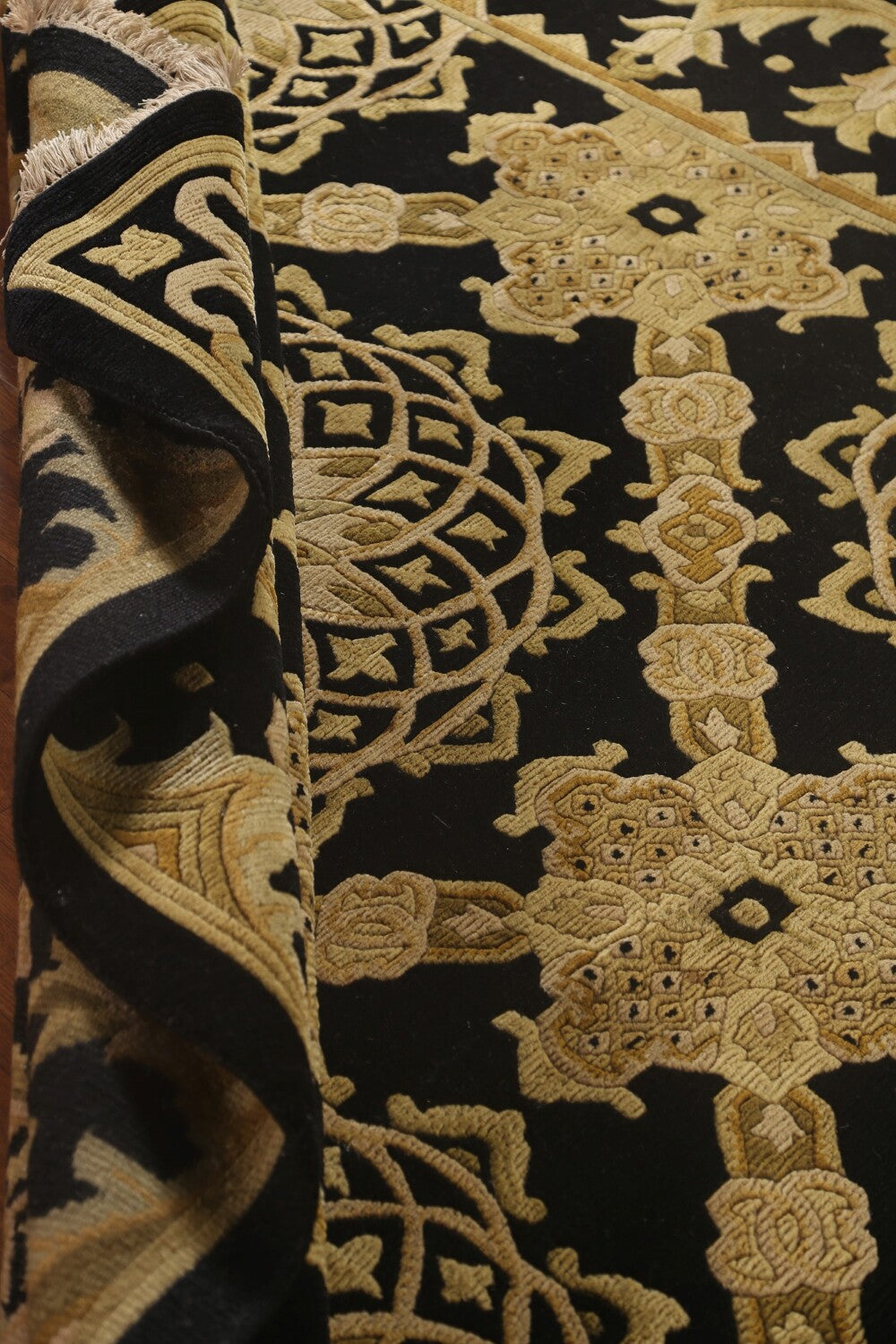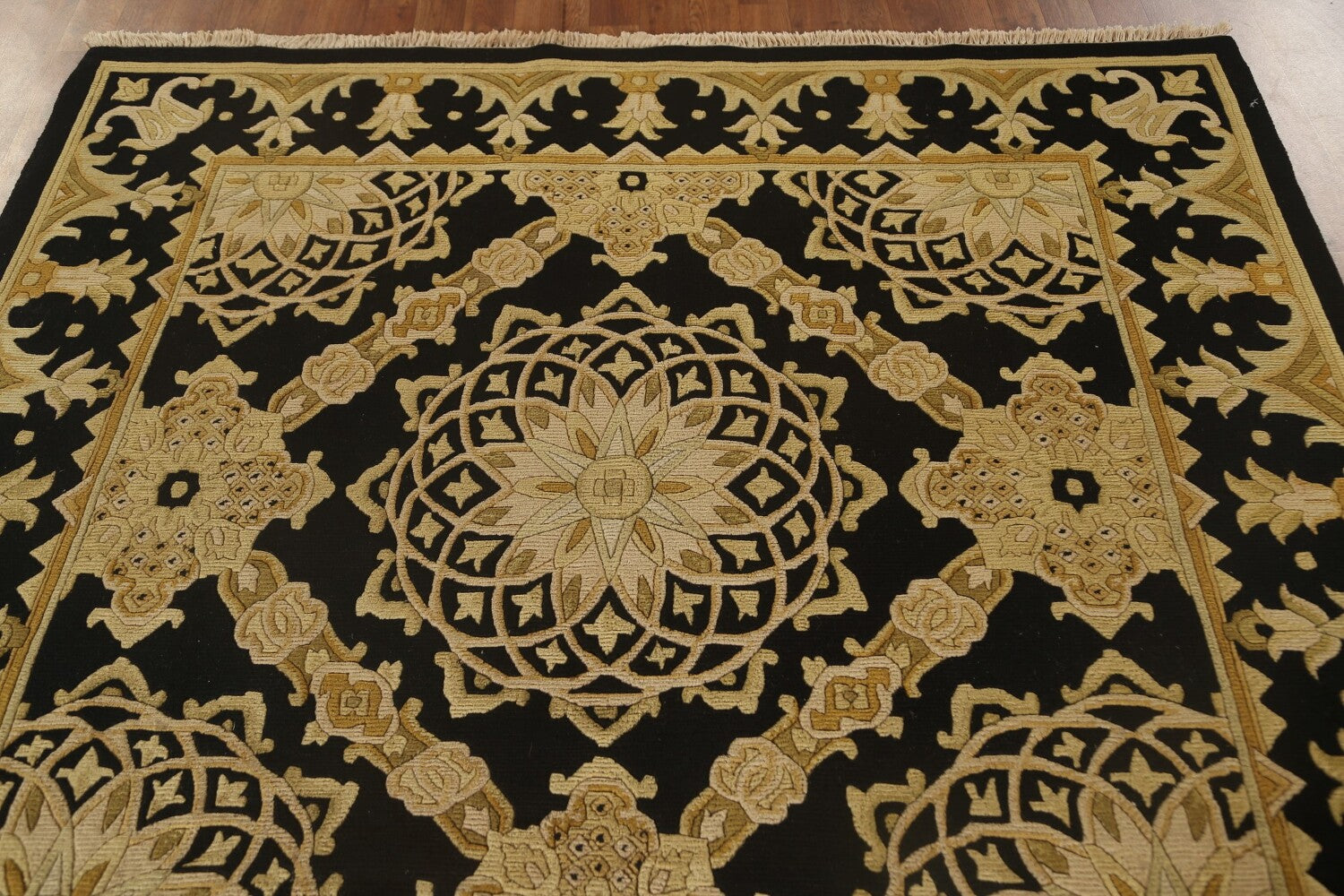 Black & Gold Agra Indian Area Rug 6x9