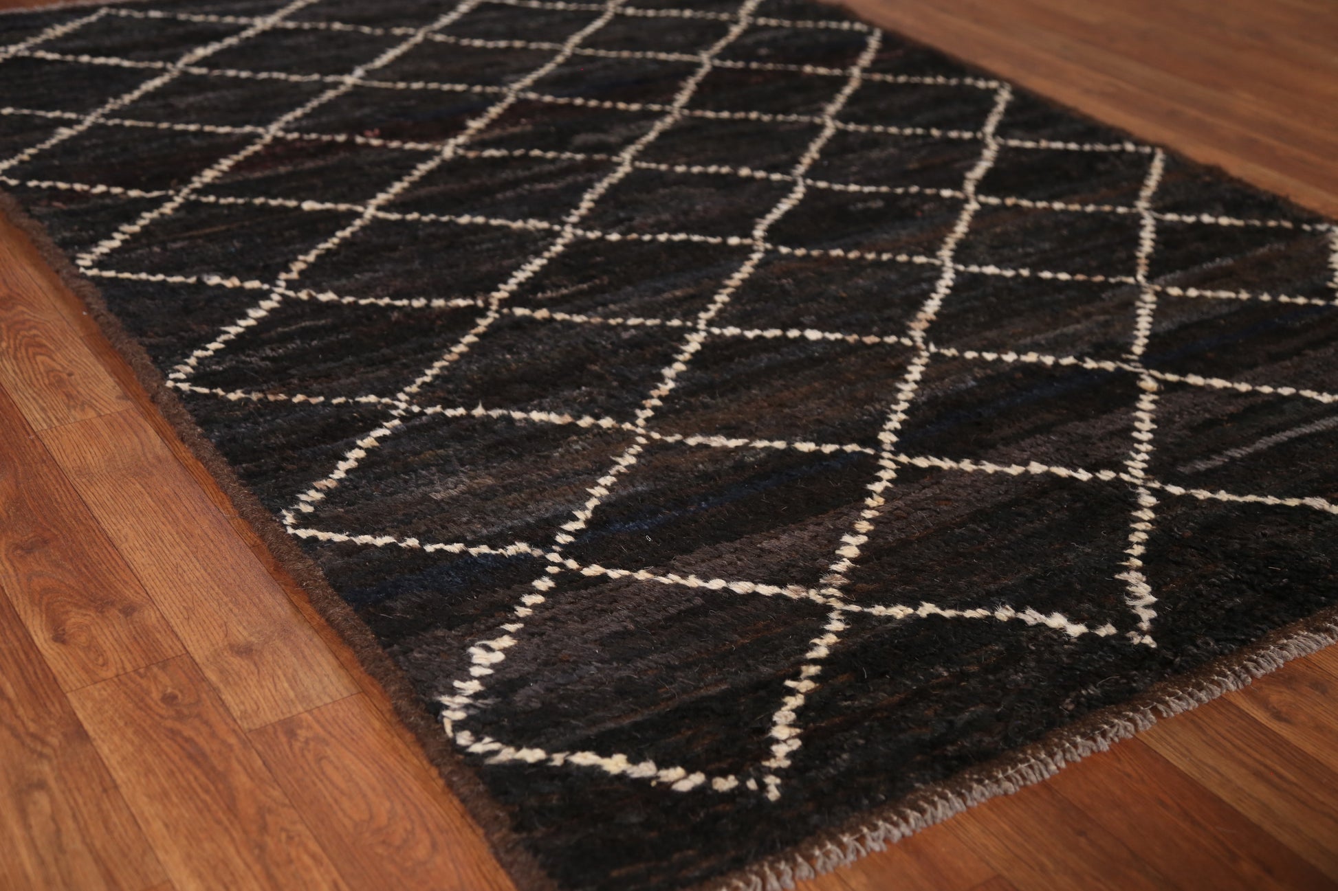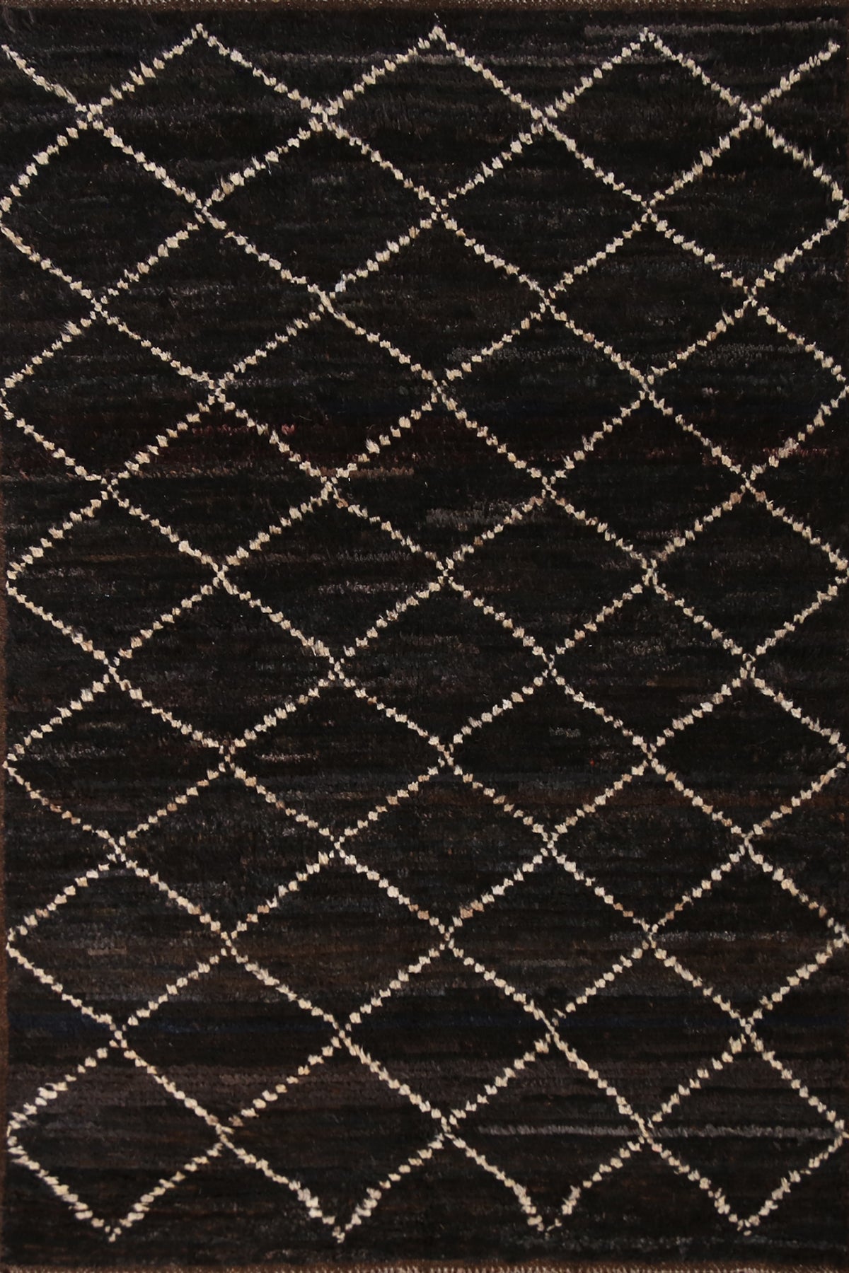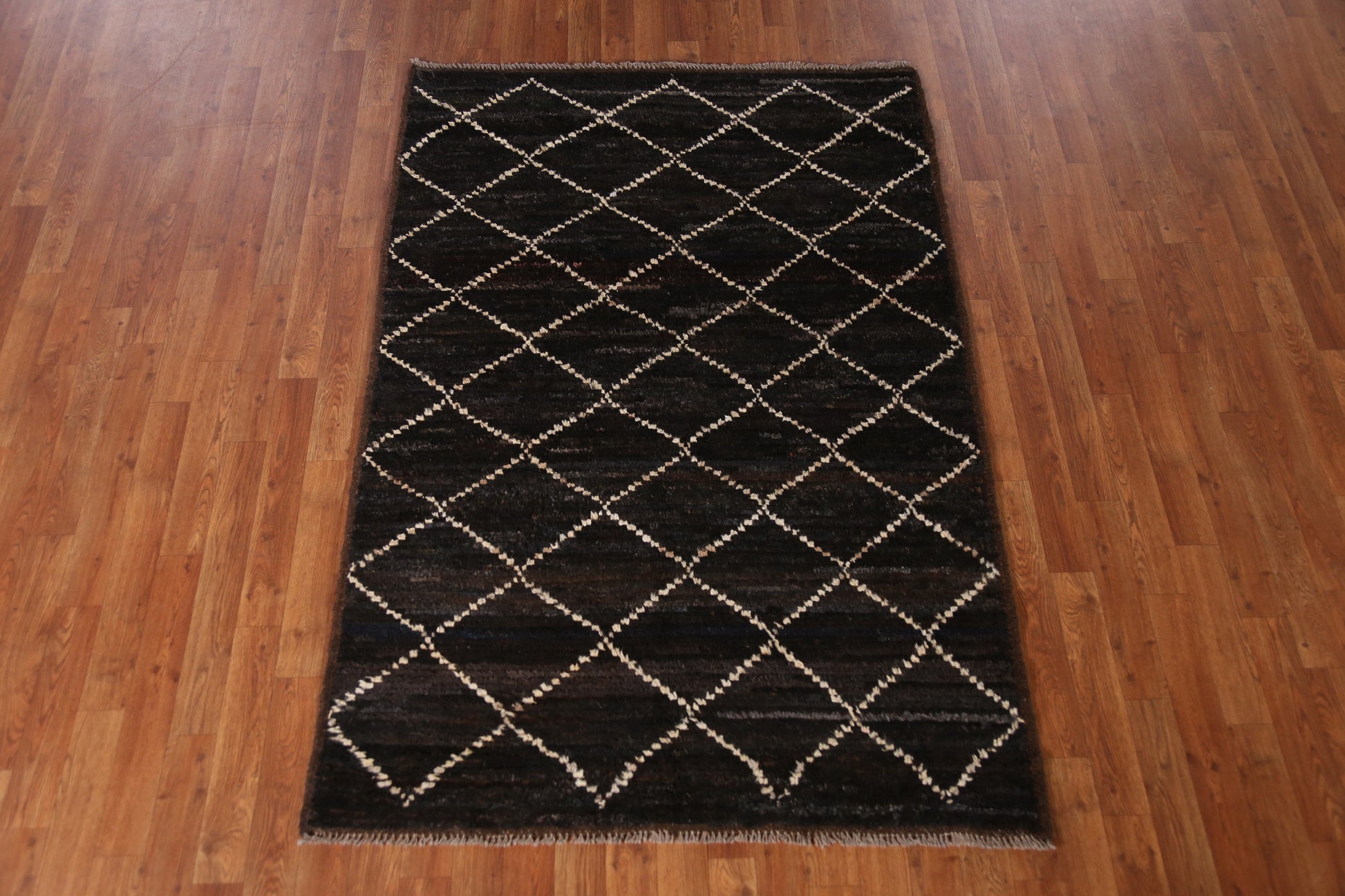 Black Trellis Wool Moroccan Oriental Rug 4x6