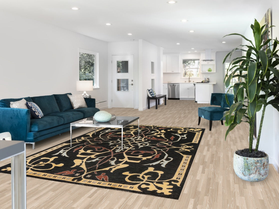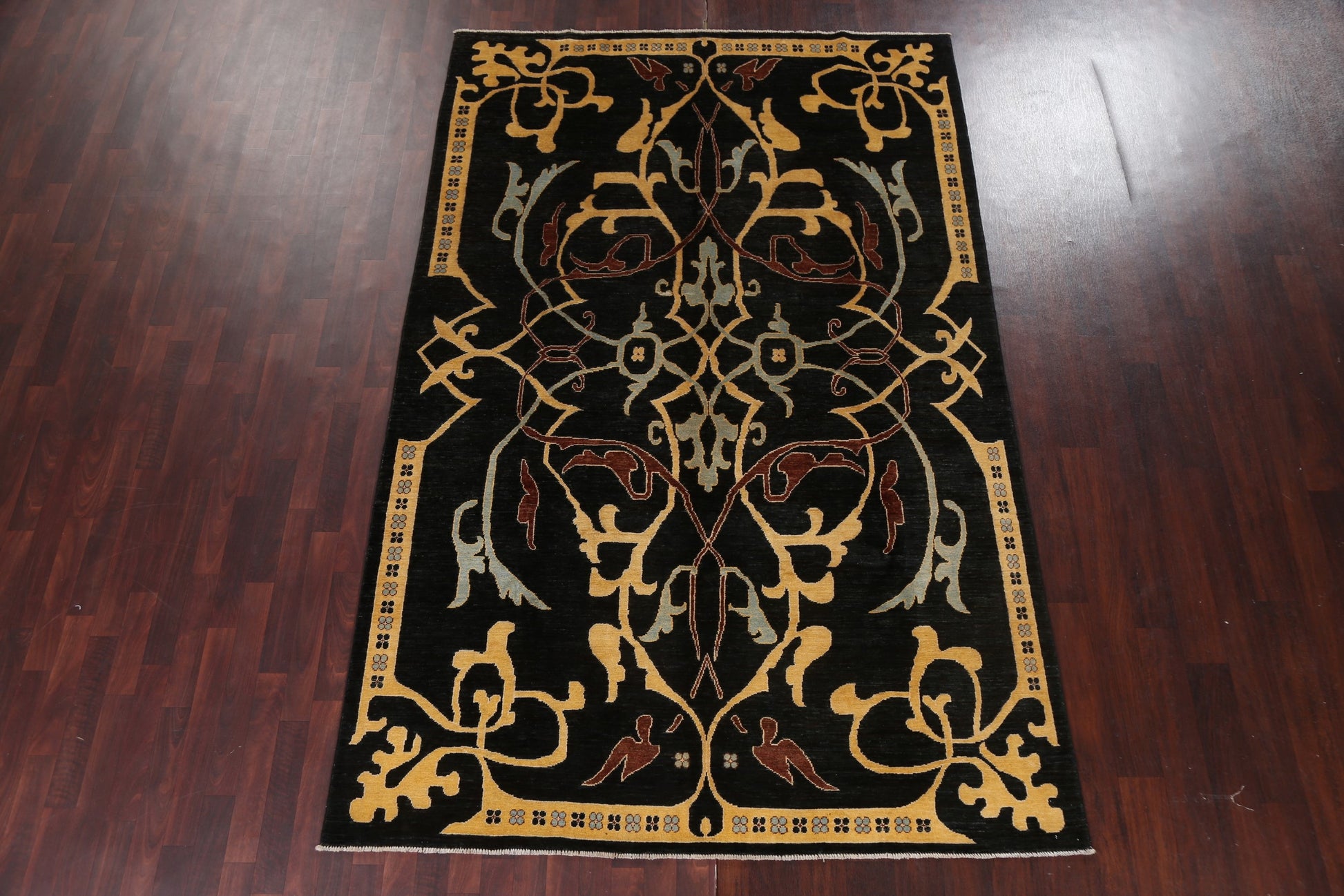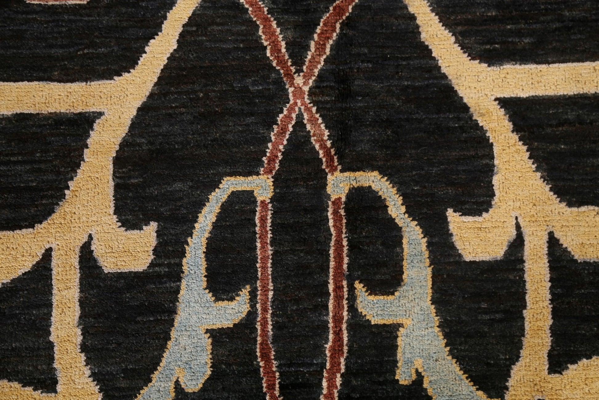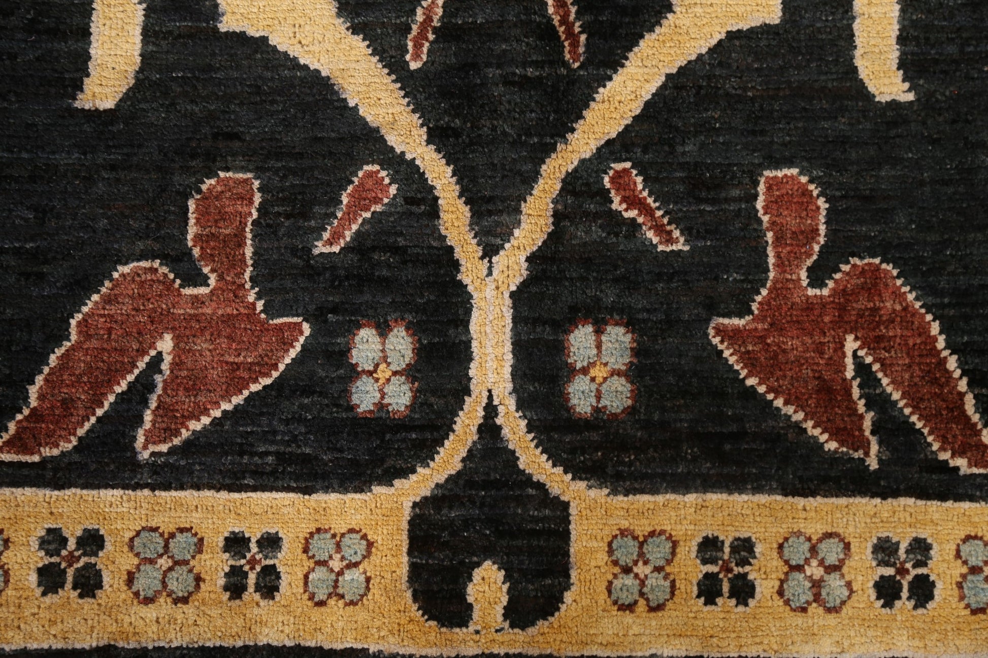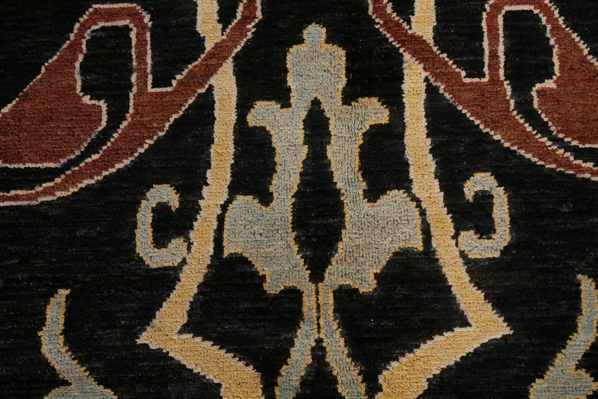 A Beautiful Genuine Pakistan Ziegler rug is Hand Knotted by skillful weavers in Pakistan with 100% Wool Material. This rug is in New, First Quality condition. dimensions are 9' 10'' X 6' 4'' in foot and 300 X 193 in centimeter. the primary color is Black.