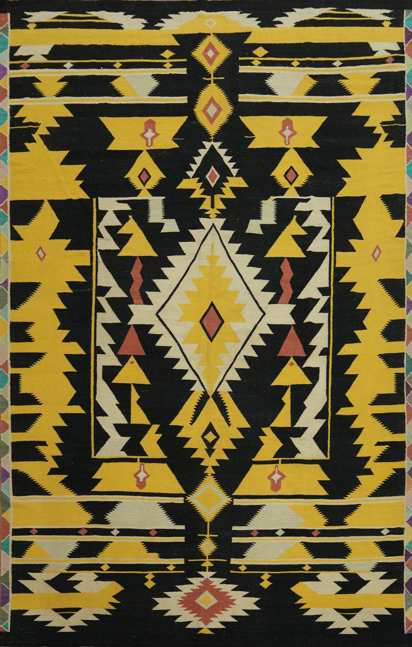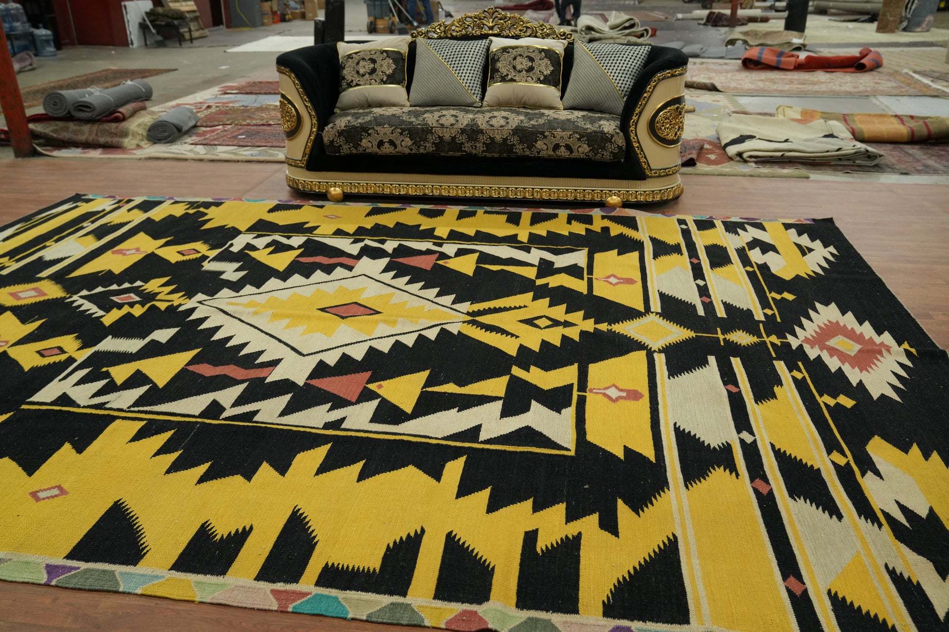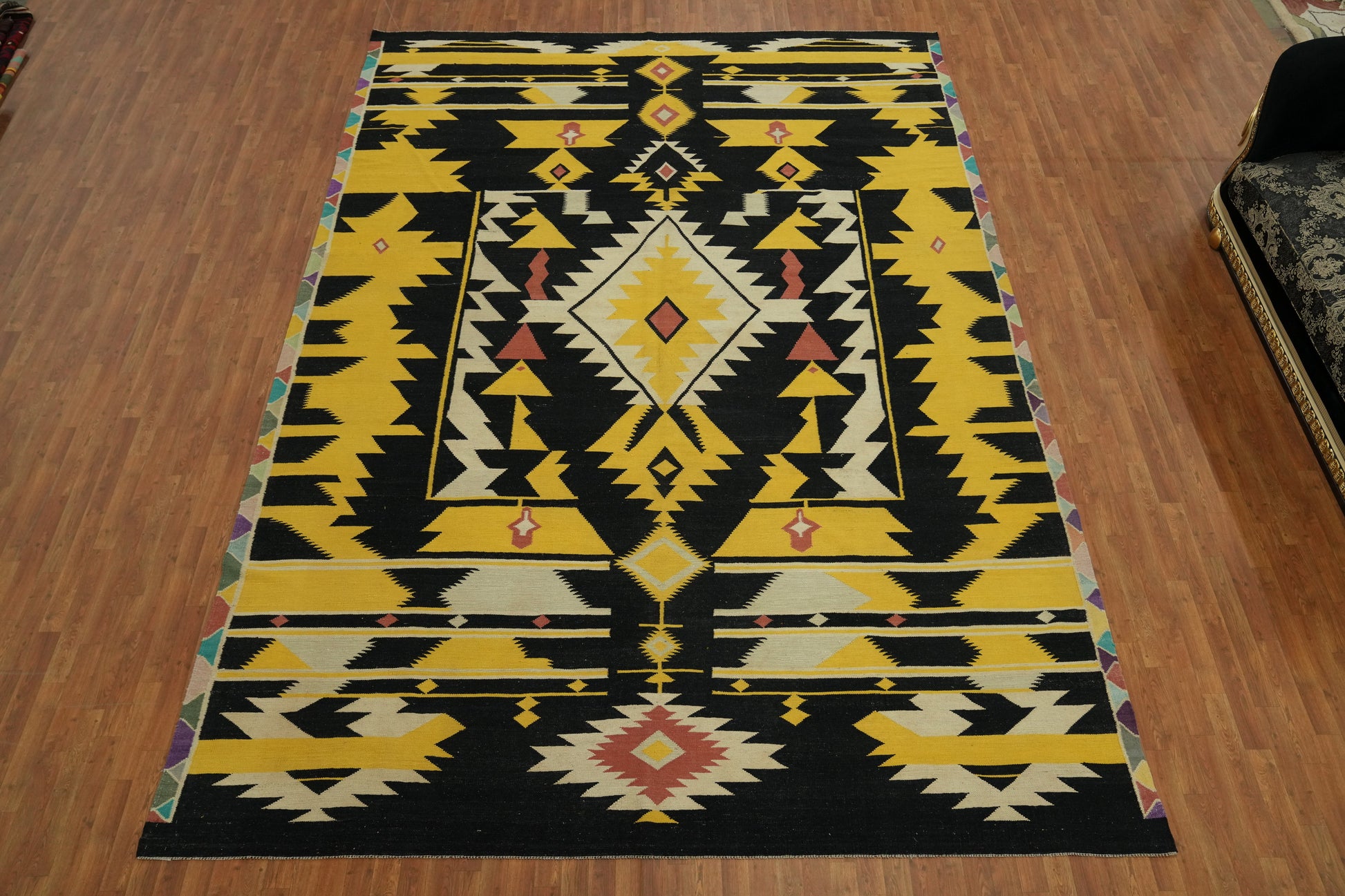 Black & Yellow Kilim Vegetable Dye Large Rug 11x15