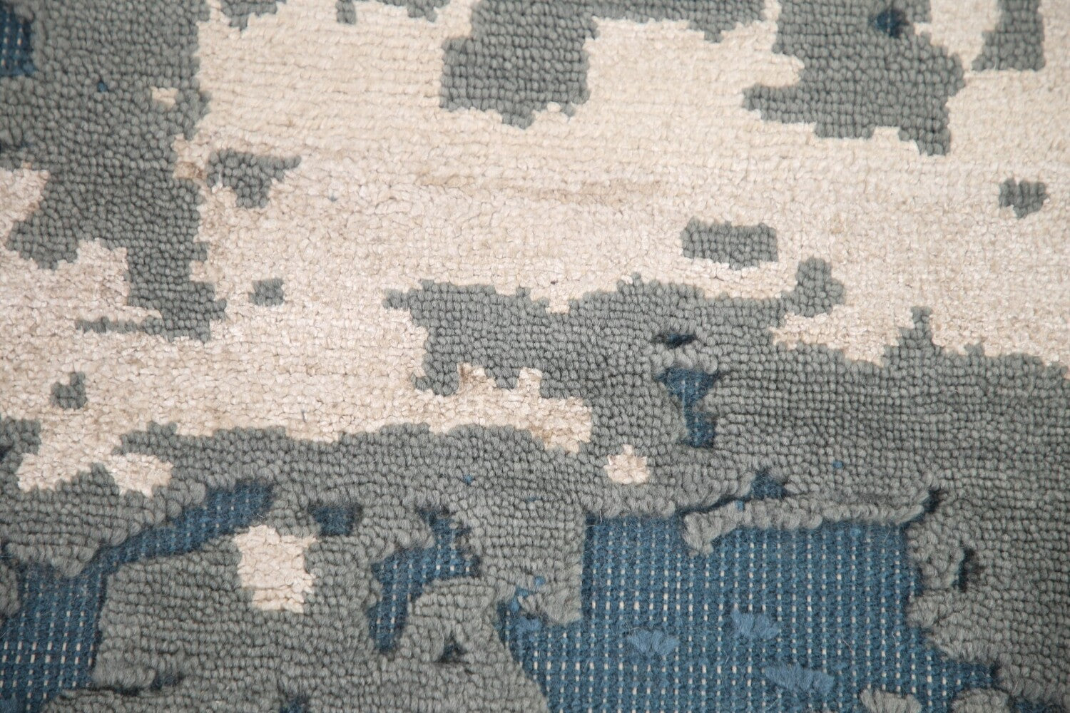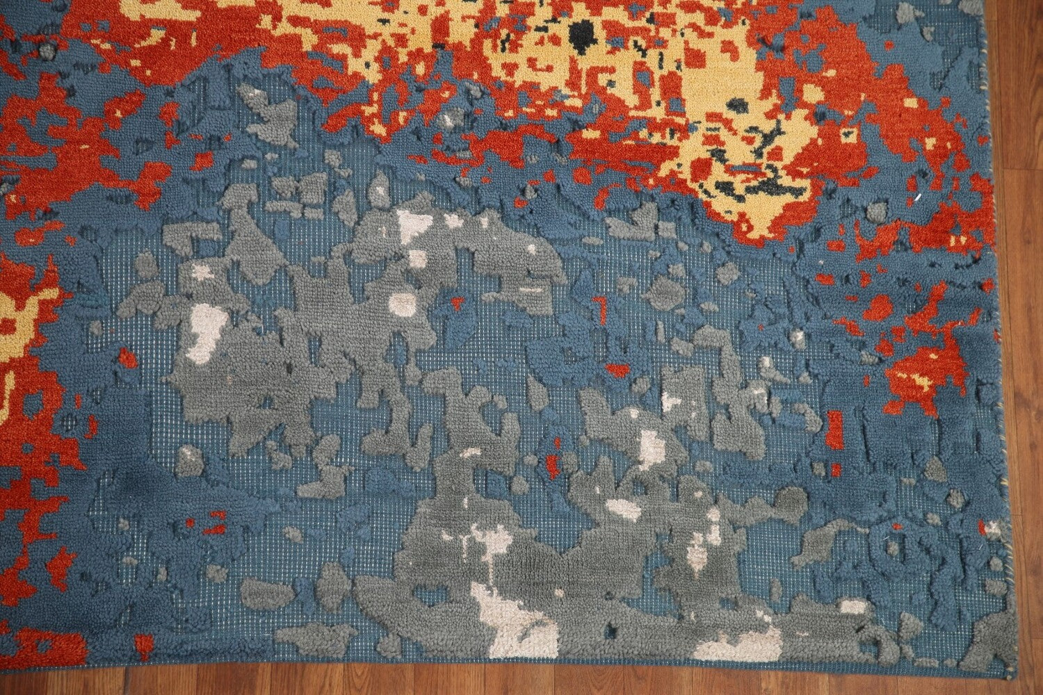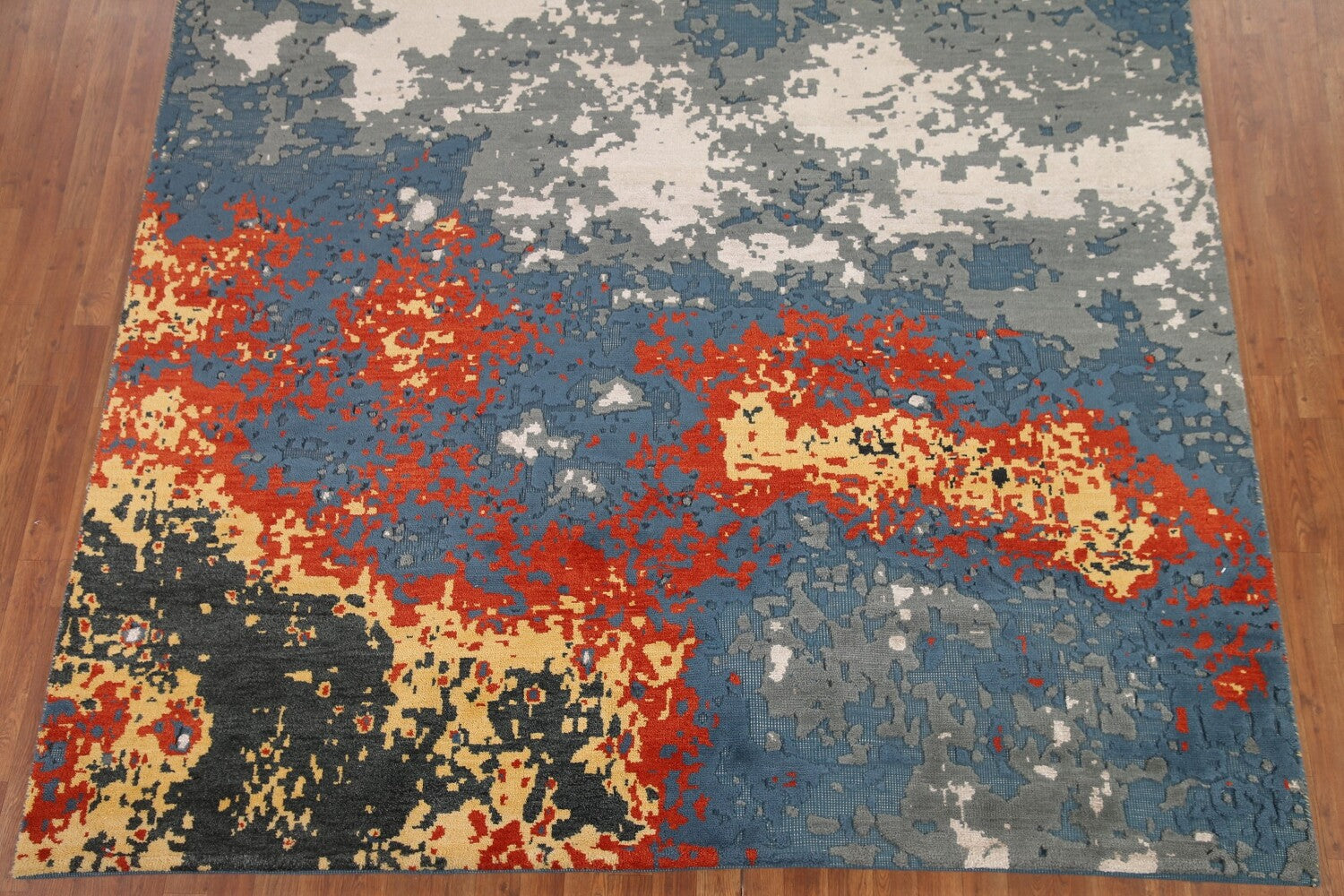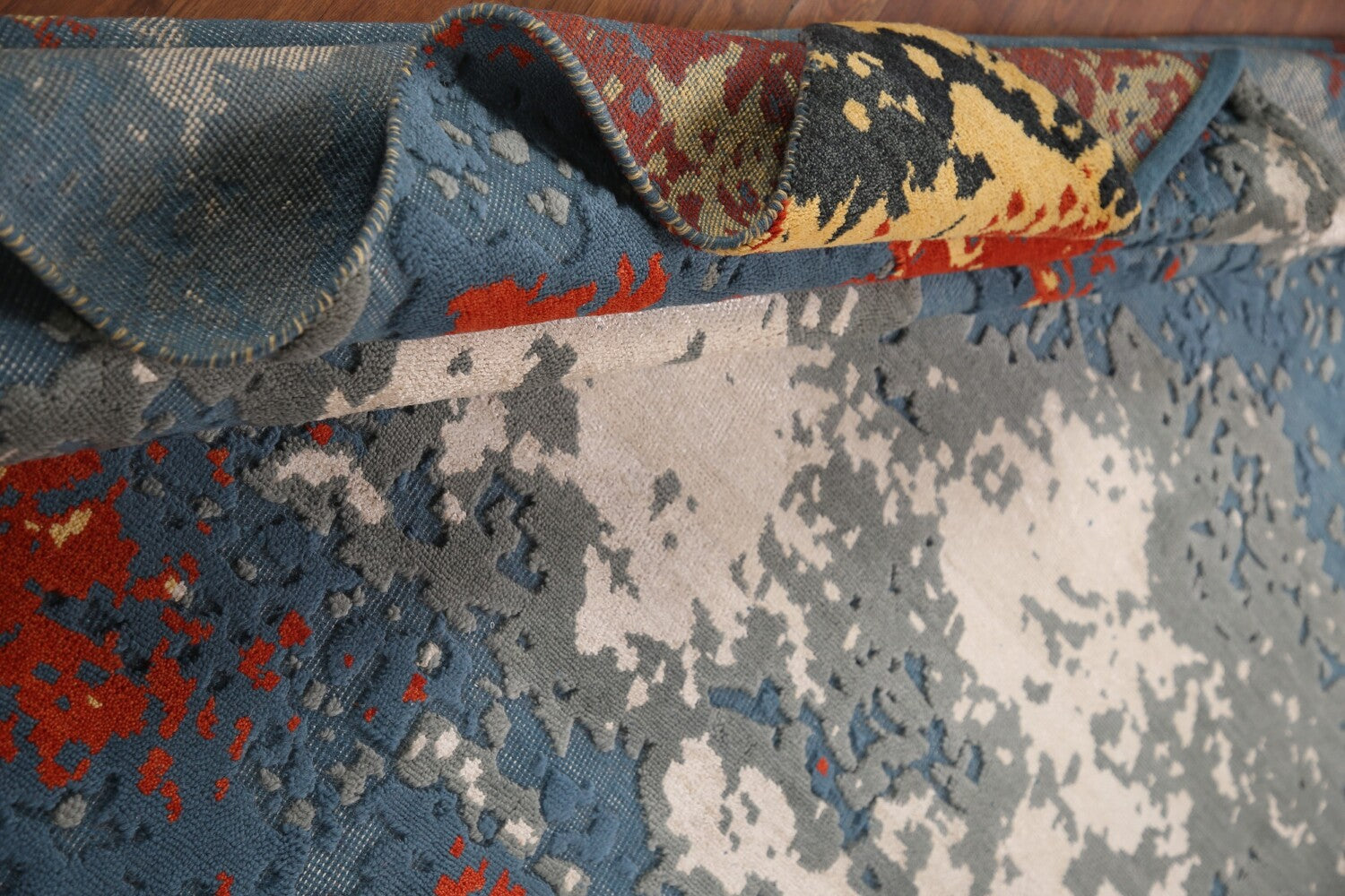 A Beautiful Genuine India Abstract rug is Hand Knotted by skillful weavers in India with 100% Wool Material. This rug is in New, First Quality condition. dimensions are 9' 11'' X 8' 1'' in foot and 302 X 246 in centimeter. the primary color is Navy Blue & Blues.