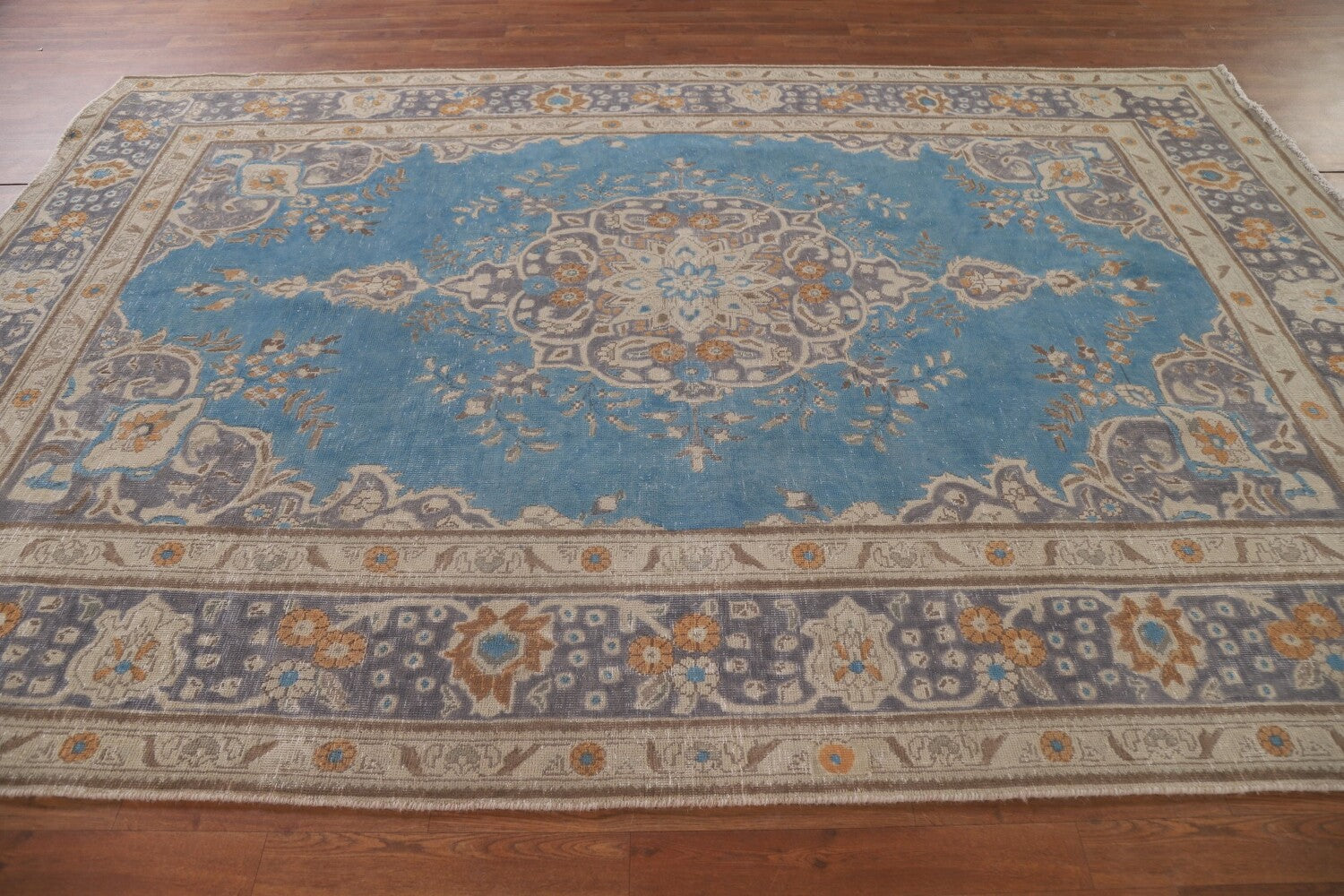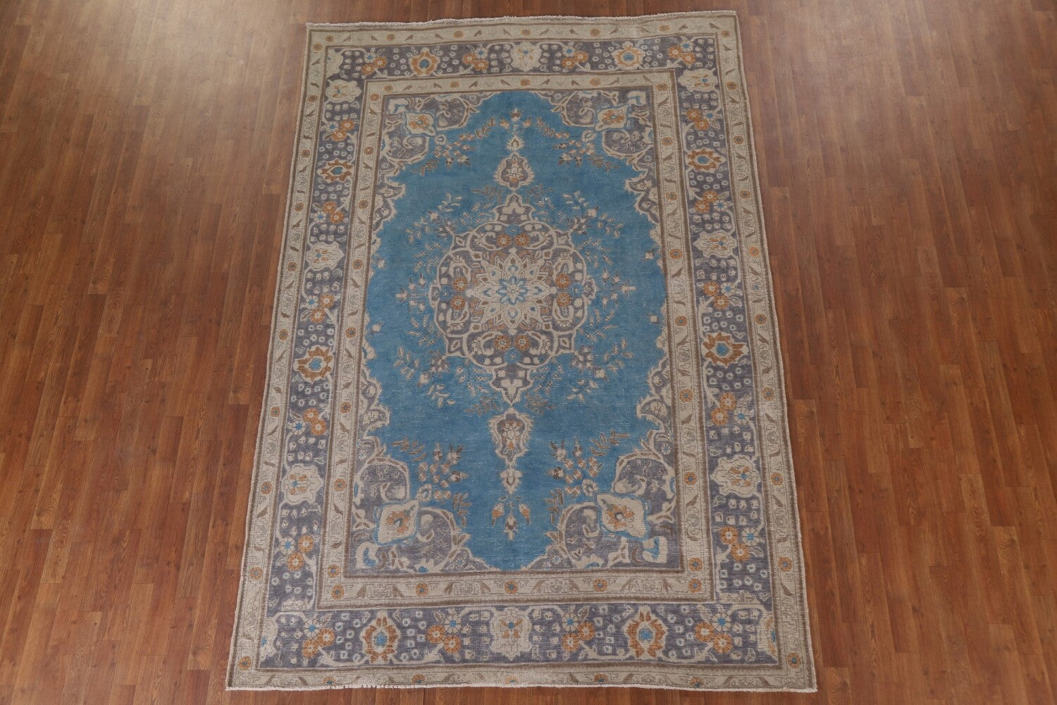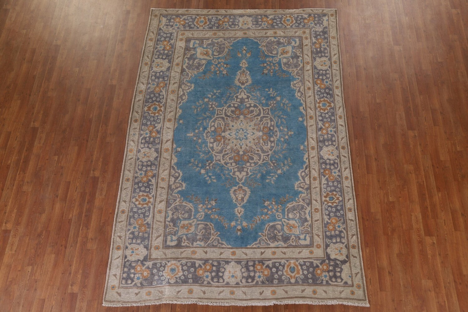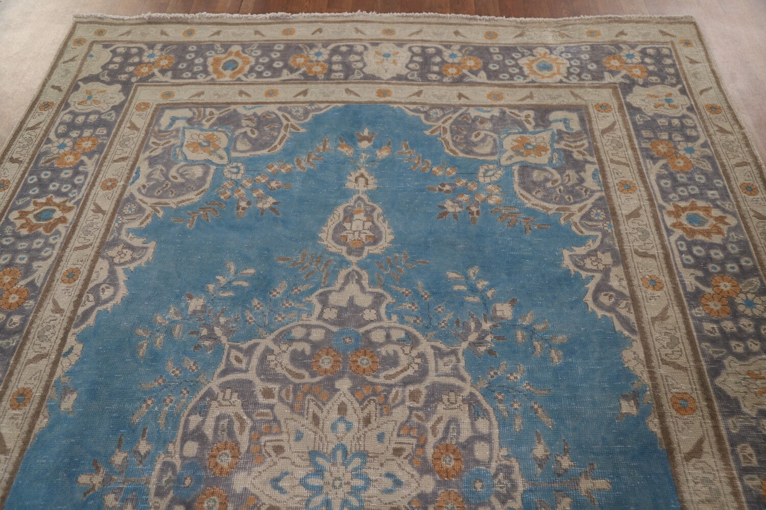 Blue Distressed Tabriz Persian Area Rug 7x10