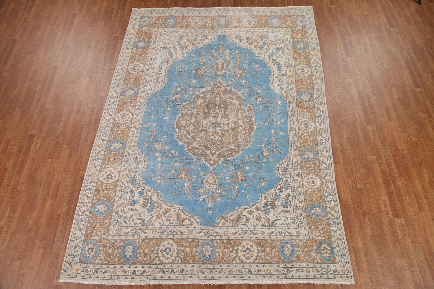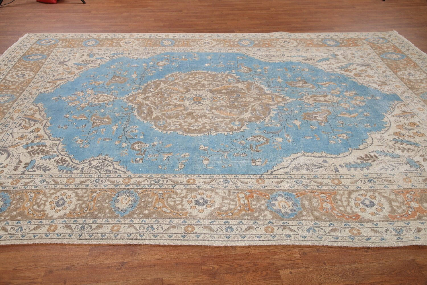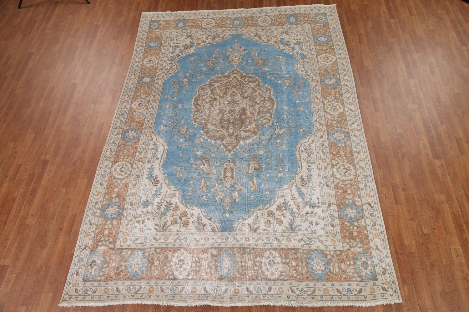 Blue Distressed Tabriz Persian Area Rug 8x11