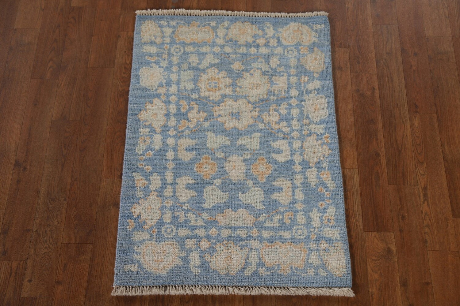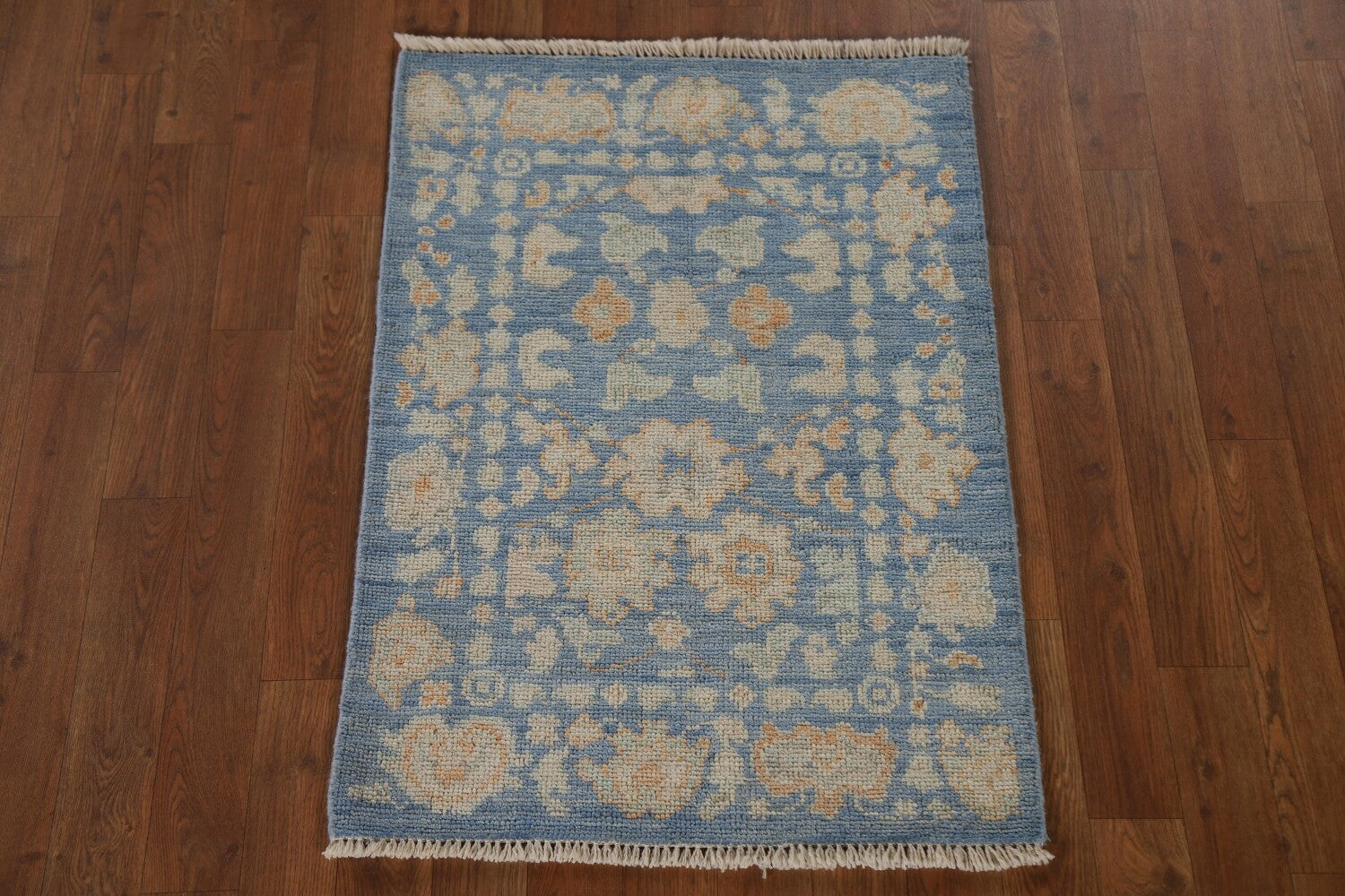 Blue Floral Oushak Vegetable Dye Accent Rug 2x3