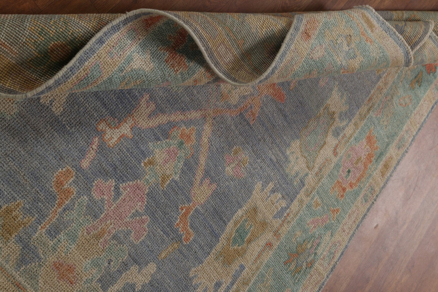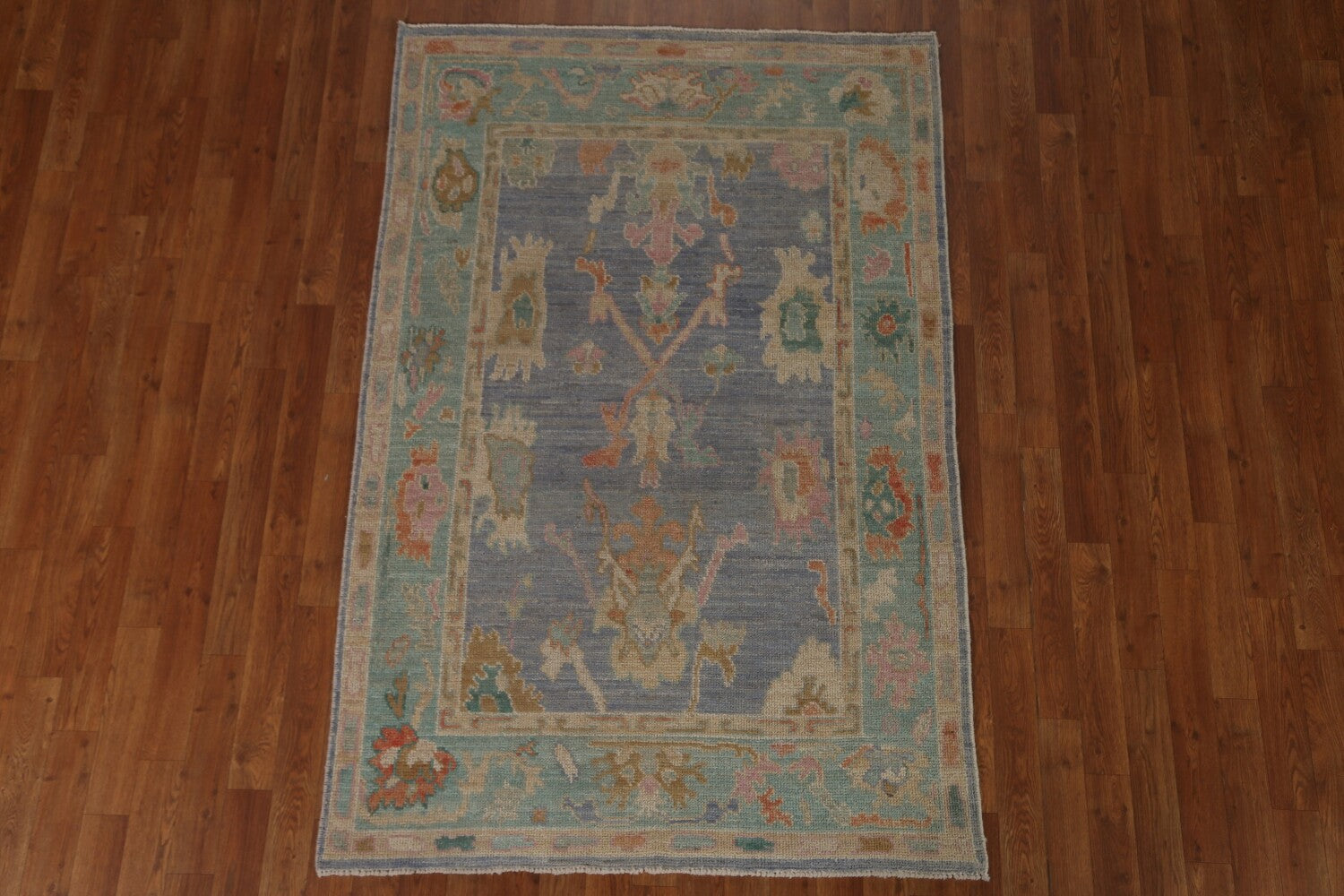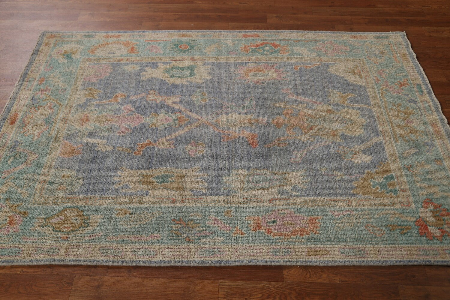 Blue Floral Oushak Vegetable Dye Area Rug 4x6
