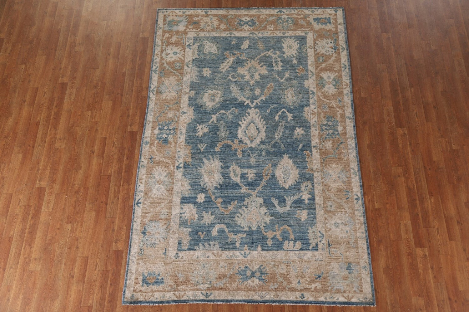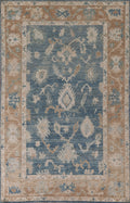 Blue Floral Oushak Vegetable Dye Area Rug 6x9