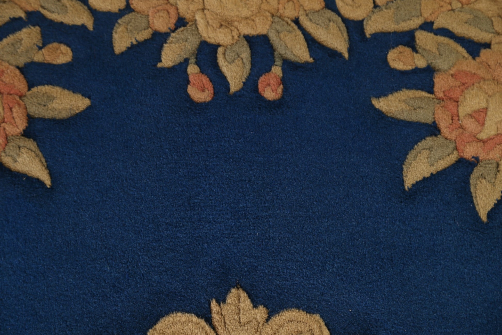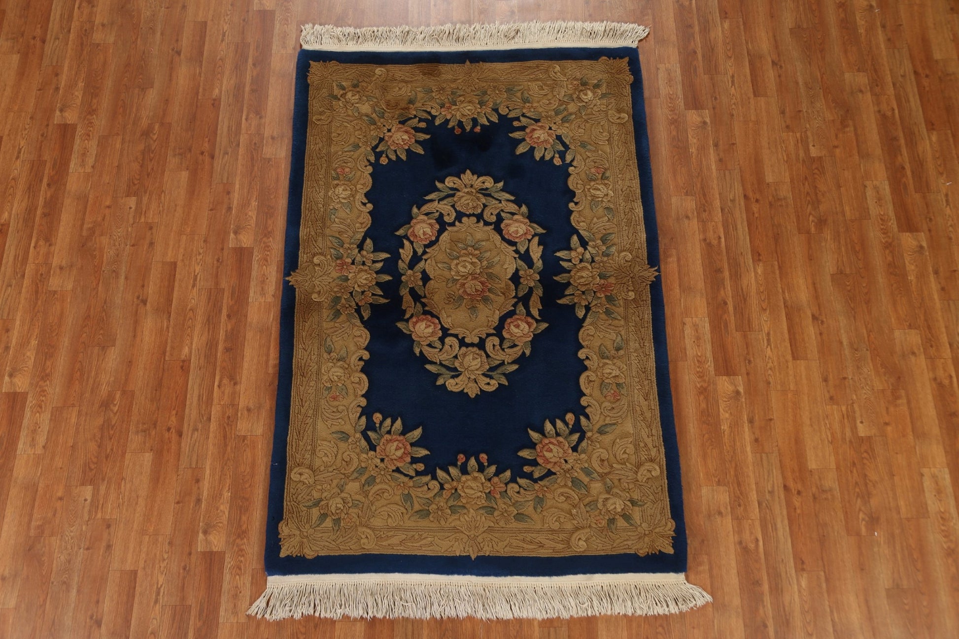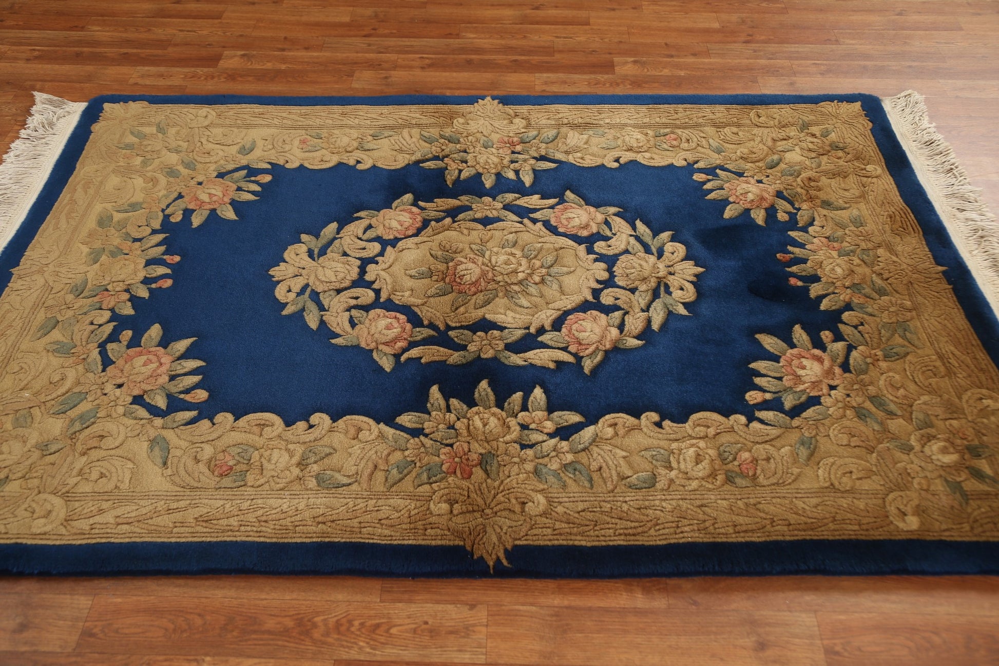 A Beautiful Genuine China Peking rug is Hand Knotted by skillful weavers in China with 100% Wool Material. This rug is in Excellent condition. dimensions are 6' 3'' X 4' 2'' in foot and 191 X 127 in centimeter. the primary color is Navy Blue & Blues.