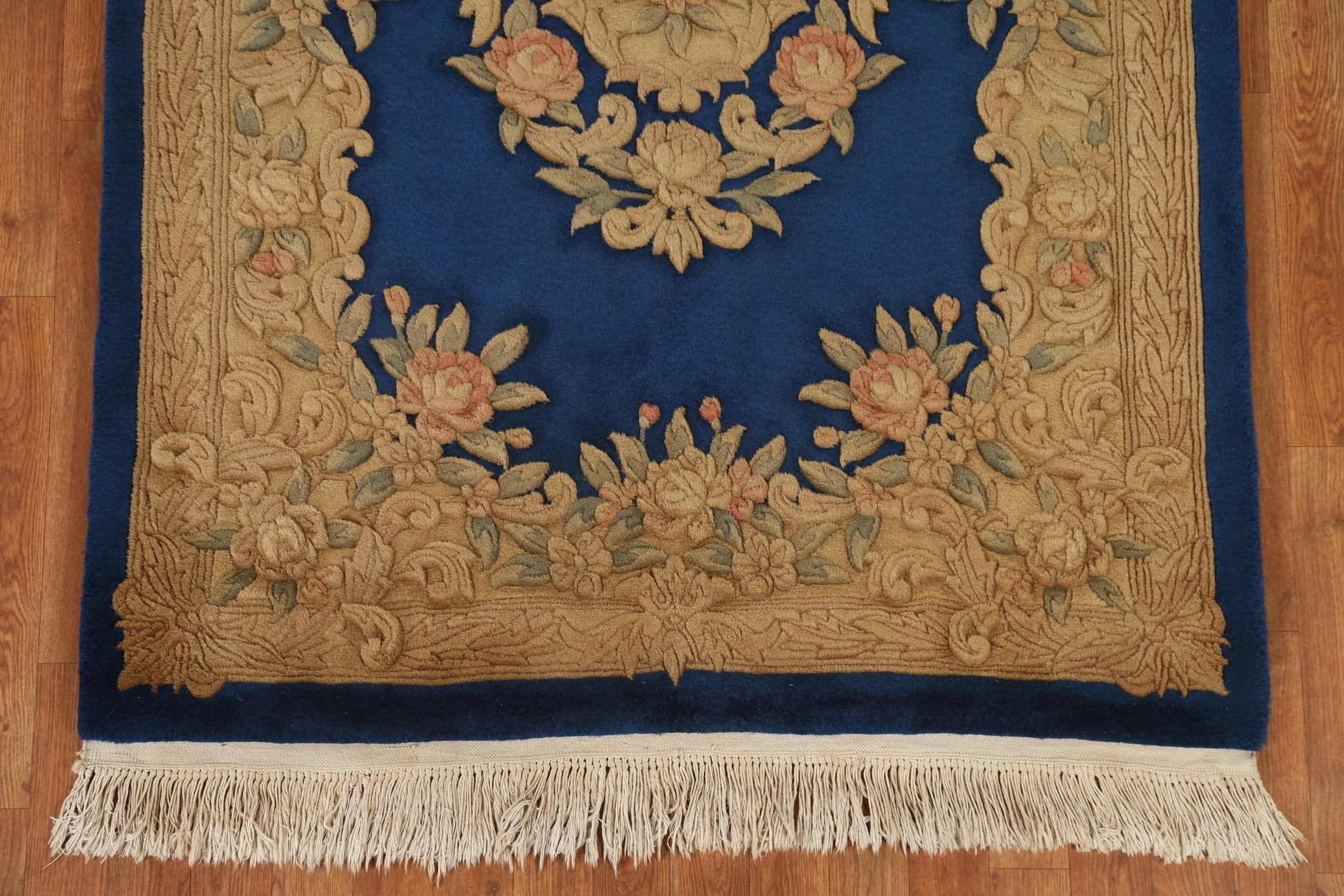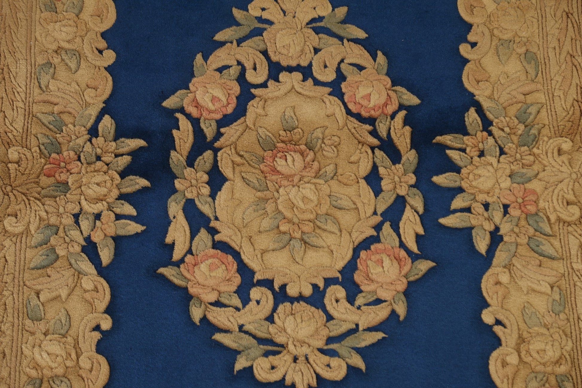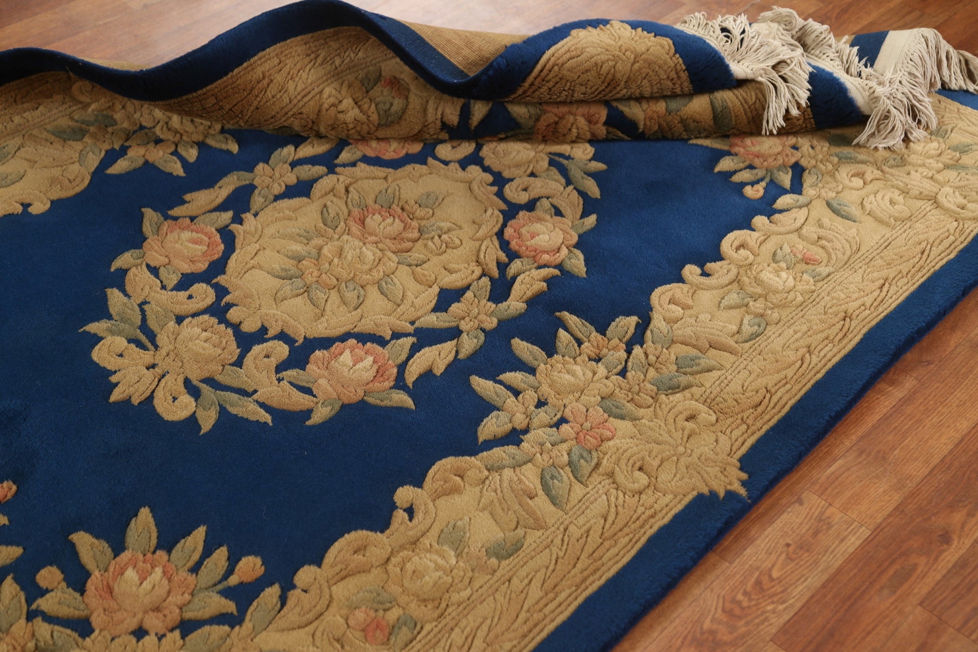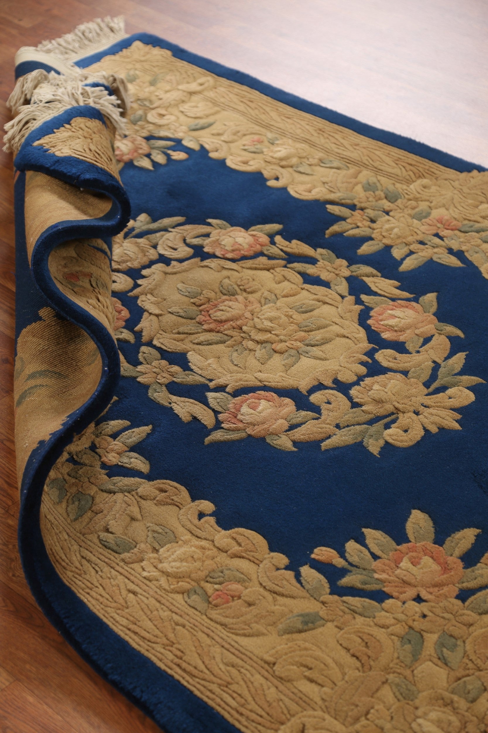 A Beautiful Genuine China Peking rug is Hand Knotted by skillful weavers in China with 100% Wool Material. This rug is in Excellent condition. dimensions are 6' 3'' X 4' 2'' in foot and 191 X 127 in centimeter. the primary color is Navy Blue & Blues.