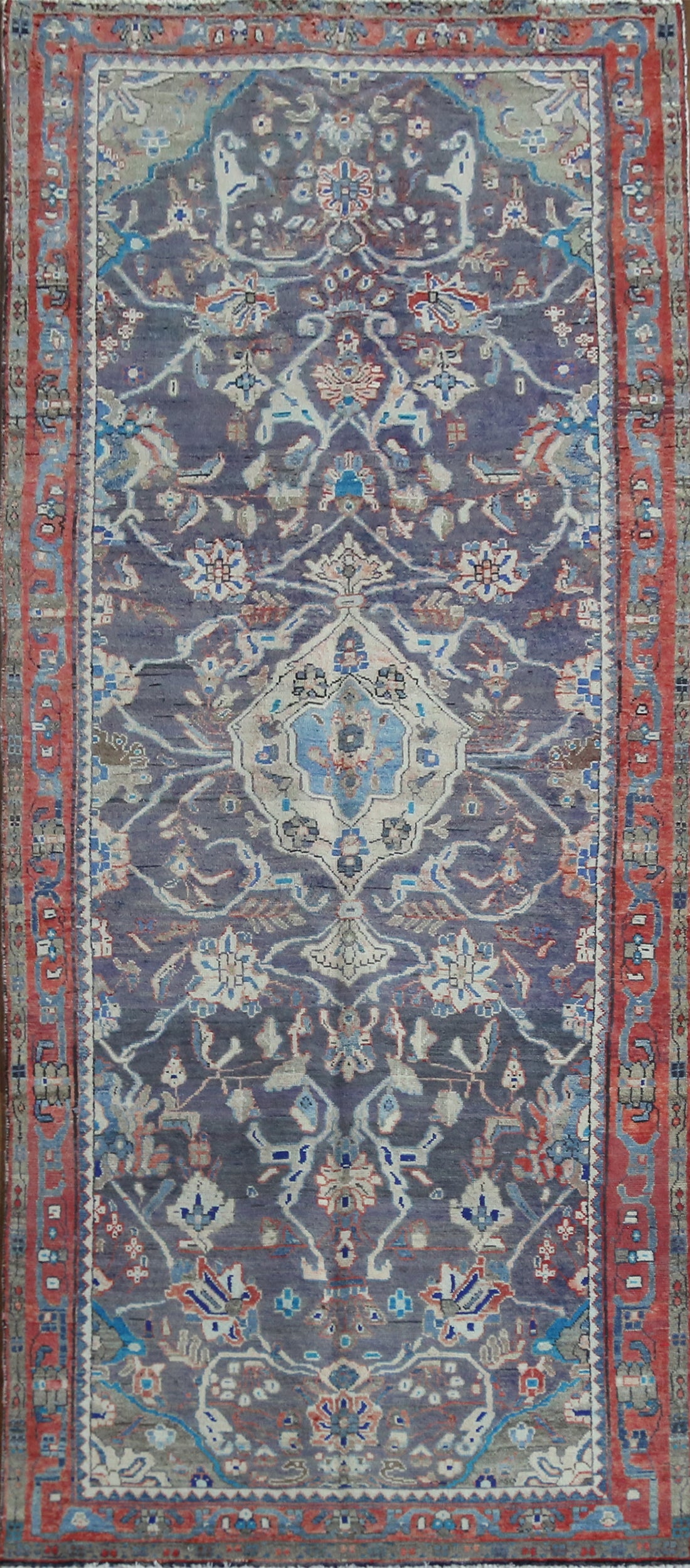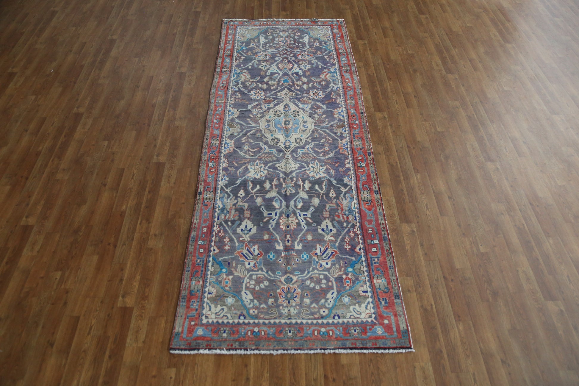 Blue Floral Sarouk Persian Runner Rug 4x10