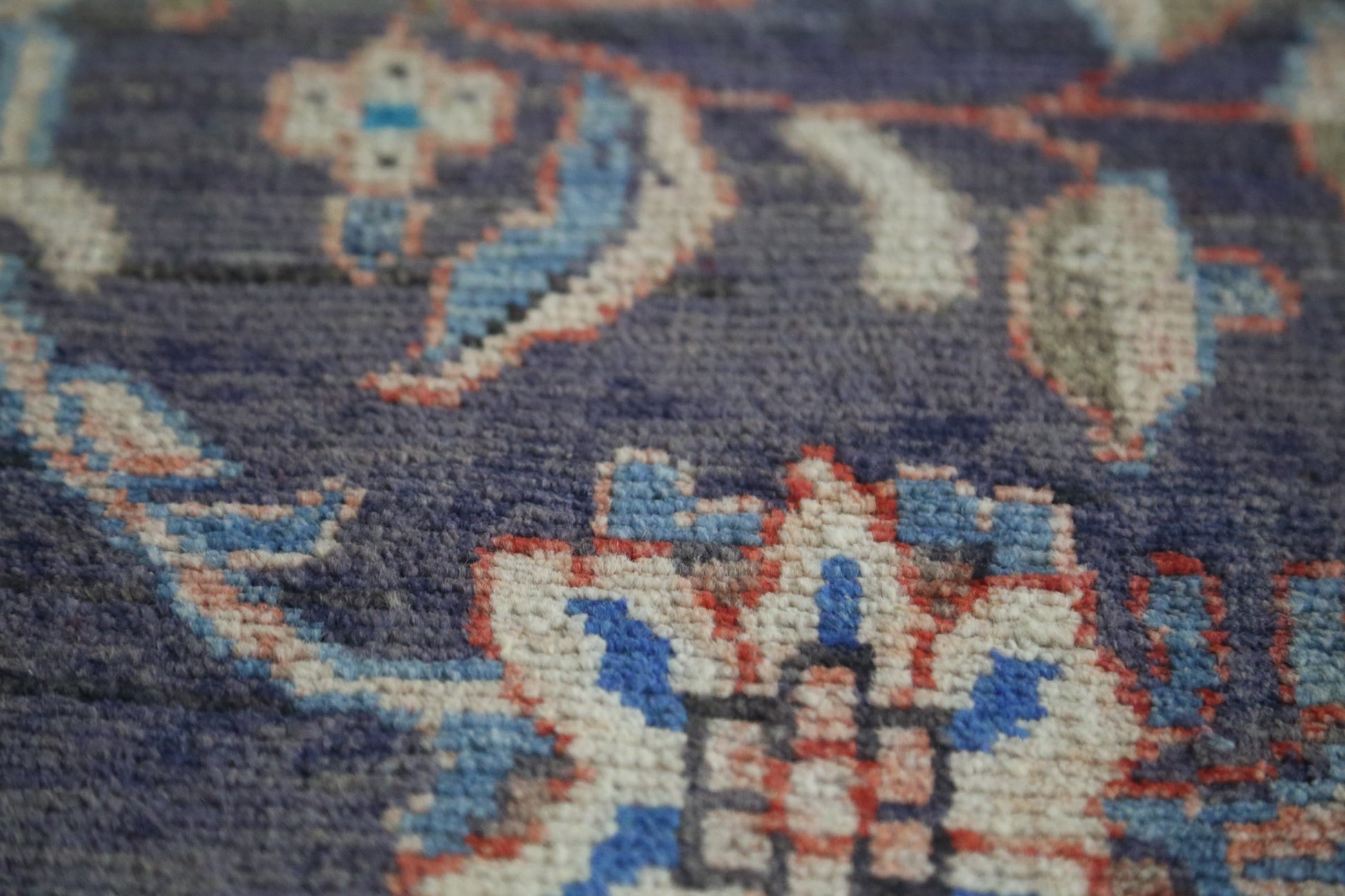 A Beautiful Genuine Persia ( Persia ) Sarouk rug is Hand Knotted by skillful weavers in Persia ( Persia ) with 100% Wool Material. This rug is in Very Good (Low Pile-Abrash) condition. dimensions are 10' 0'' X 3' 8'' in foot and 305 X 112 in centimeter. the primary color is Navy Blue & Blues.