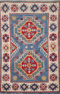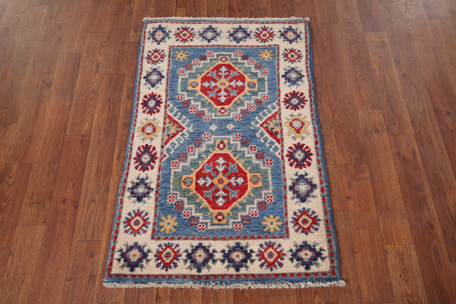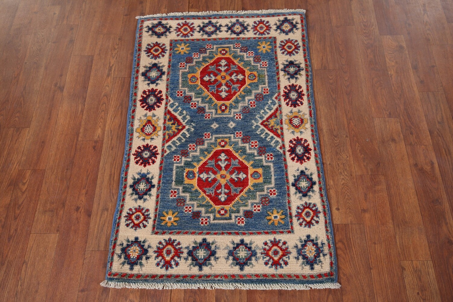 Blue Geometric Kazak Handmade Foyer Rug 2x3