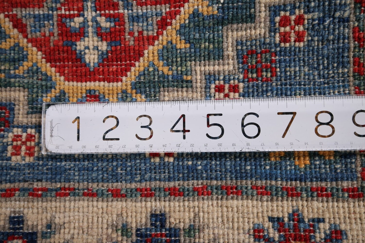 A Beautiful Genuine Pakistan Kazak rug is Hand Knotted by skillful weavers in Pakistan with 100% Wool Material. This rug is in New, First Quality condition. dimensions are 3' 2'' X 2' 0'' in foot and 97 X 61 in centimeter. the primary color is Navy Blue & Blues.