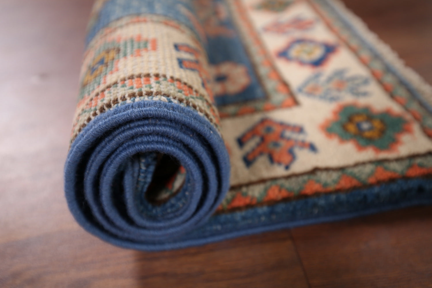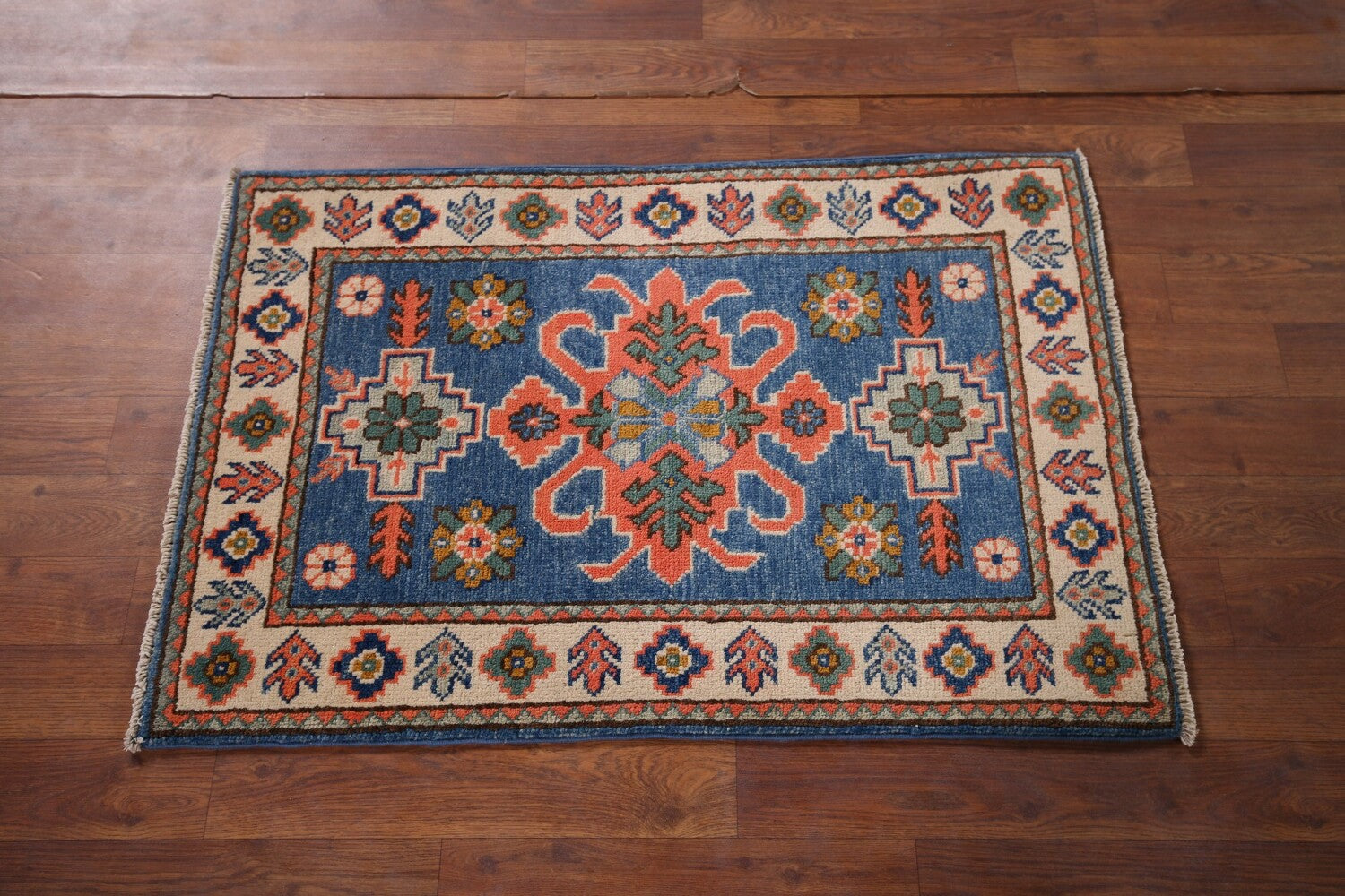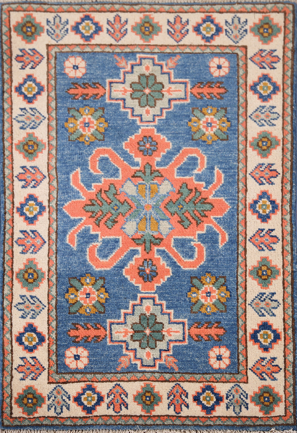 Blue Geometric Kazak Oriental Accent Rug 2x3