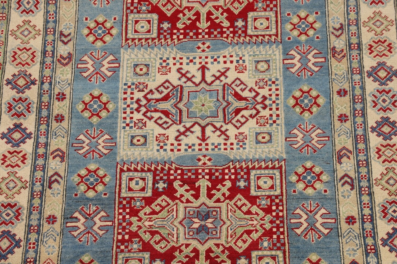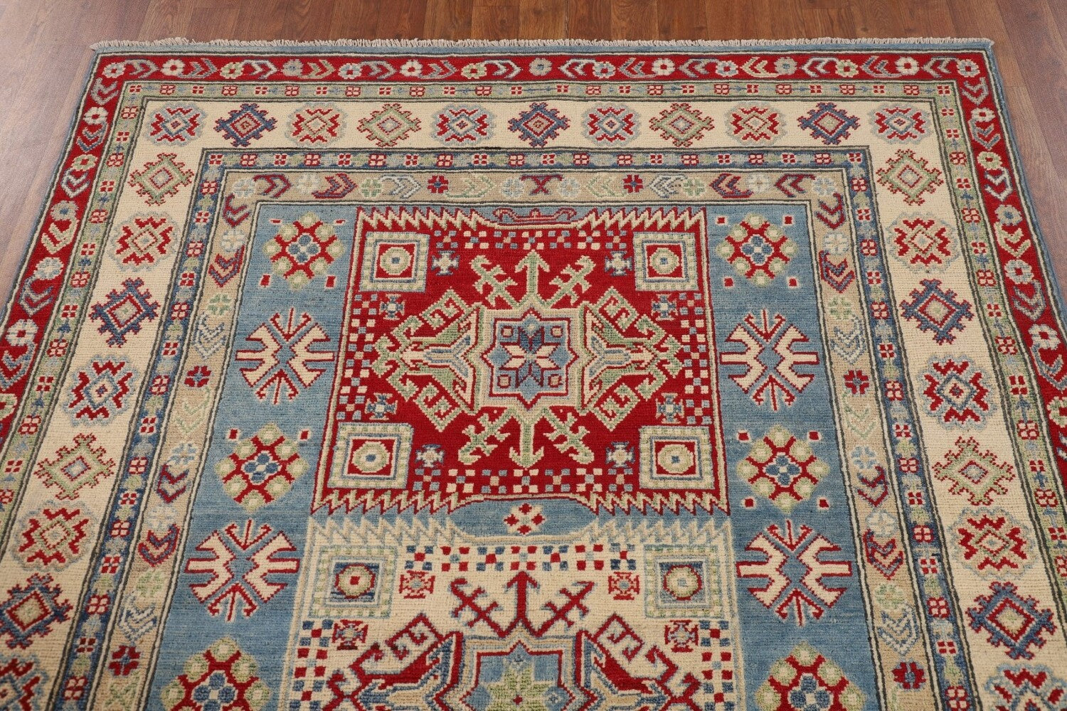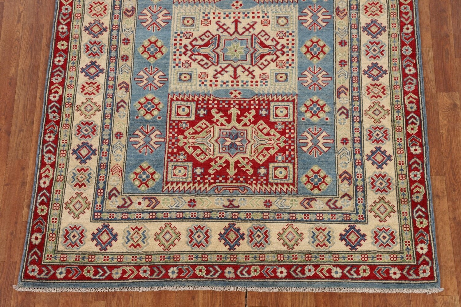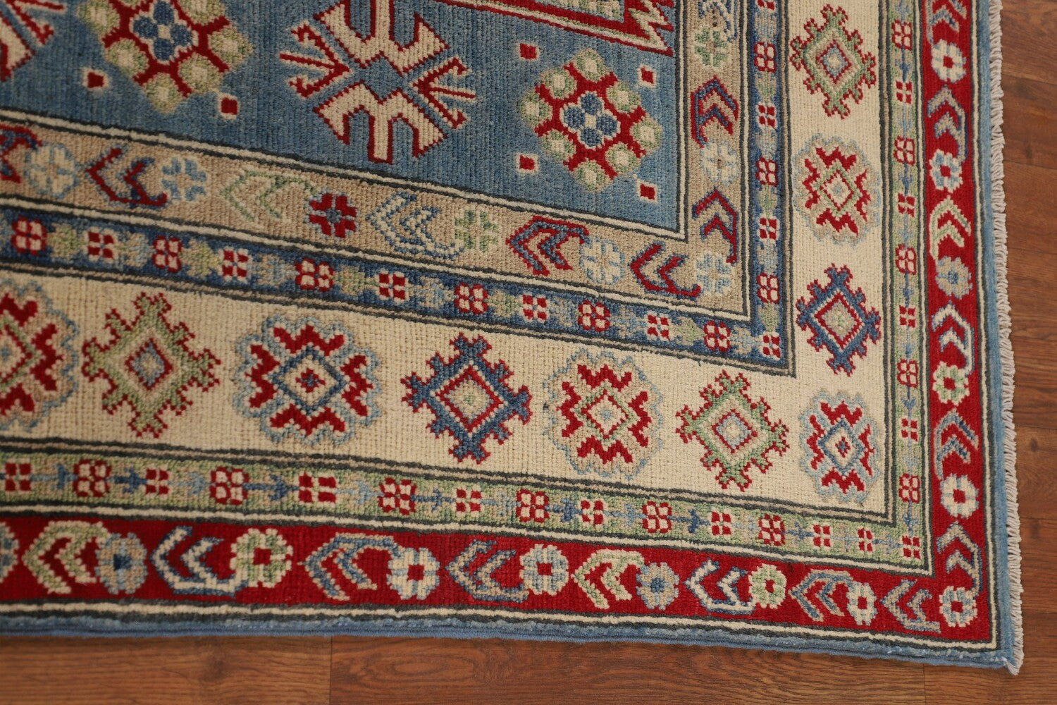 Blue Geometric Kazak Oriental Accent Rug 5x7