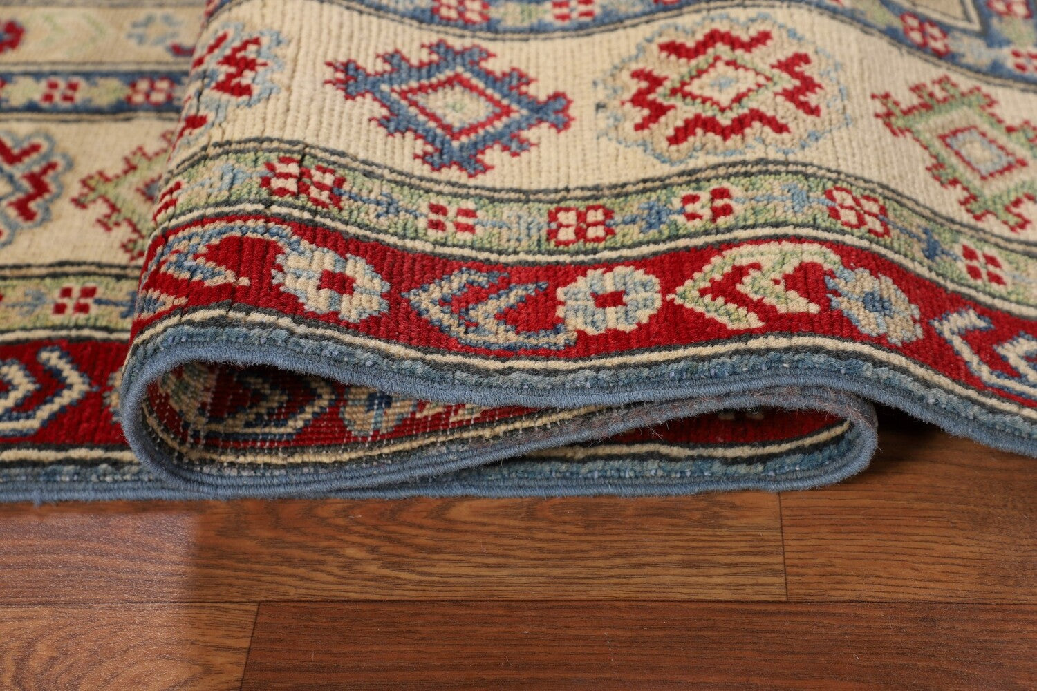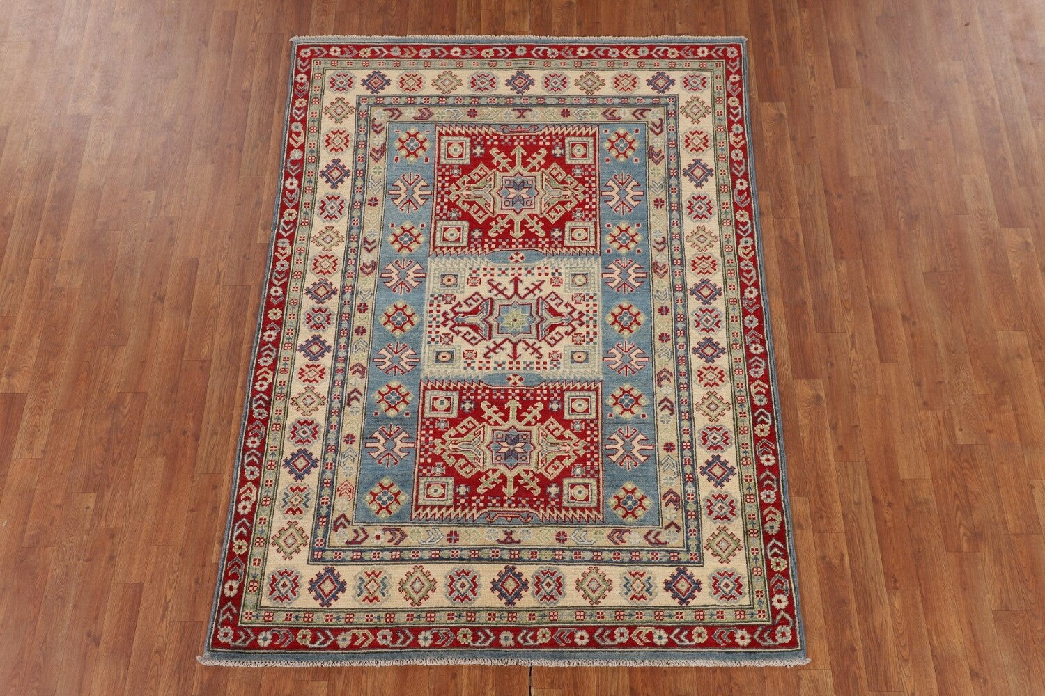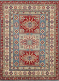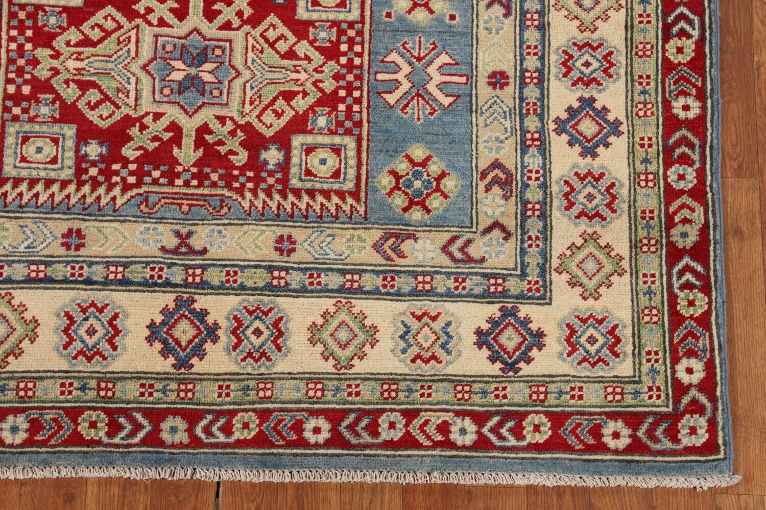 Blue Geometric Kazak Oriental Accent Rug 5x7