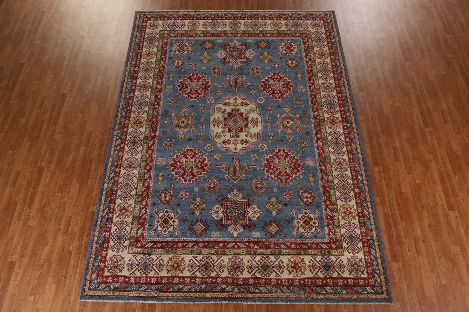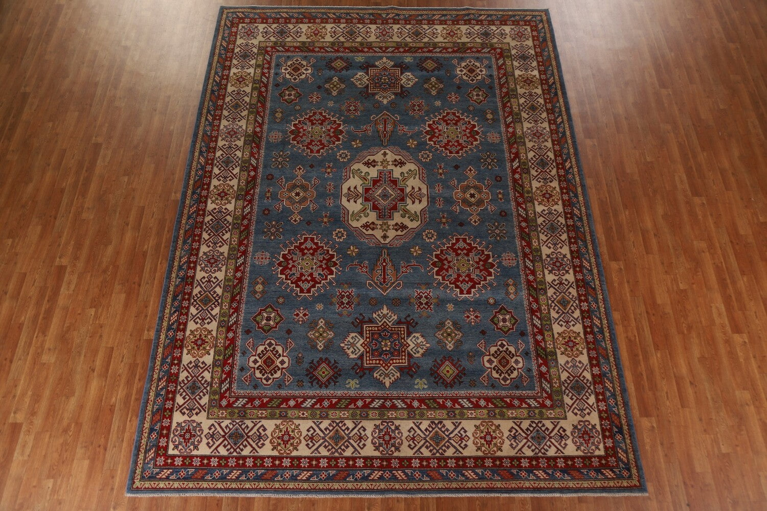 Blue Geometric Kazak Oriental Area Rug 9x13