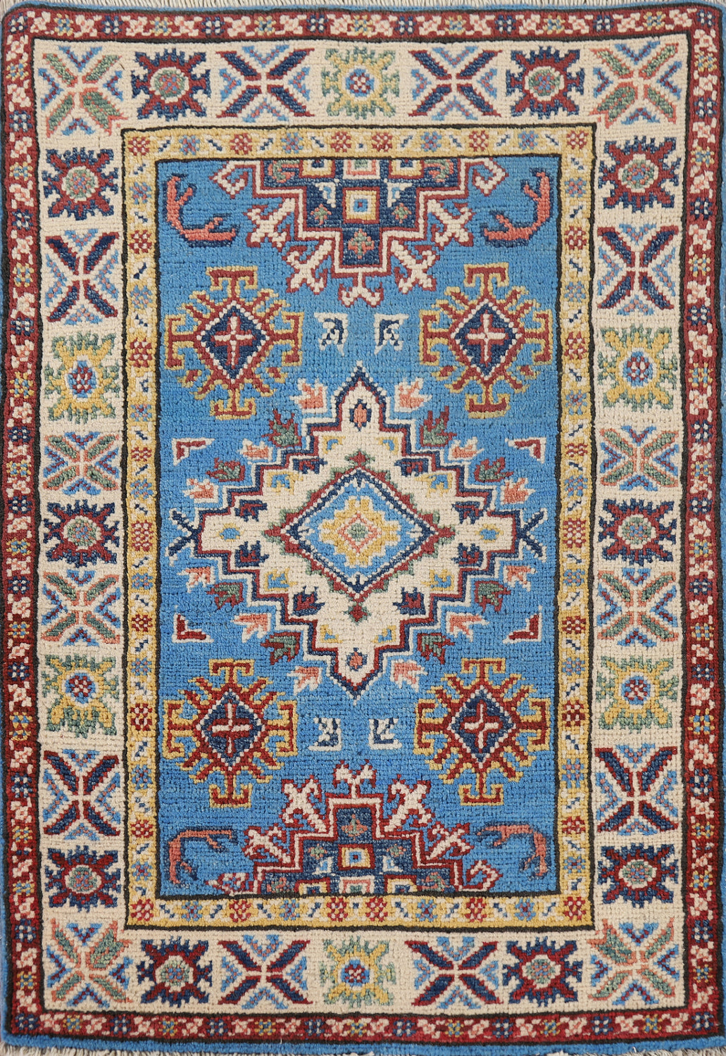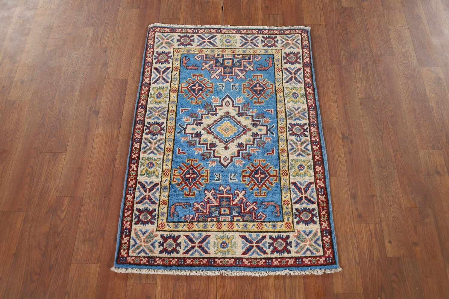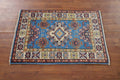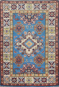 Blue Geometric Kazak Oriental Foyer Rug 2x3