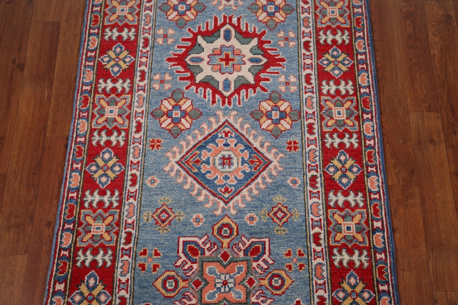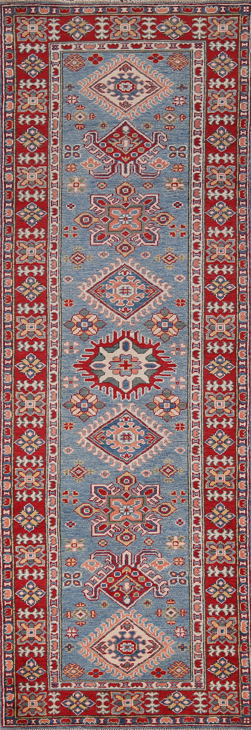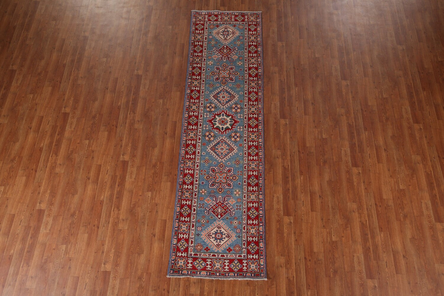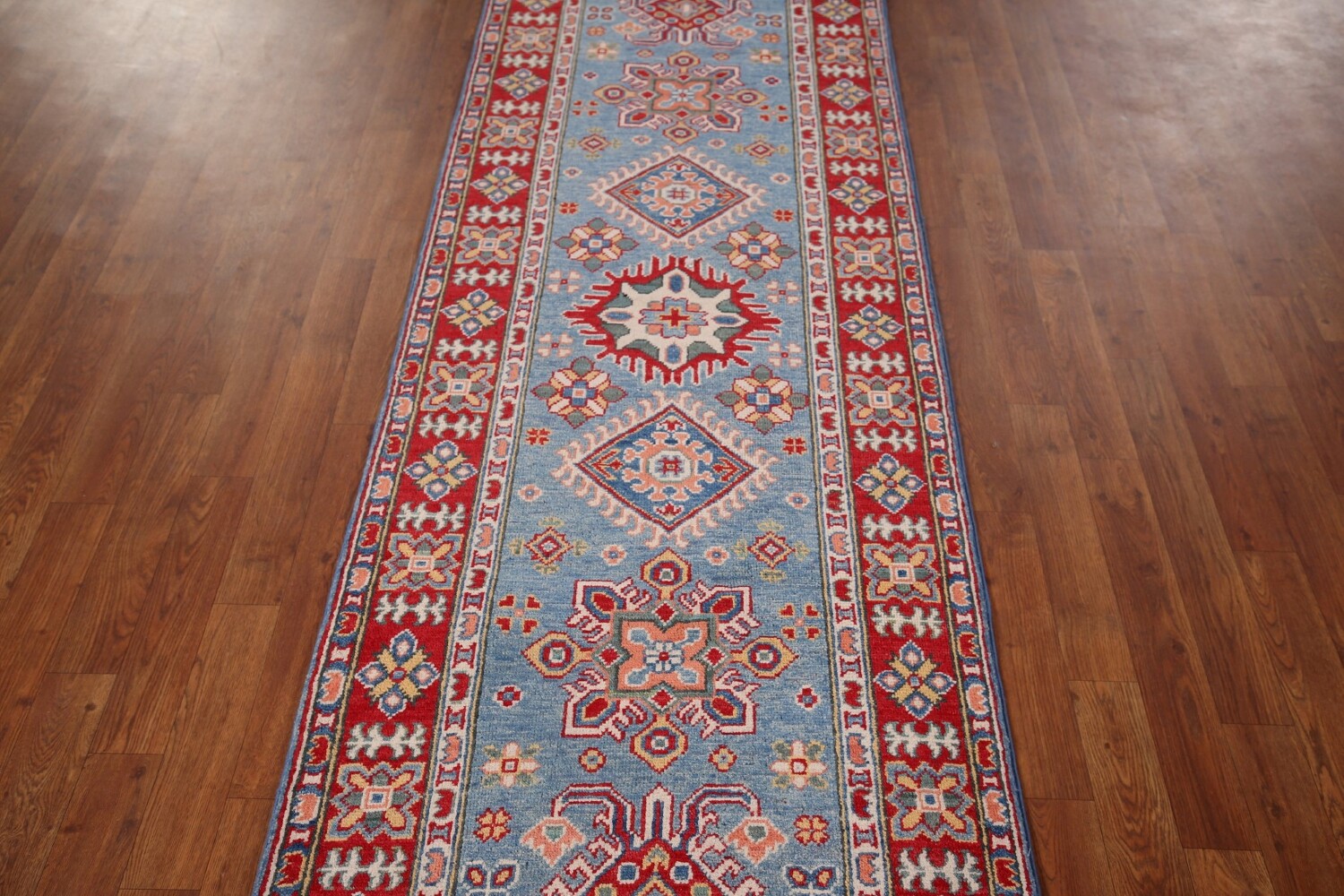 Blue Geometric Kazak Oriental Runner Rug 3x10