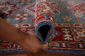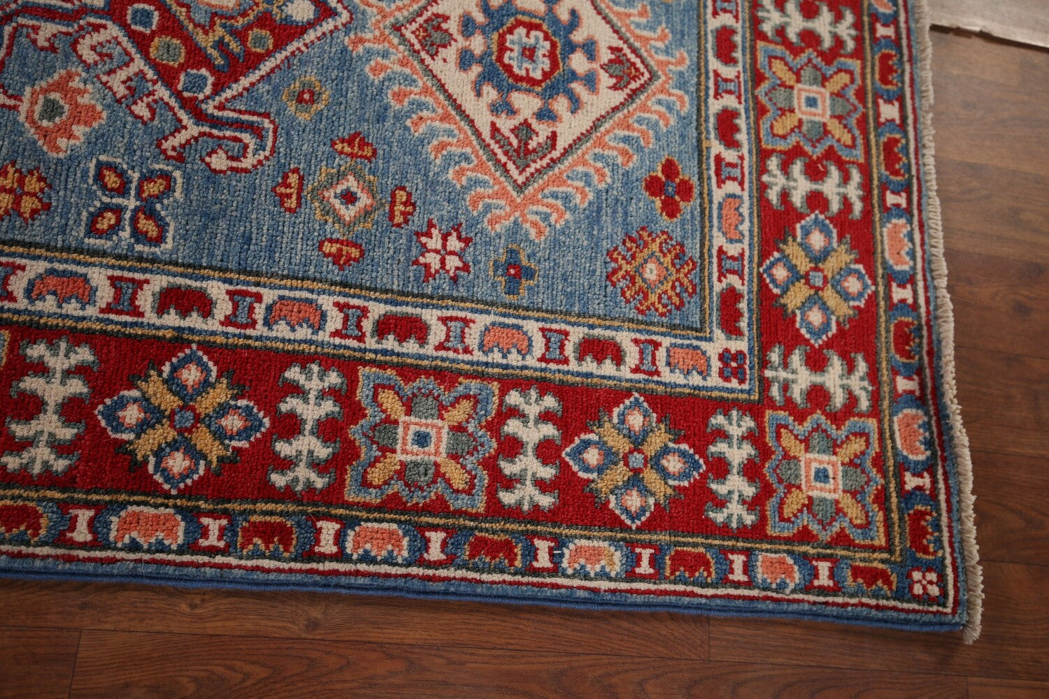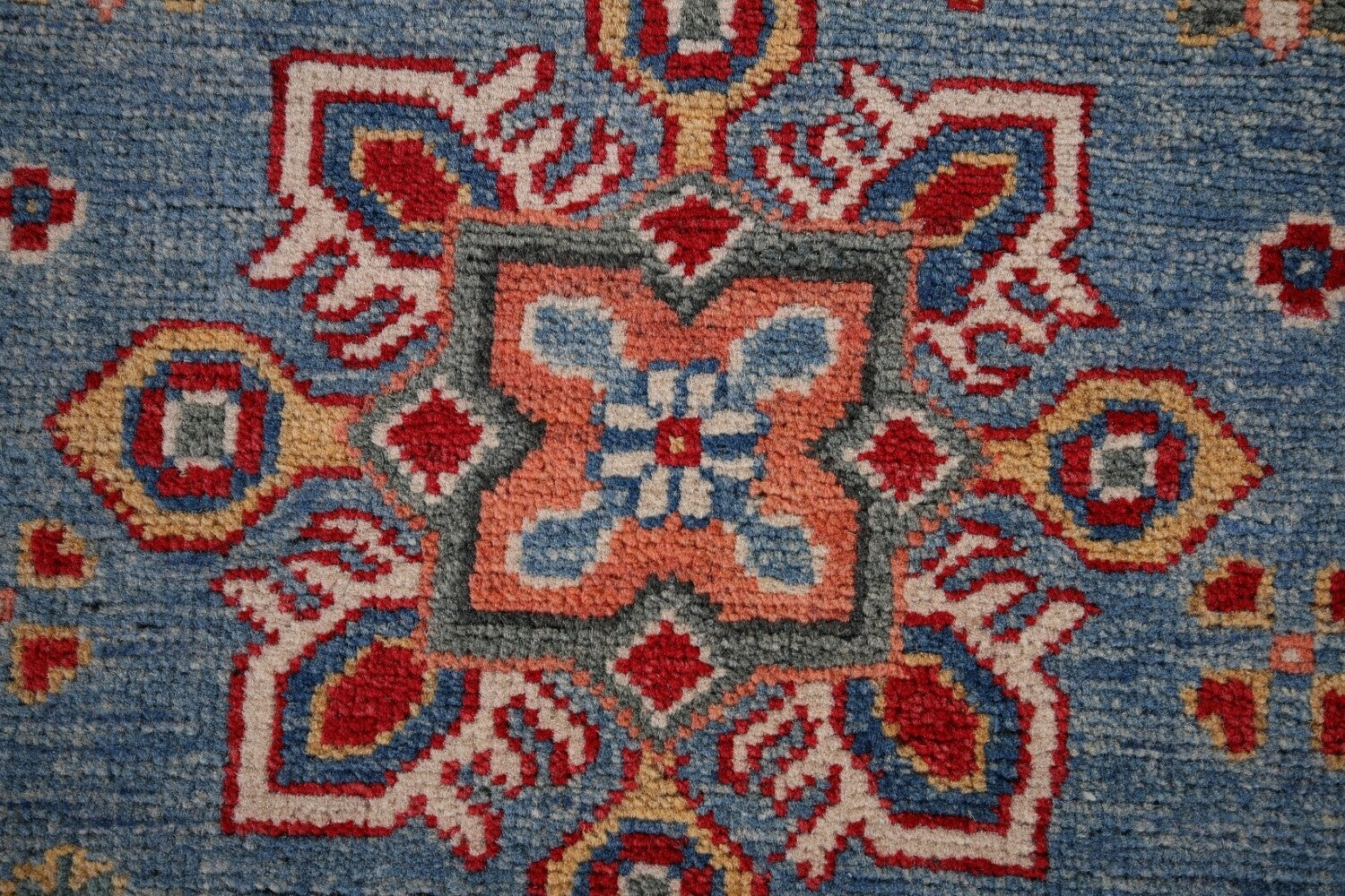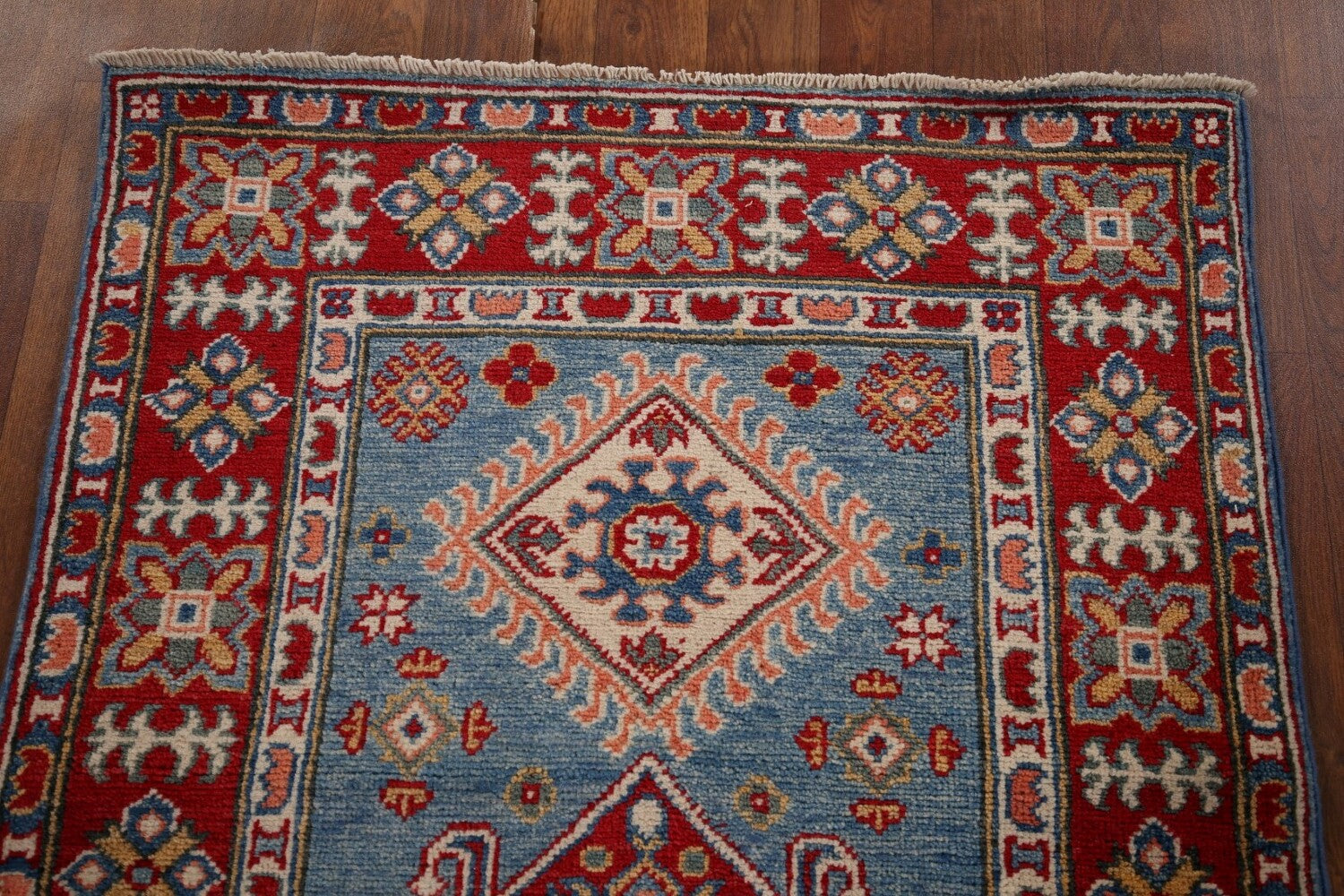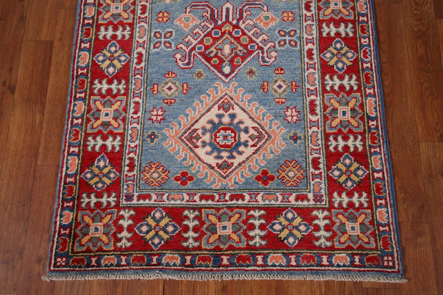 Blue Geometric Kazak Oriental Runner Rug 3x10