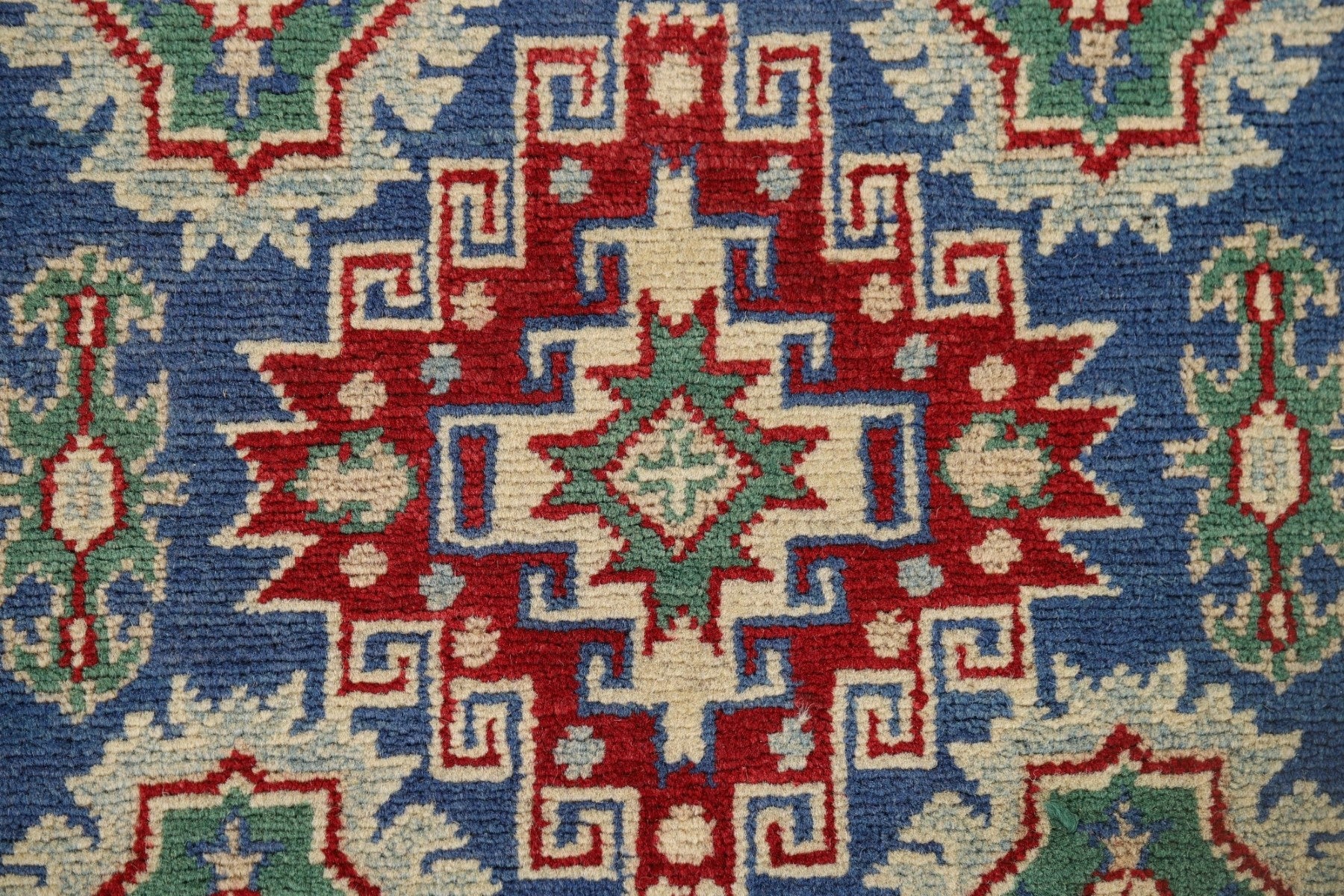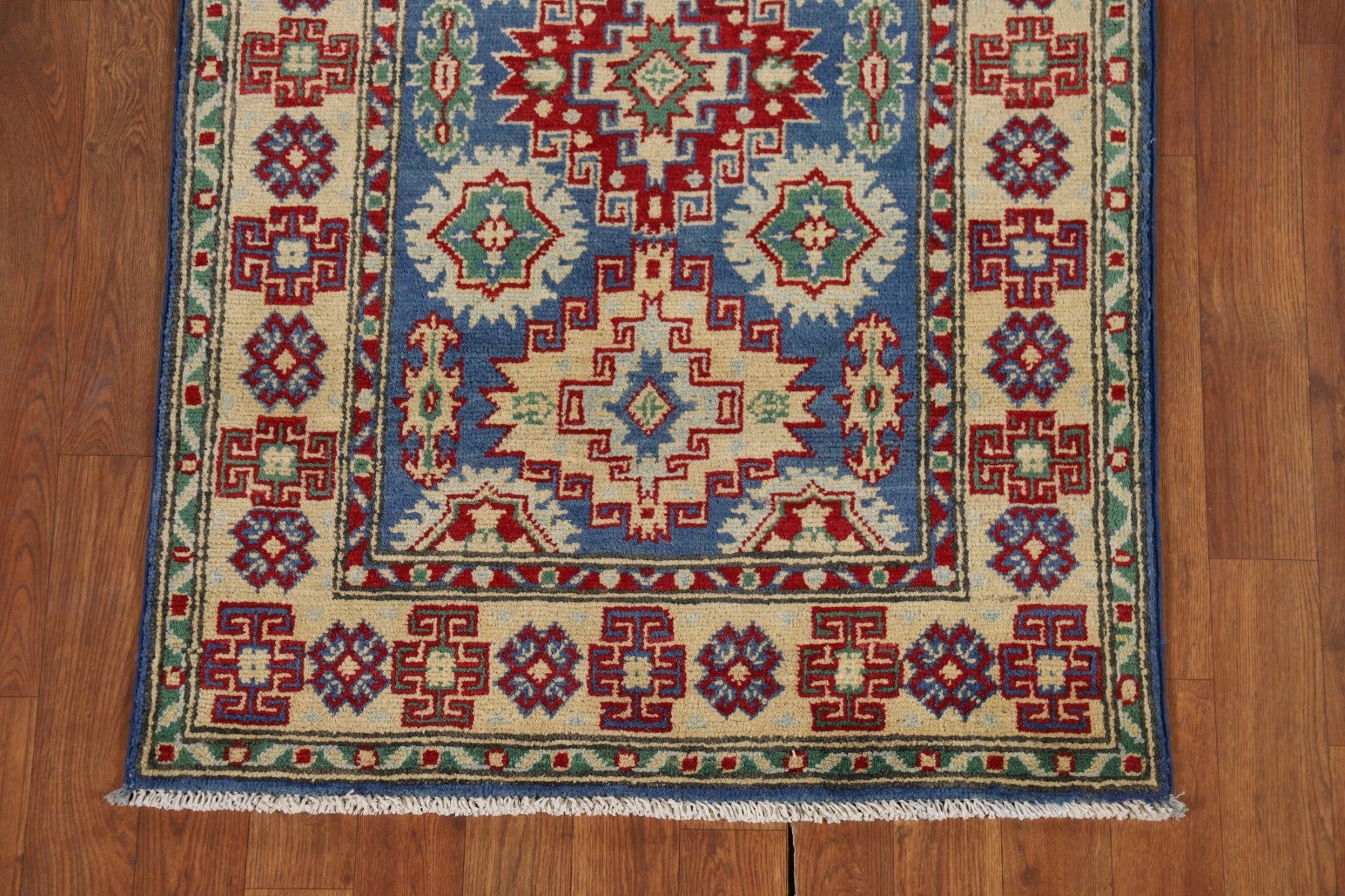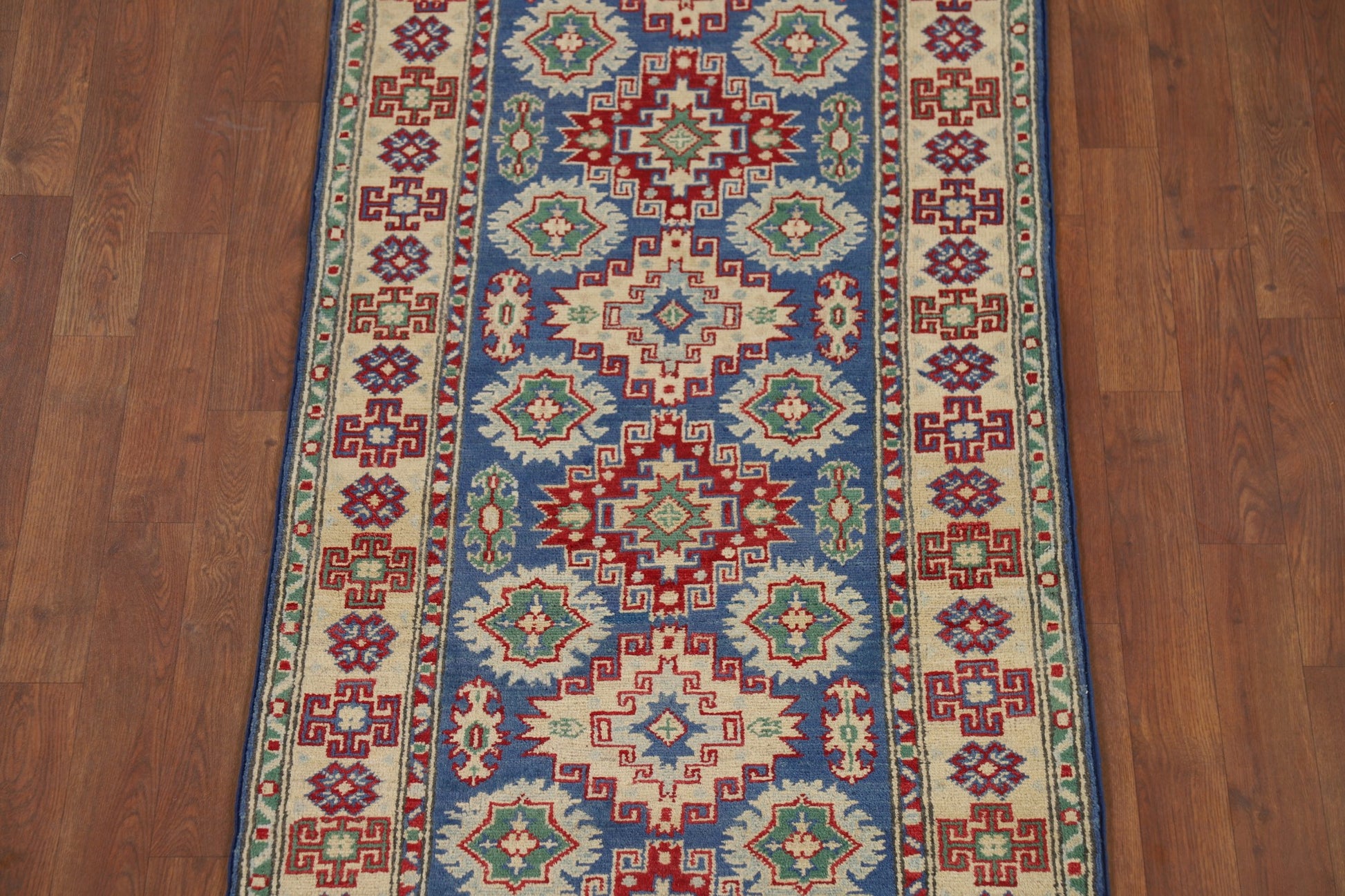 Blue Geometric Kazak Oriental Runner Rug 3x13