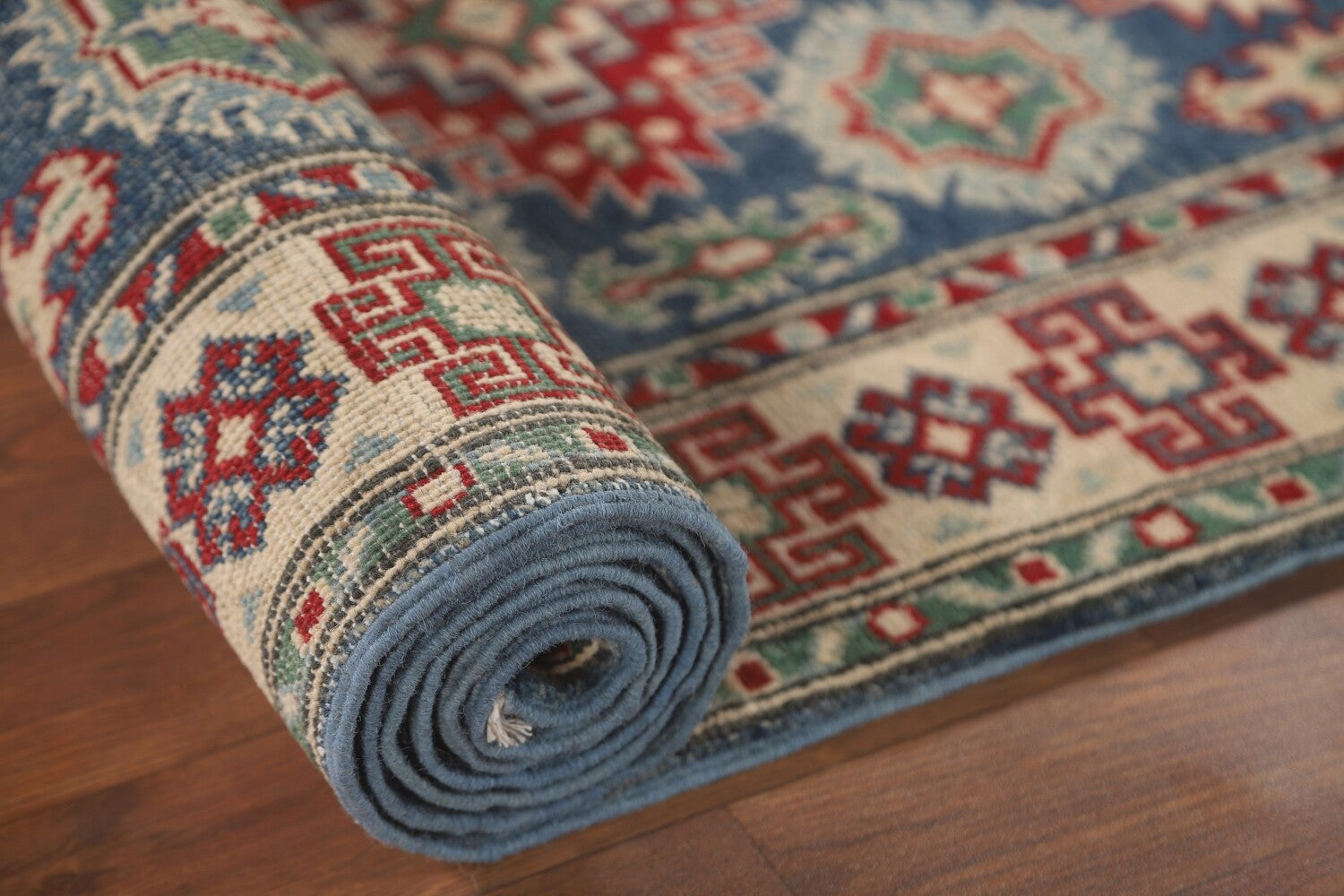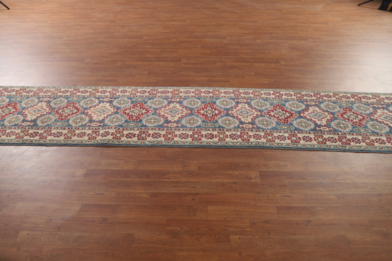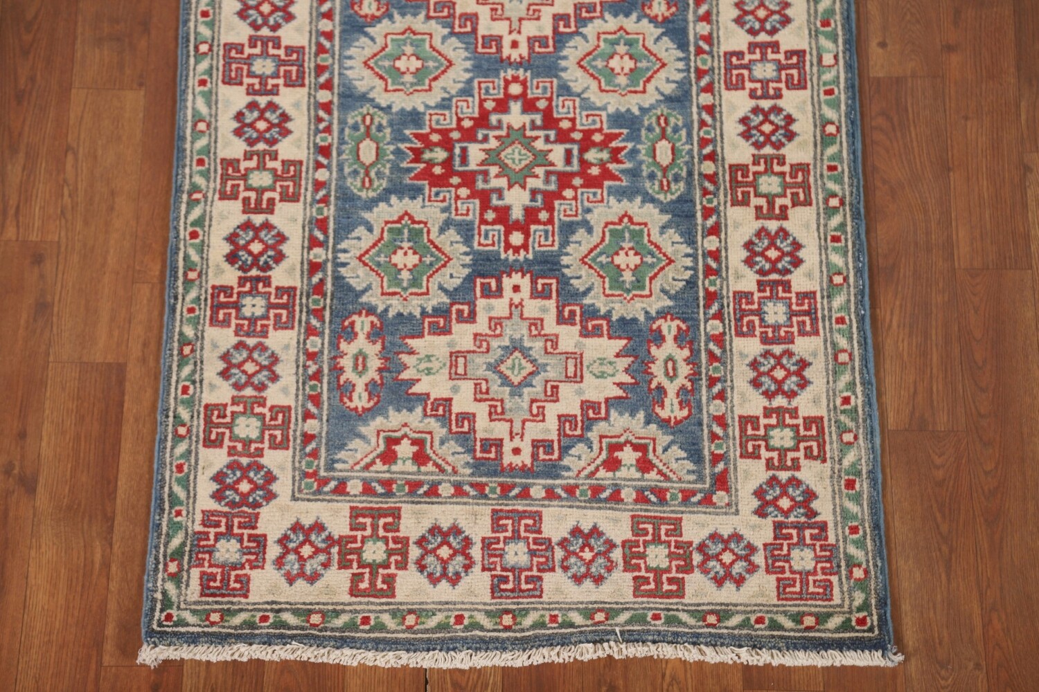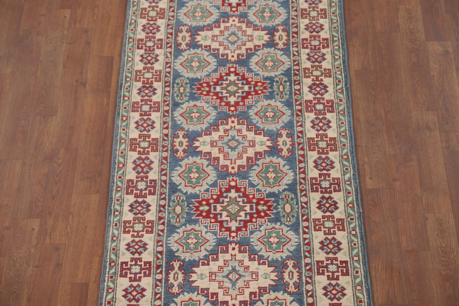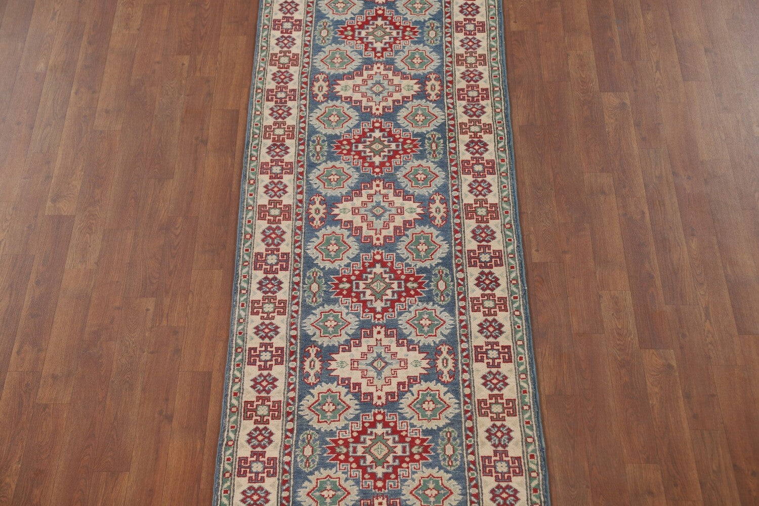Blue Geometric Kazak Oriental Runner Rug 3x13