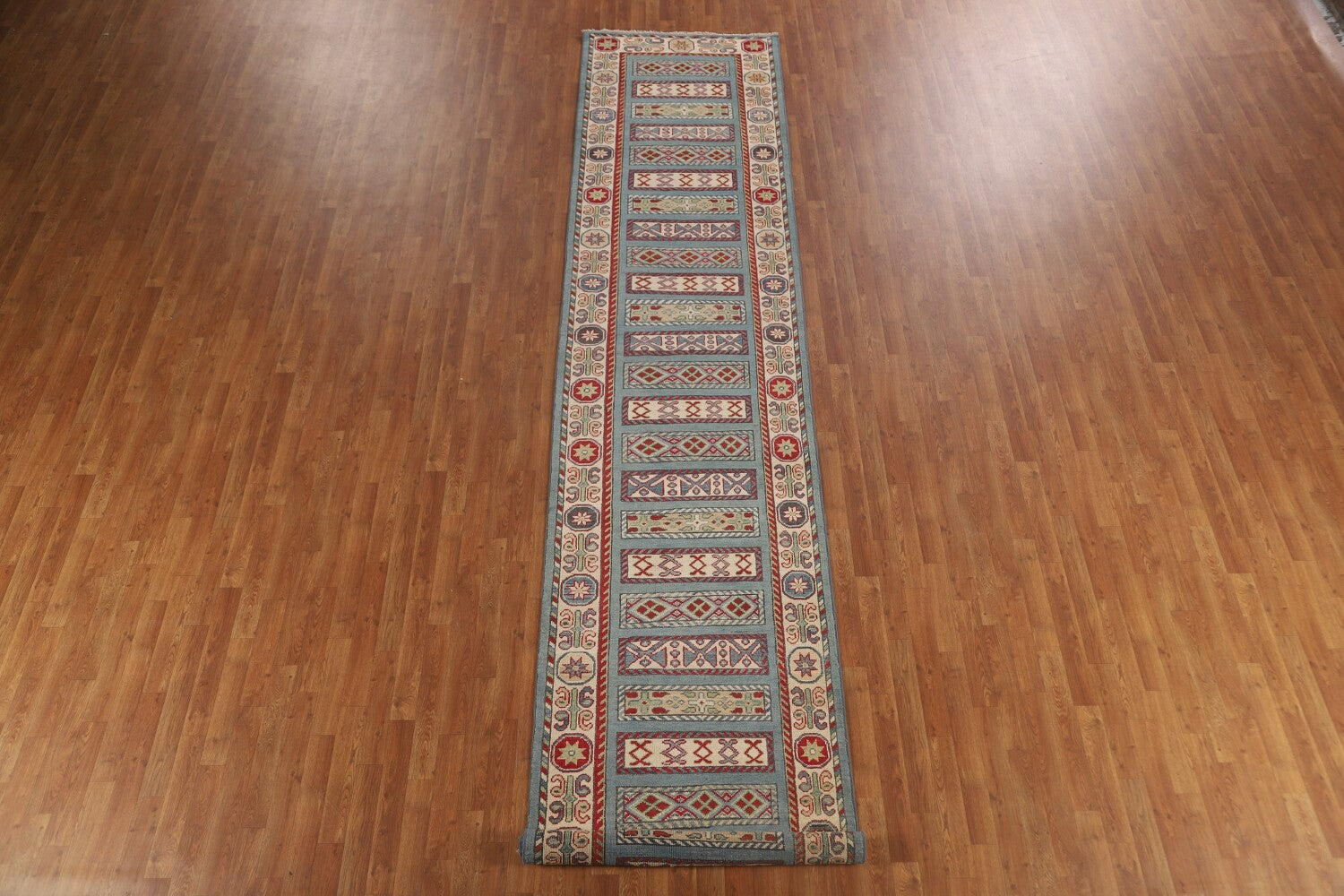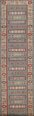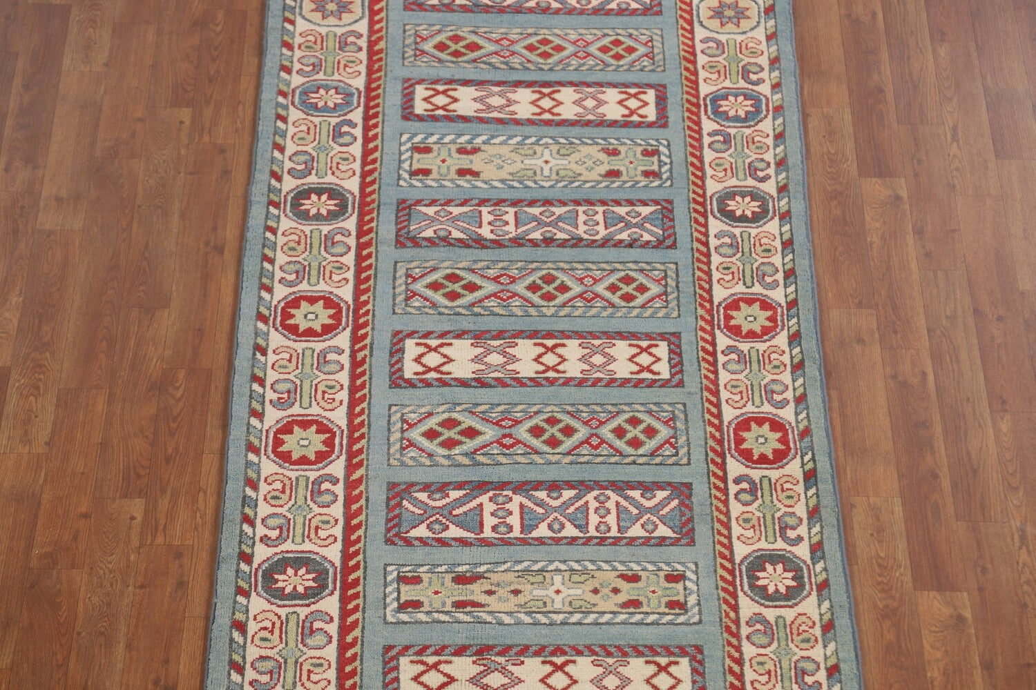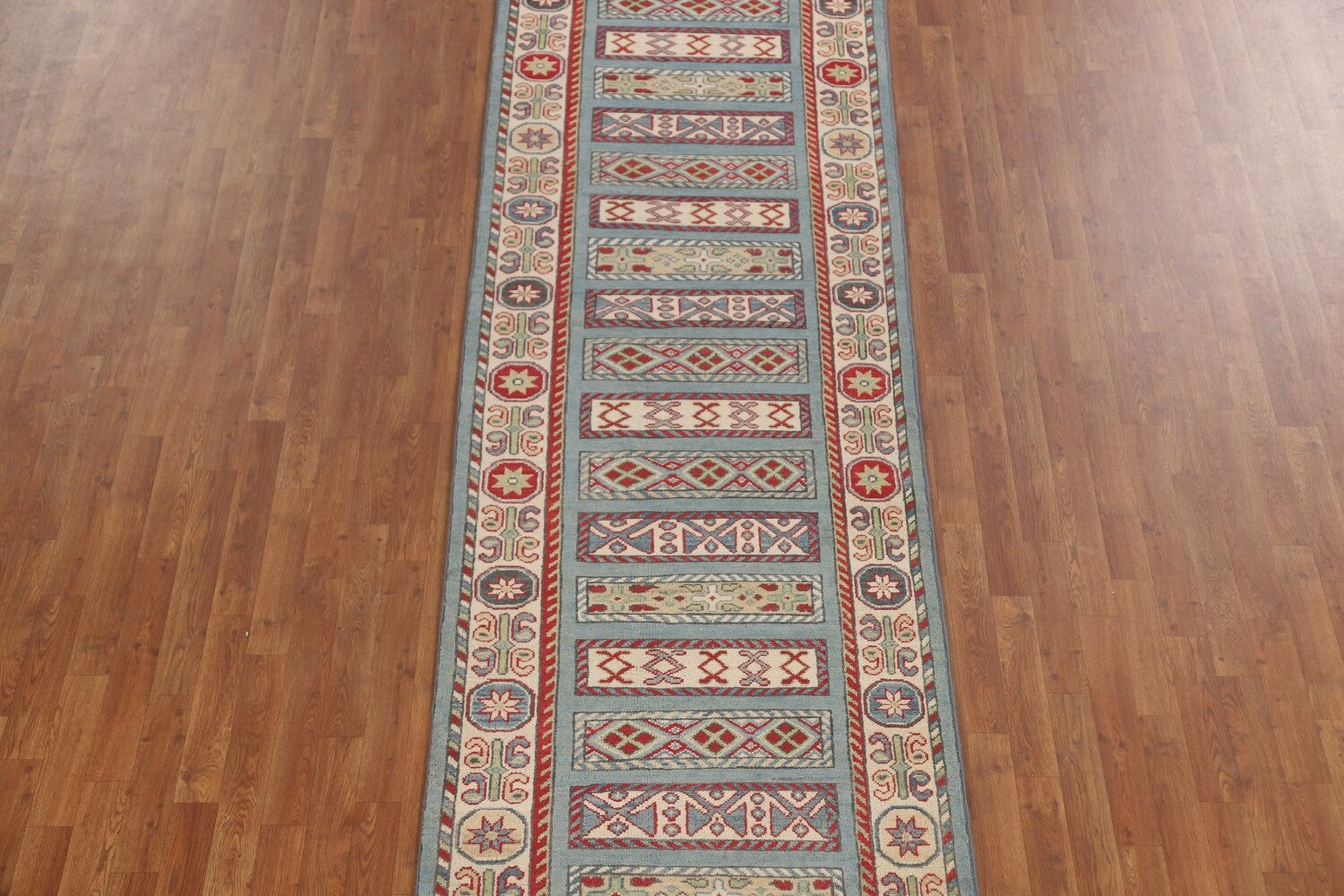 Blue Geometric Kazak Oriental Runner Rug 3x16