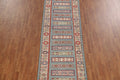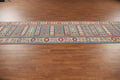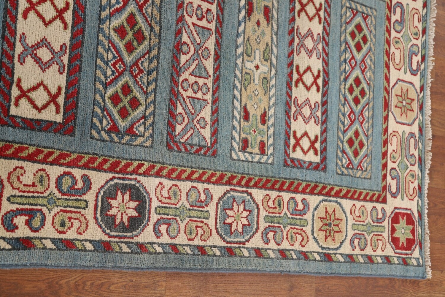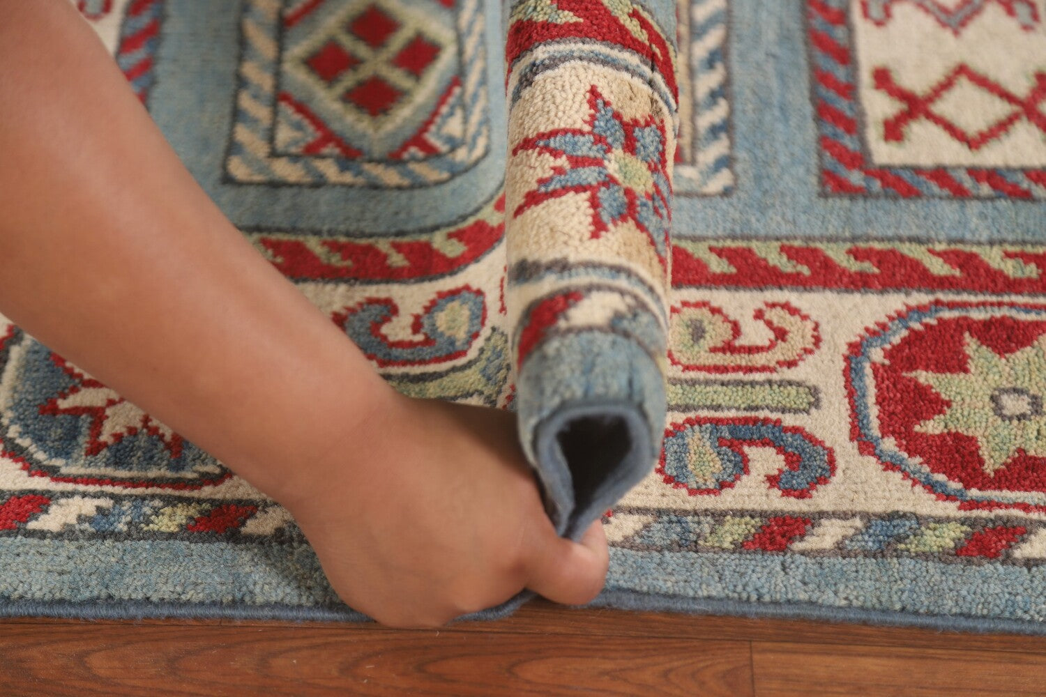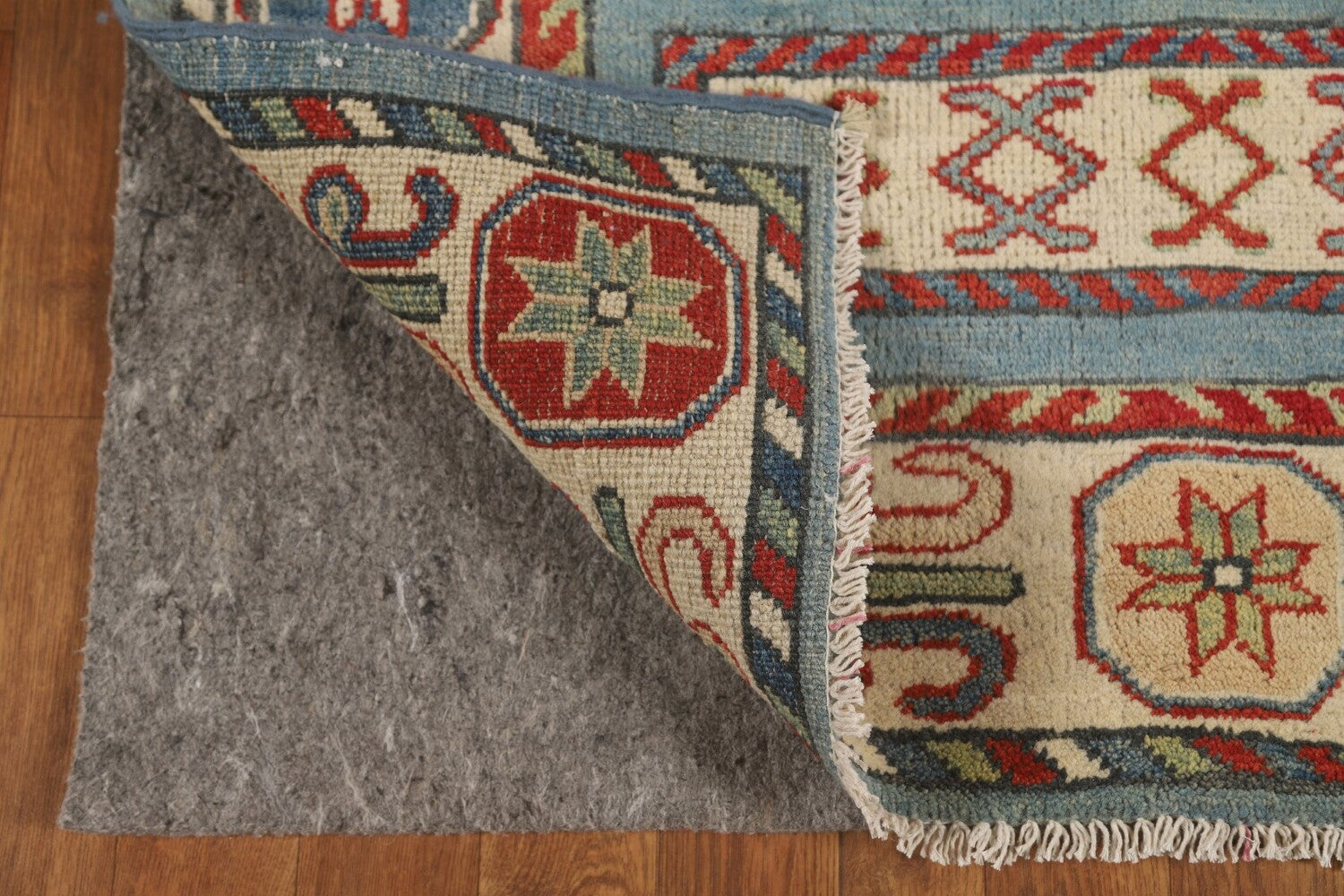 Blue Geometric Kazak Oriental Runner Rug 3x16