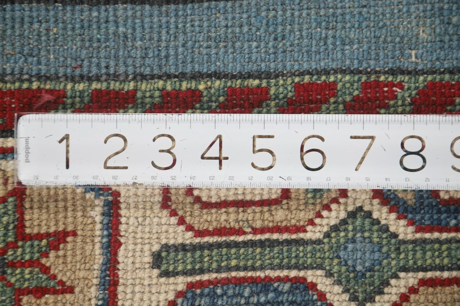 A Beautiful Genuine Pakistan Kazak rug is Hand Knotted by skillful weavers in Pakistan with 100% Wool Material. This rug is in New, First Quality condition. dimensions are 16' 4'' X 3' 4'' in foot and 498 X 102 in centimeter. the primary color is Navy Blue & Blues.
