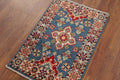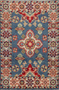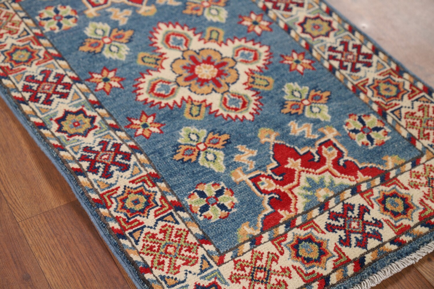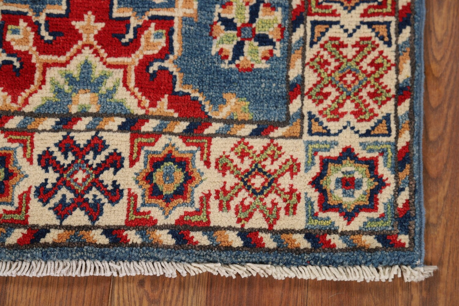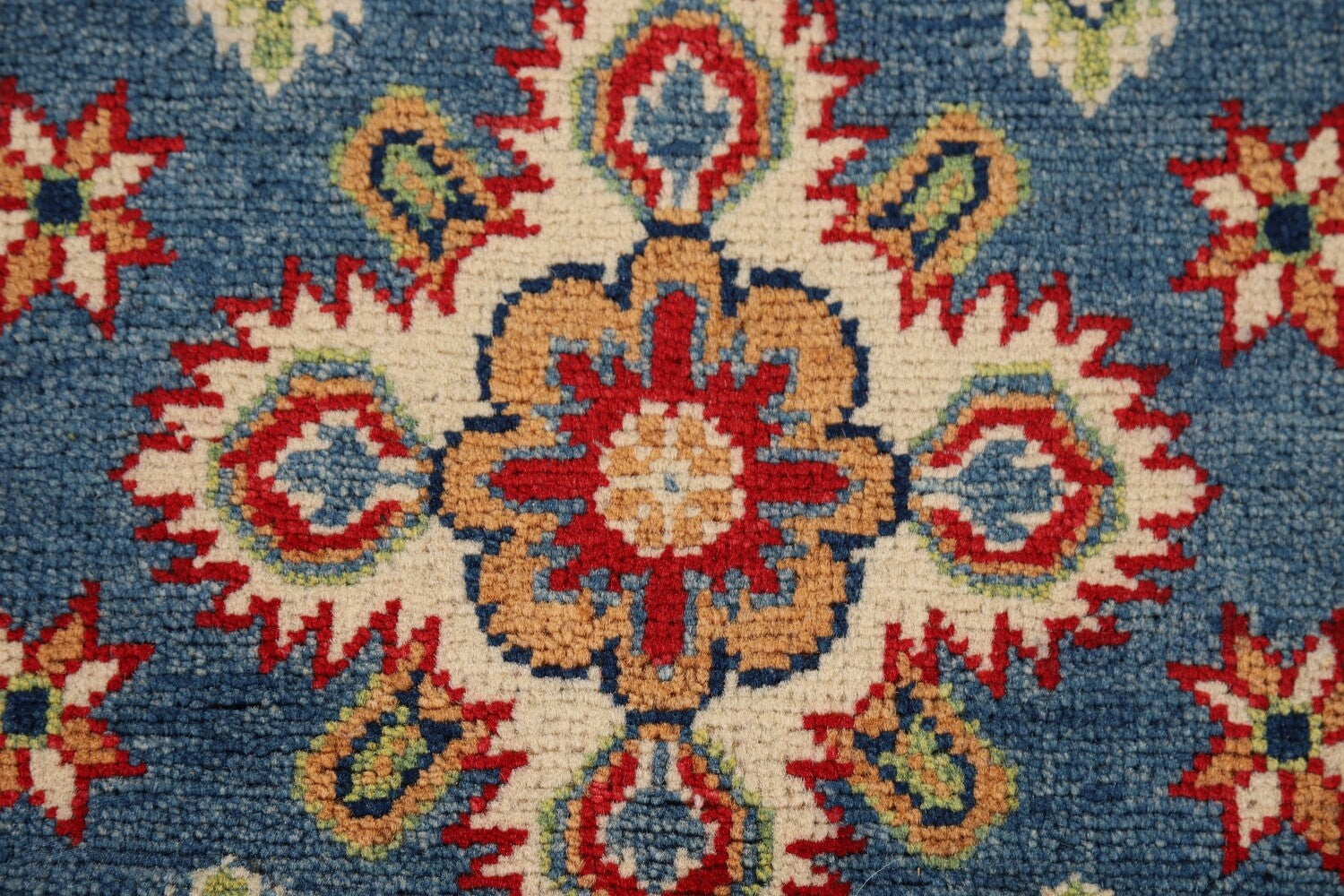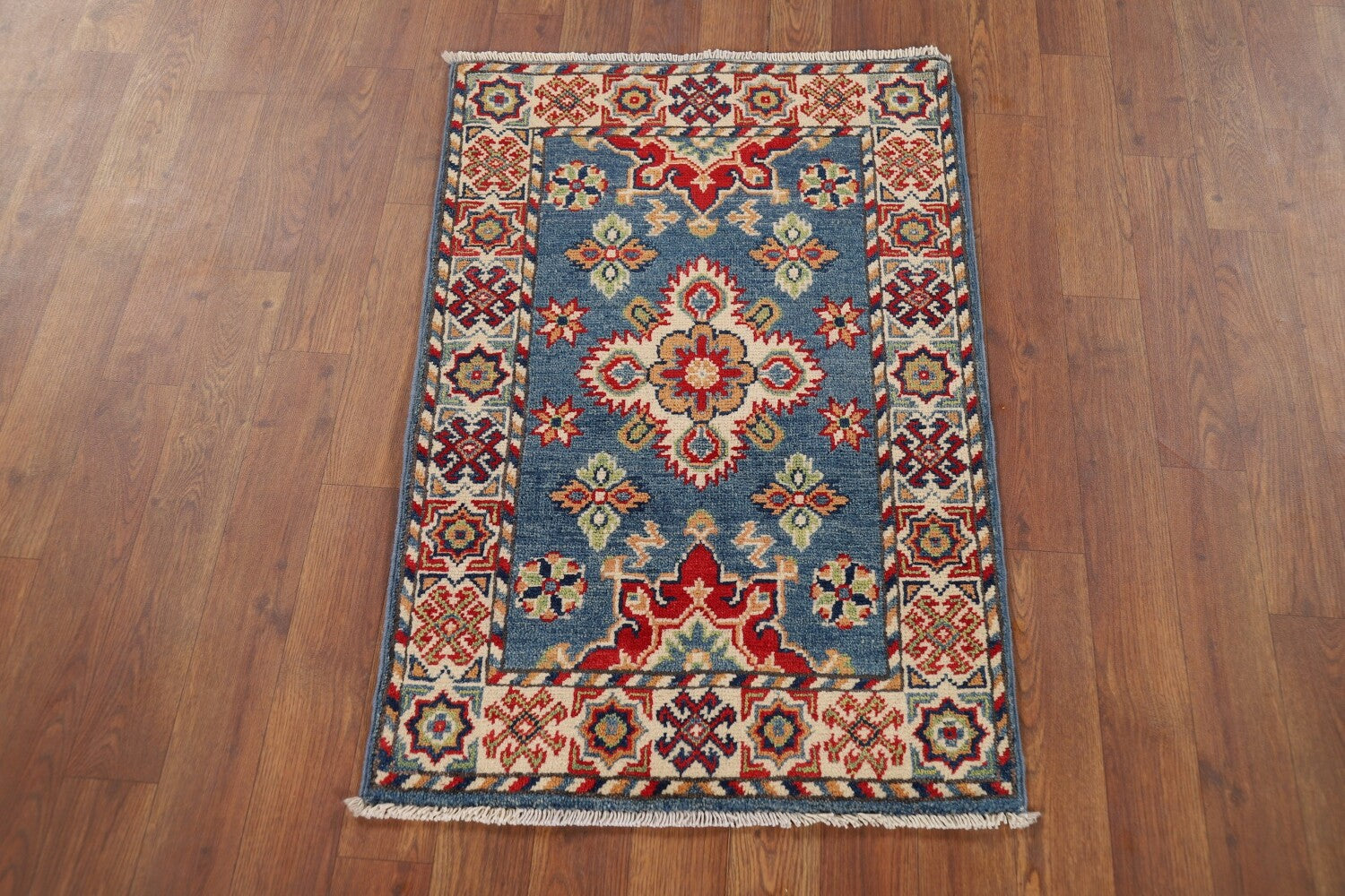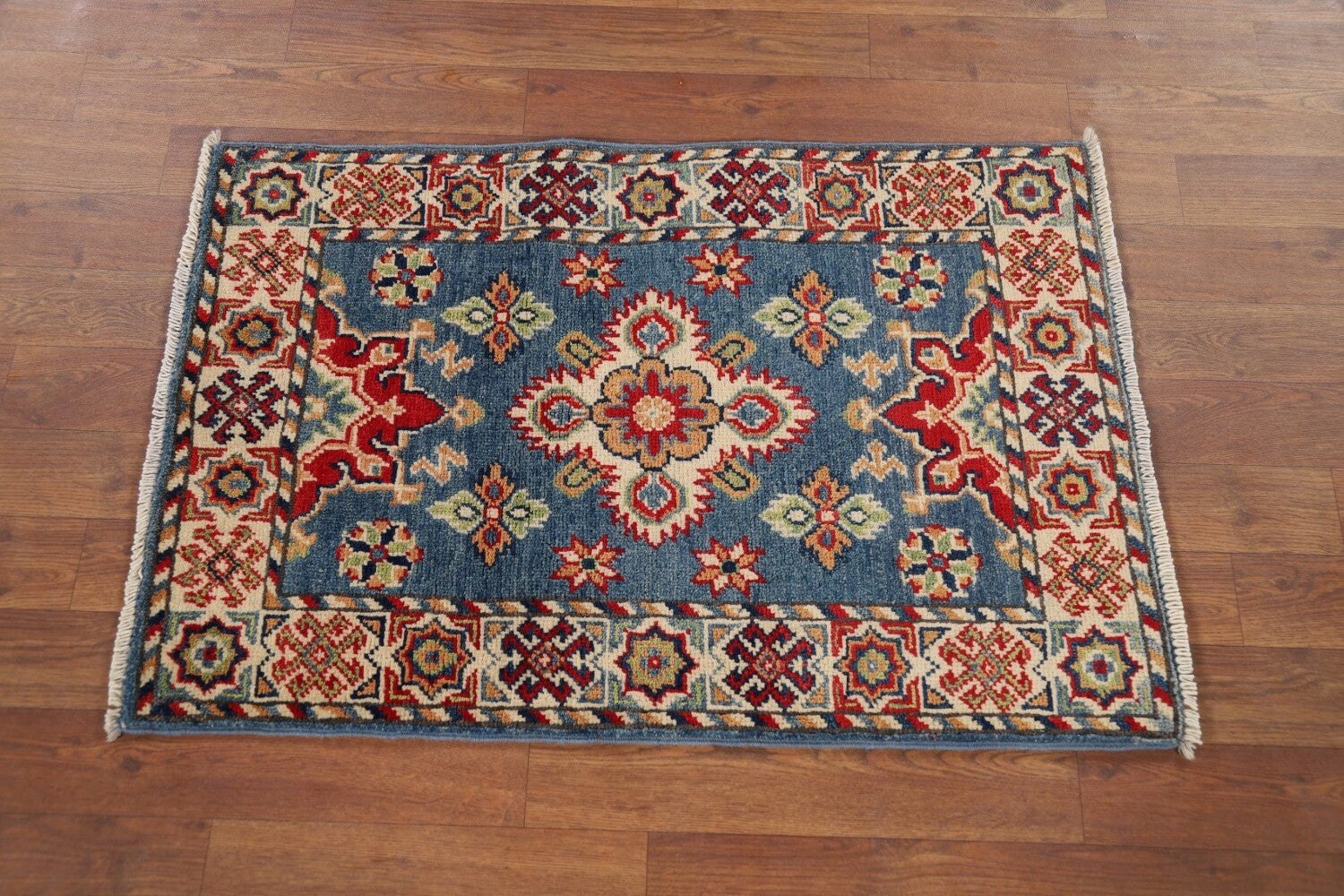 Blue Geometric Kazak Oriental Wool Rug 2x3