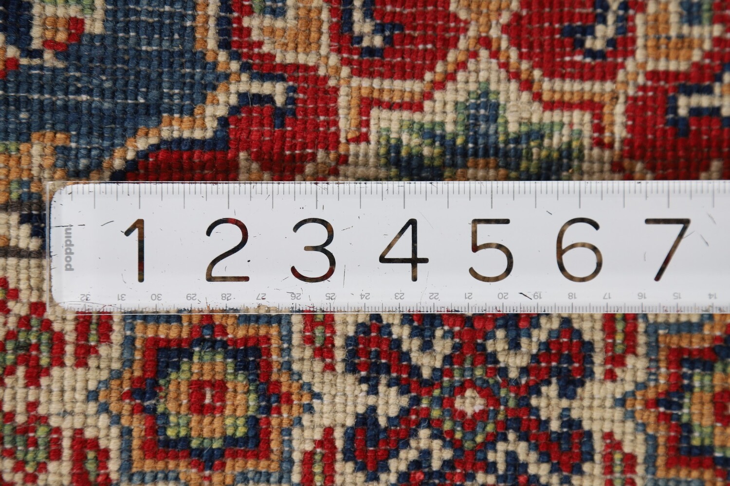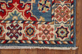 A Beautiful Genuine Pakistan Kazak rug is Hand Knotted by skillful weavers in Pakistan with 100% Wool Material. This rug is in New, First Quality condition. dimensions are 2' 11'' X 1' 11'' in foot and 89 X 58 in centimeter. the primary color is Navy Blue & Blues.