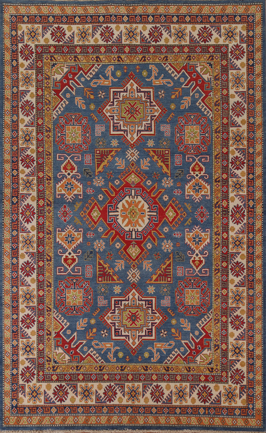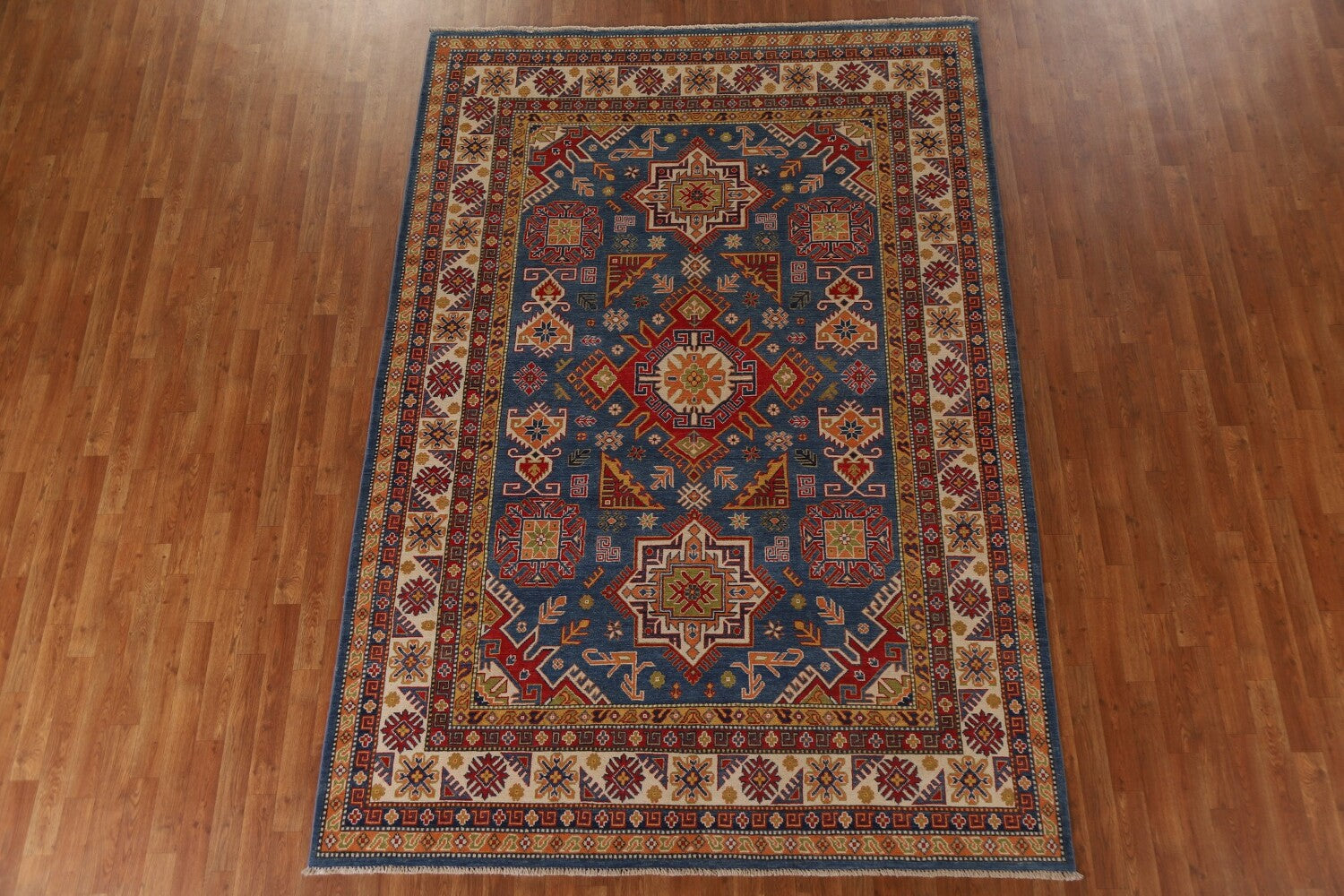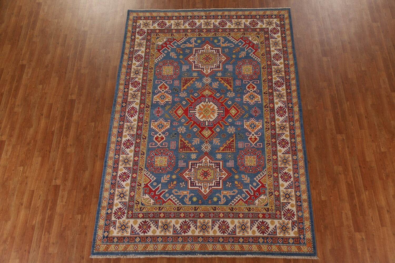 Blue Geometric Kazak Pakistan Area Rug 7x10