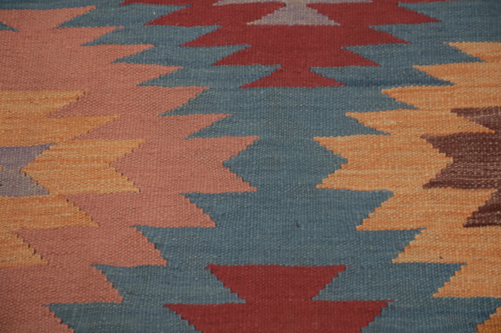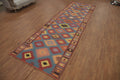 Blue Geometric Kilim Oriental Runner Rug 5x16