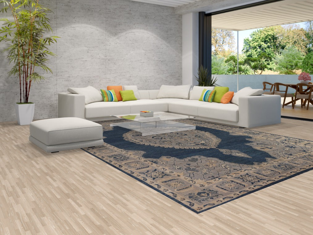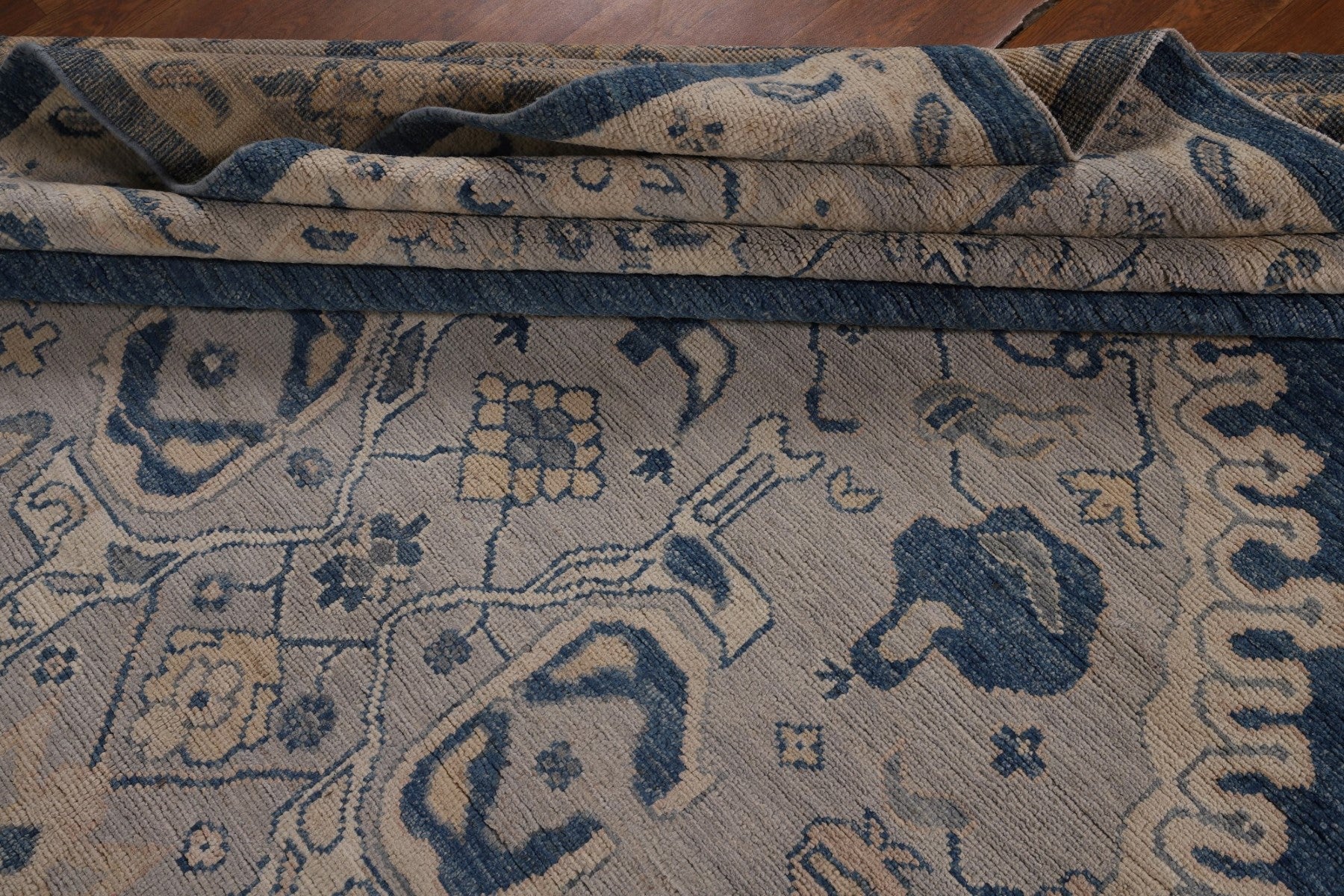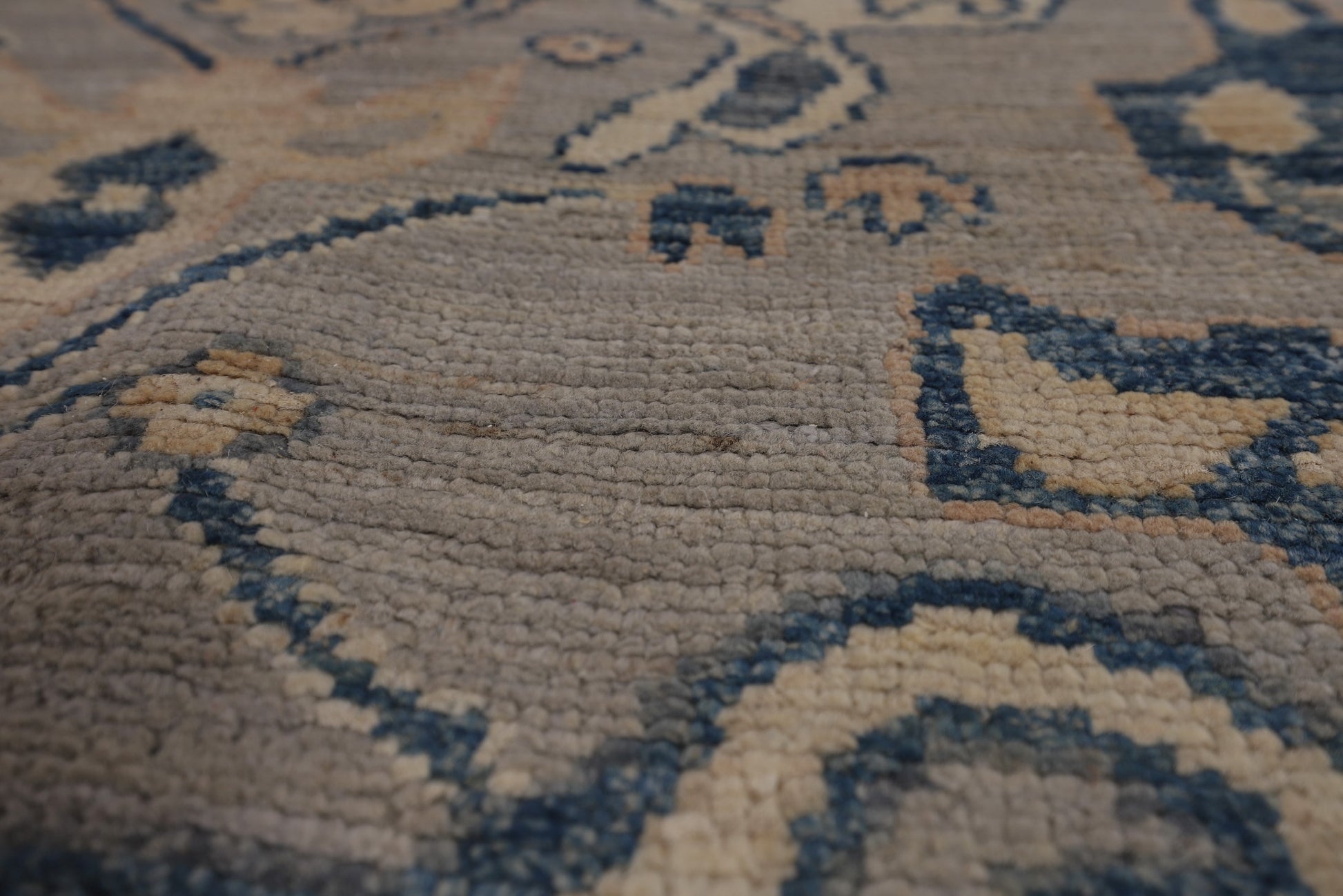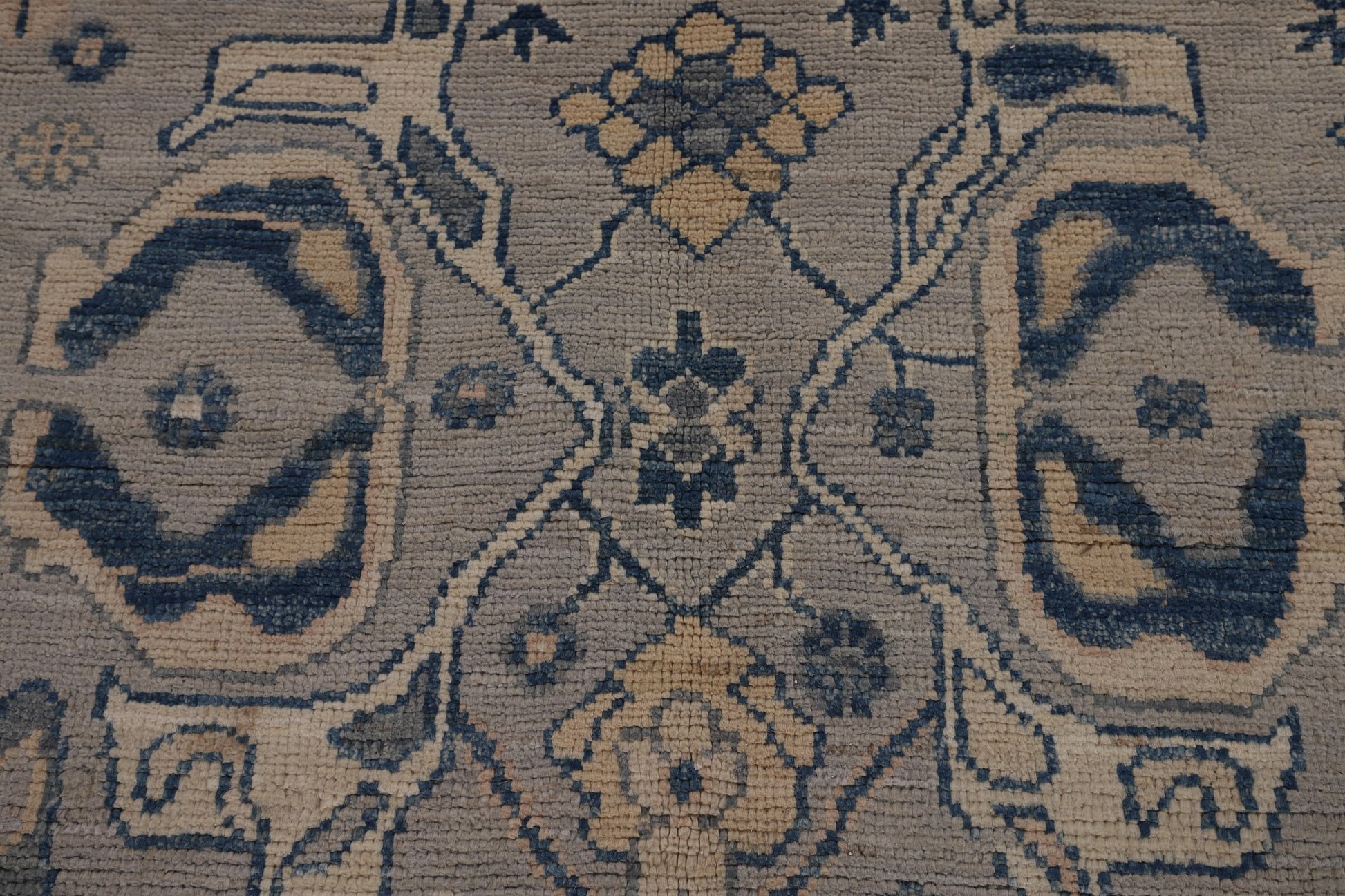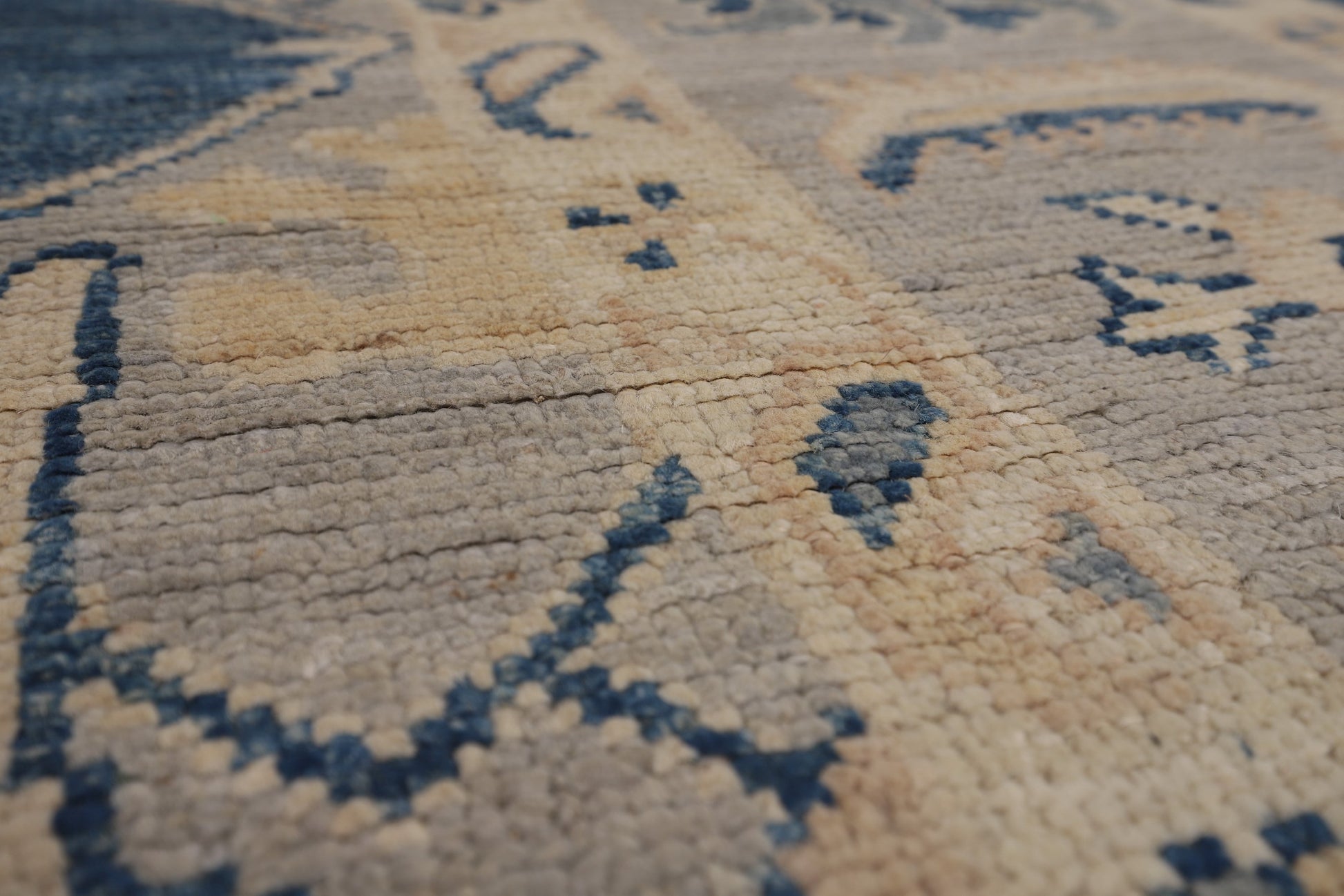 Blue Geometric Oushak Vegetable Dye Large Rug 10x14