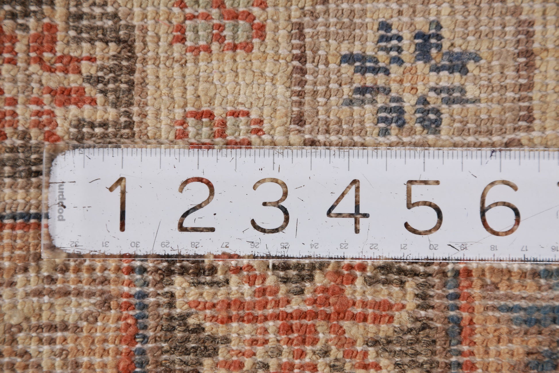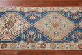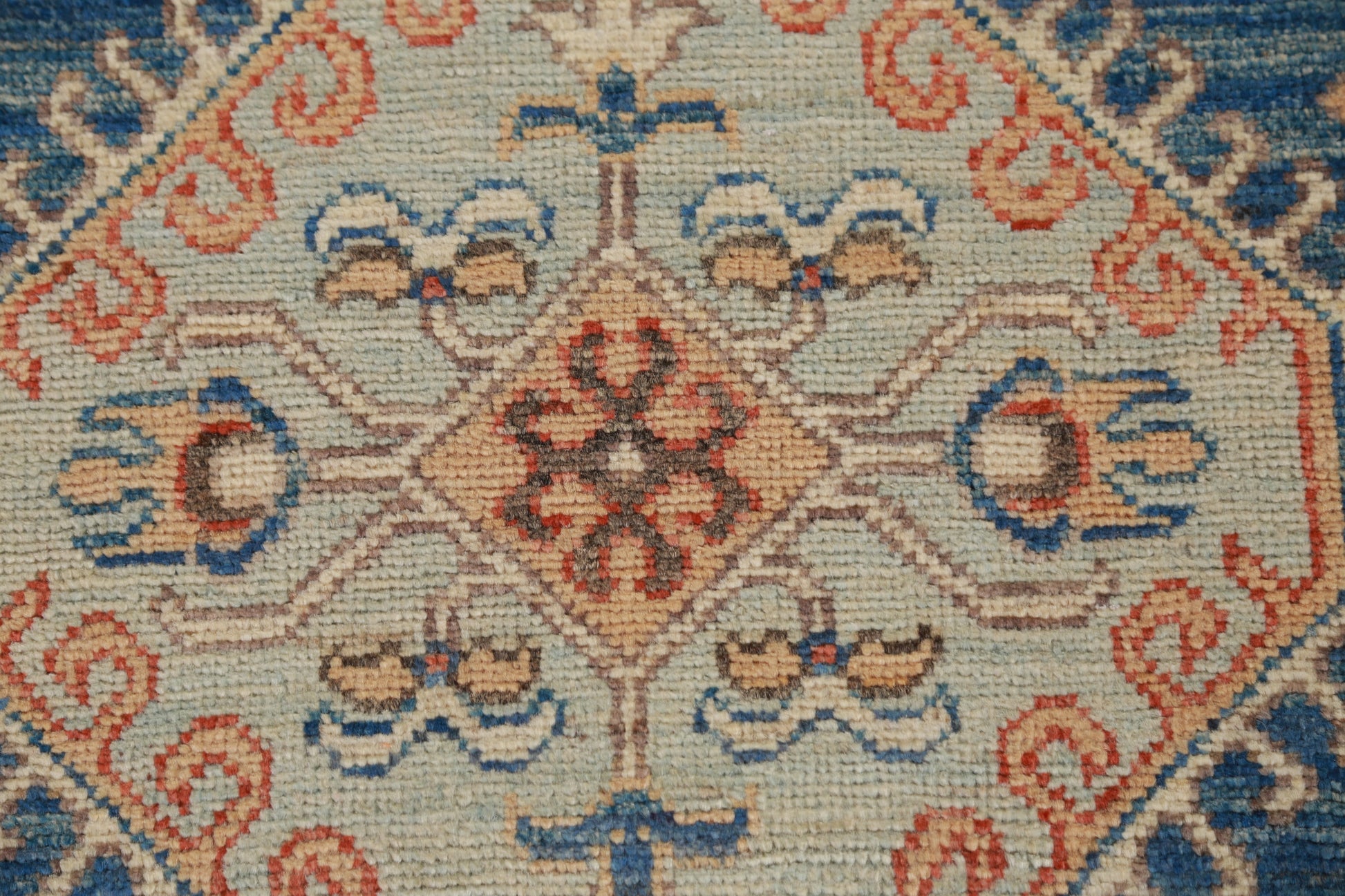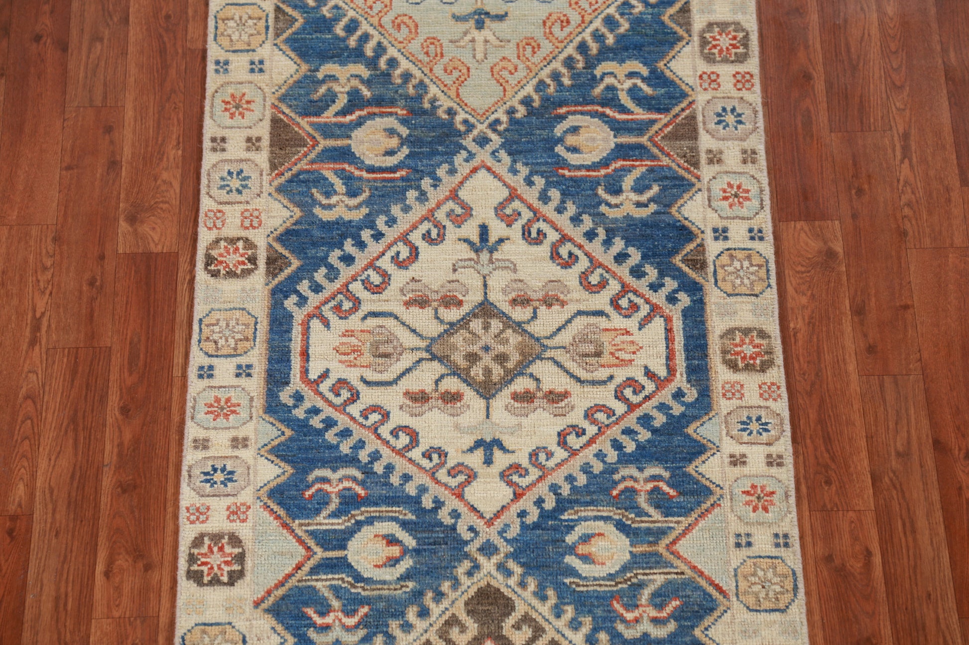 Blue Geometric Oushak Vegetable Dye Runner Rug 3x10