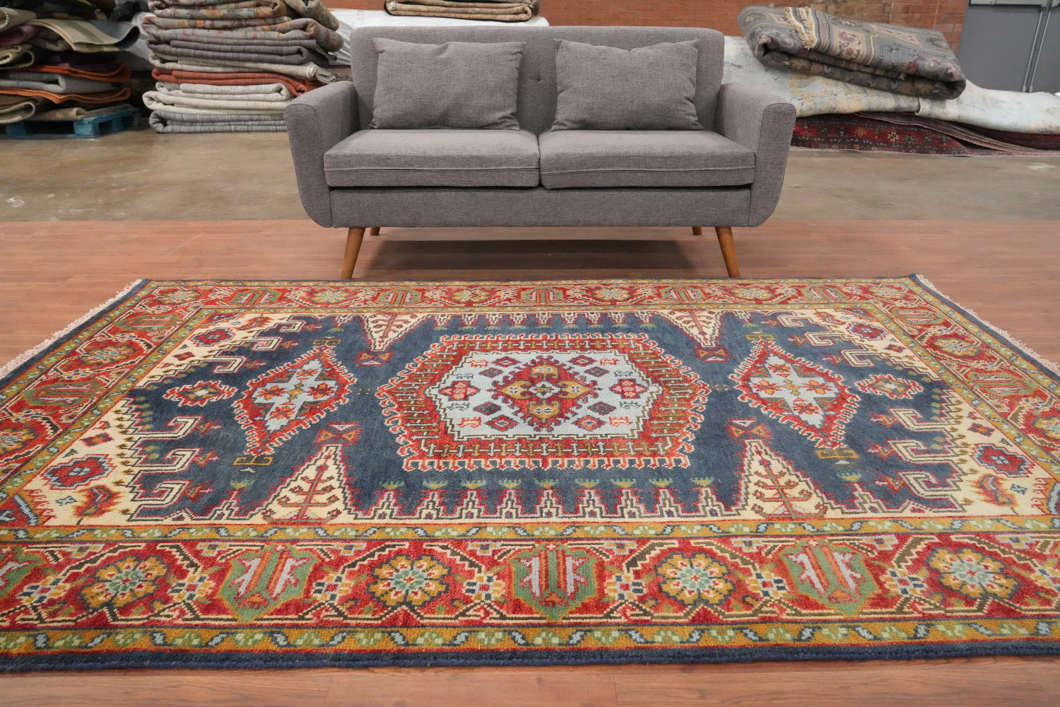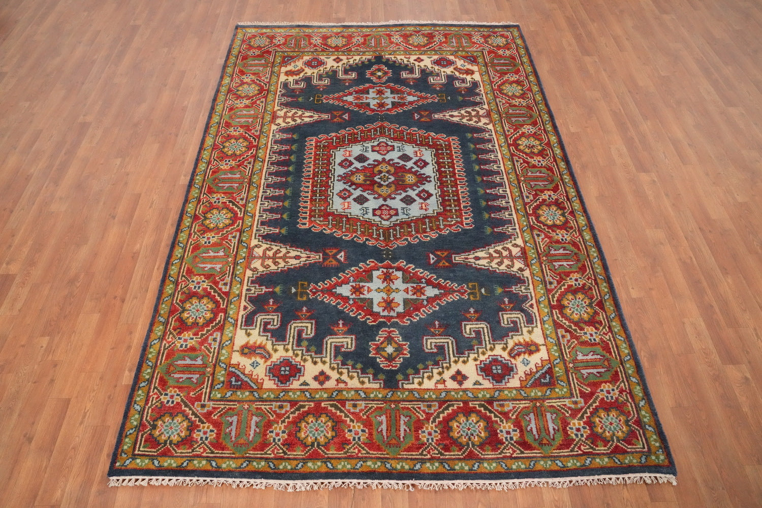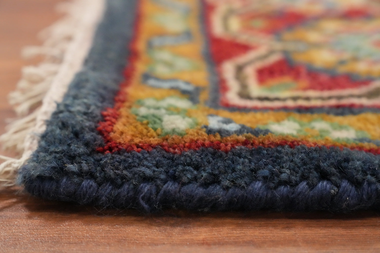 A Beautiful Genuine India Viss rug is Hand Knotted by skillful weavers in India with 100% Wool Material. This rug is in New, First Quality condition. dimensions are 8' 11'' X 5' 11'' in foot and 272 X 180 in centimeter. the primary color is Navy Blue & Blues.