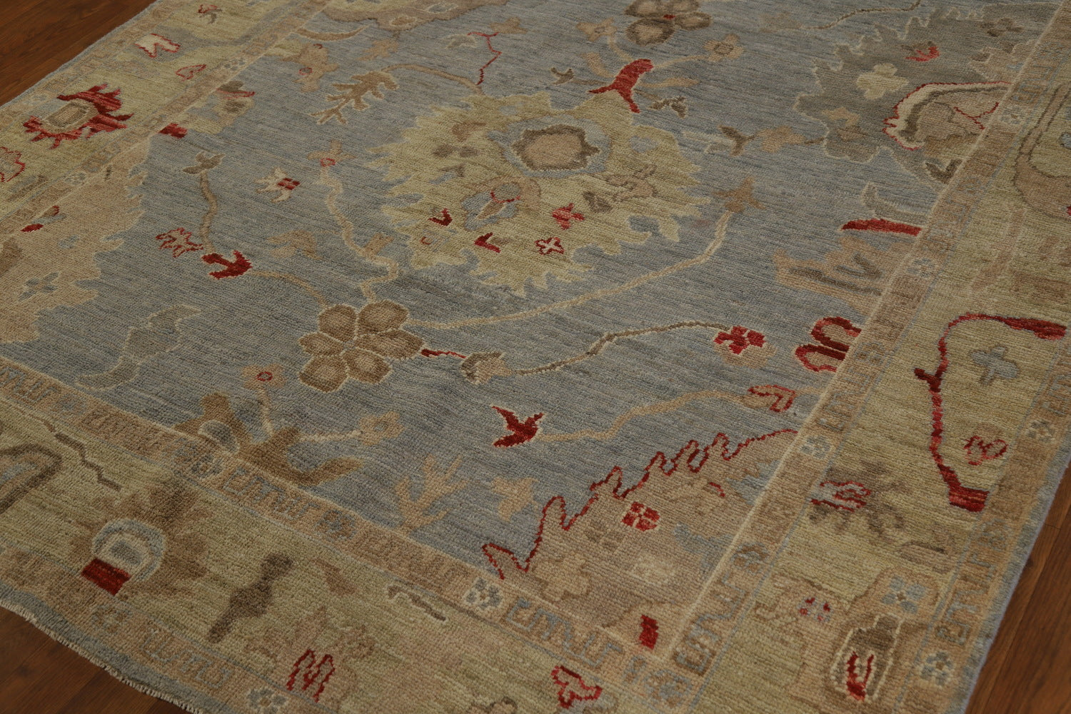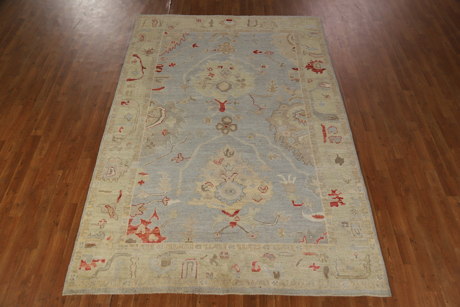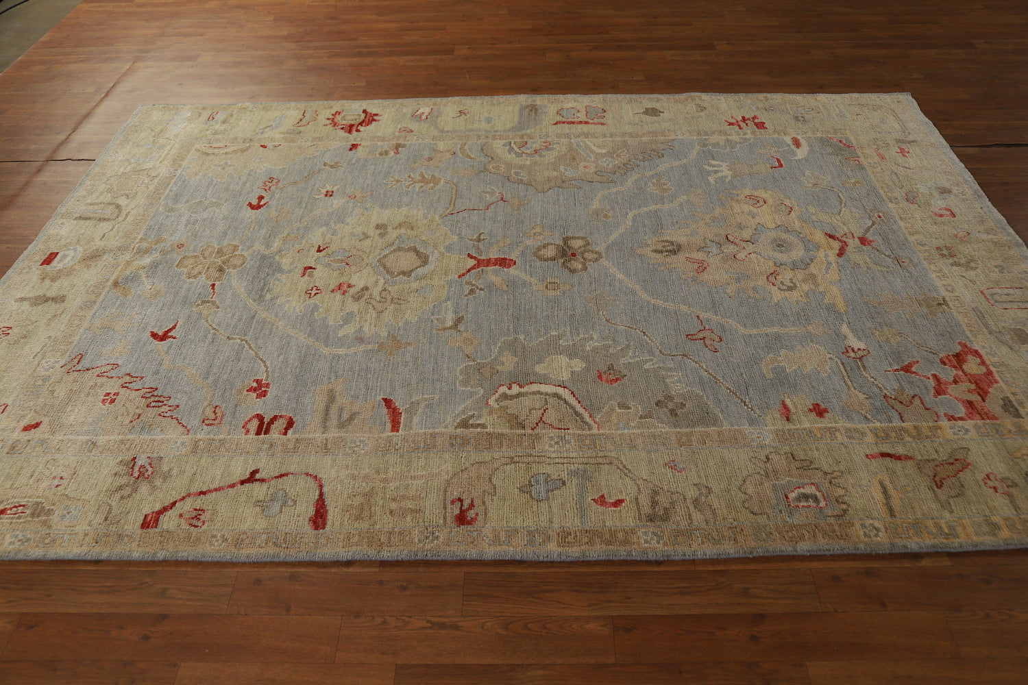 Blue Gray Handmade Oushak Vegetable Dye Area Rug 6x9