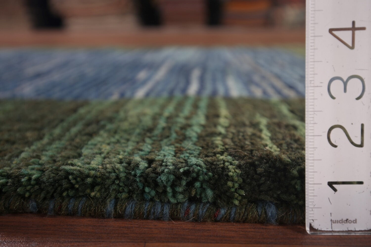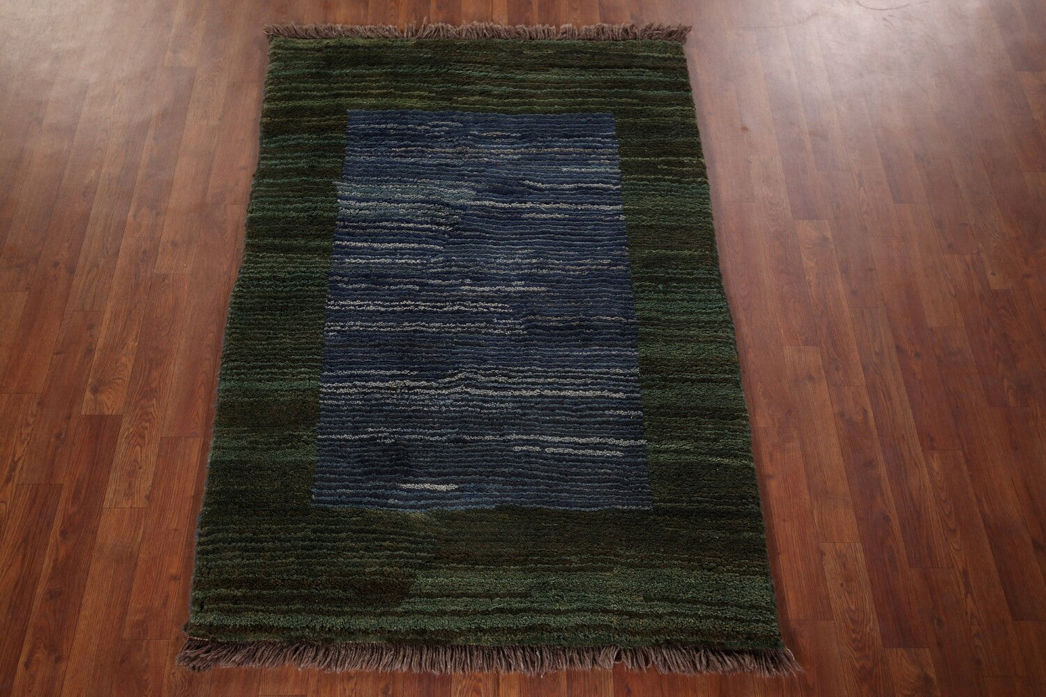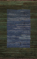 Blue & Green Striped Gabbeh Persian Rug 4x5